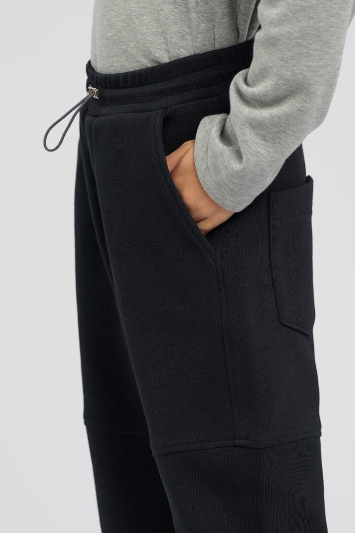 Black fouter pants for a boy are an ideal choice for an active child. The classic black colour makes the trousers versatile and easy to match with other clothes in the wardrobe. The comfortable elasticated waistband and belt ensures a secure fit and easy to put on. The pants is made of soft and warm fouter, which perfectly retains warmth and provides comfort in cold weather.