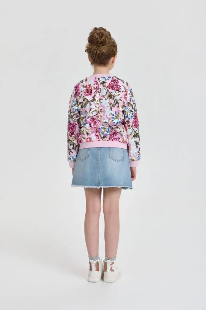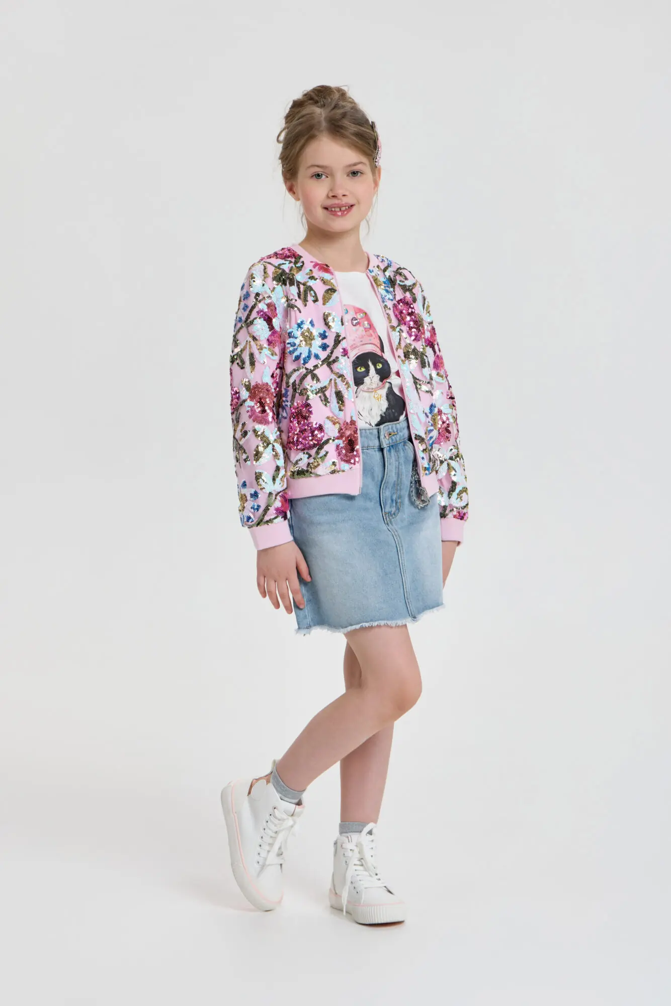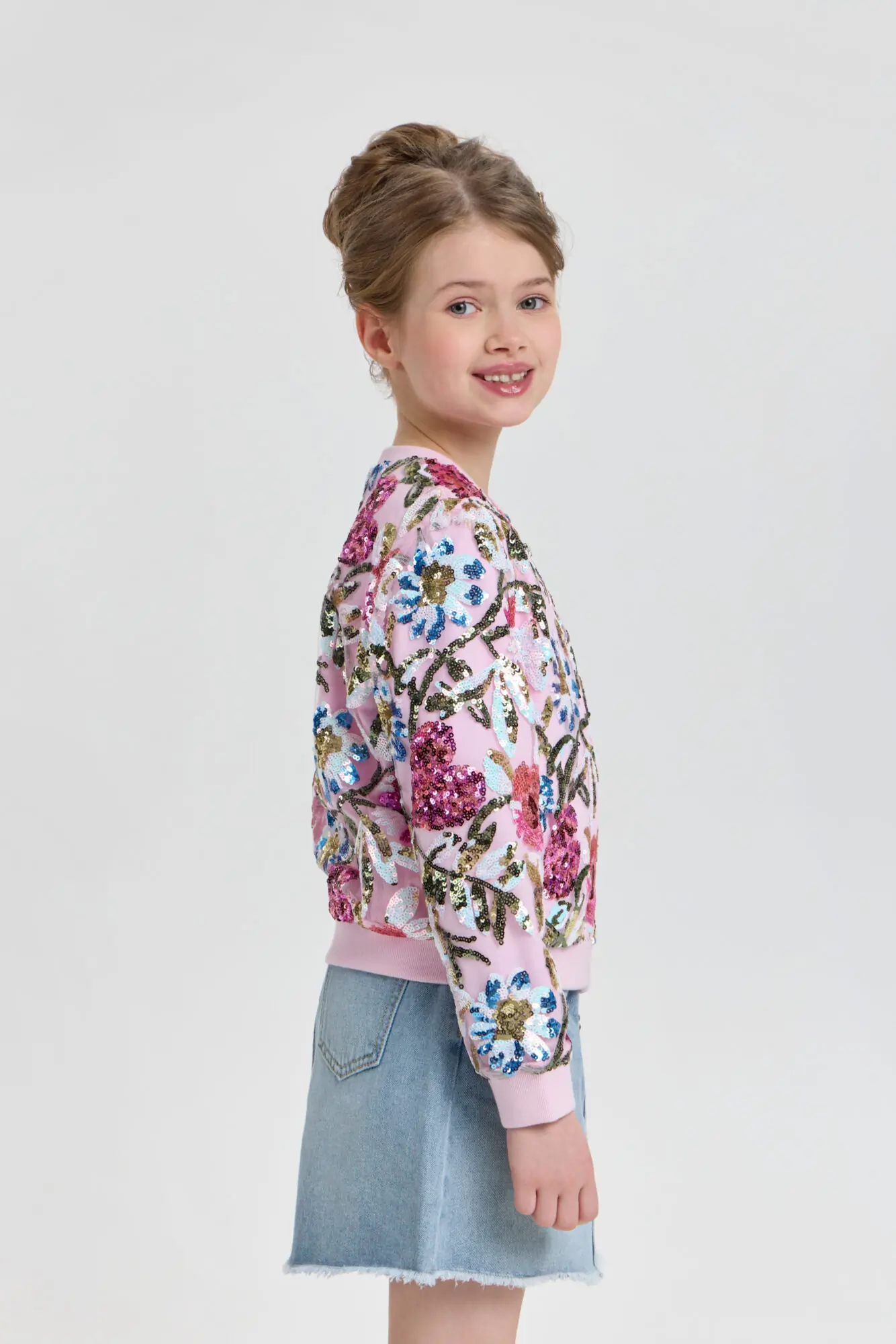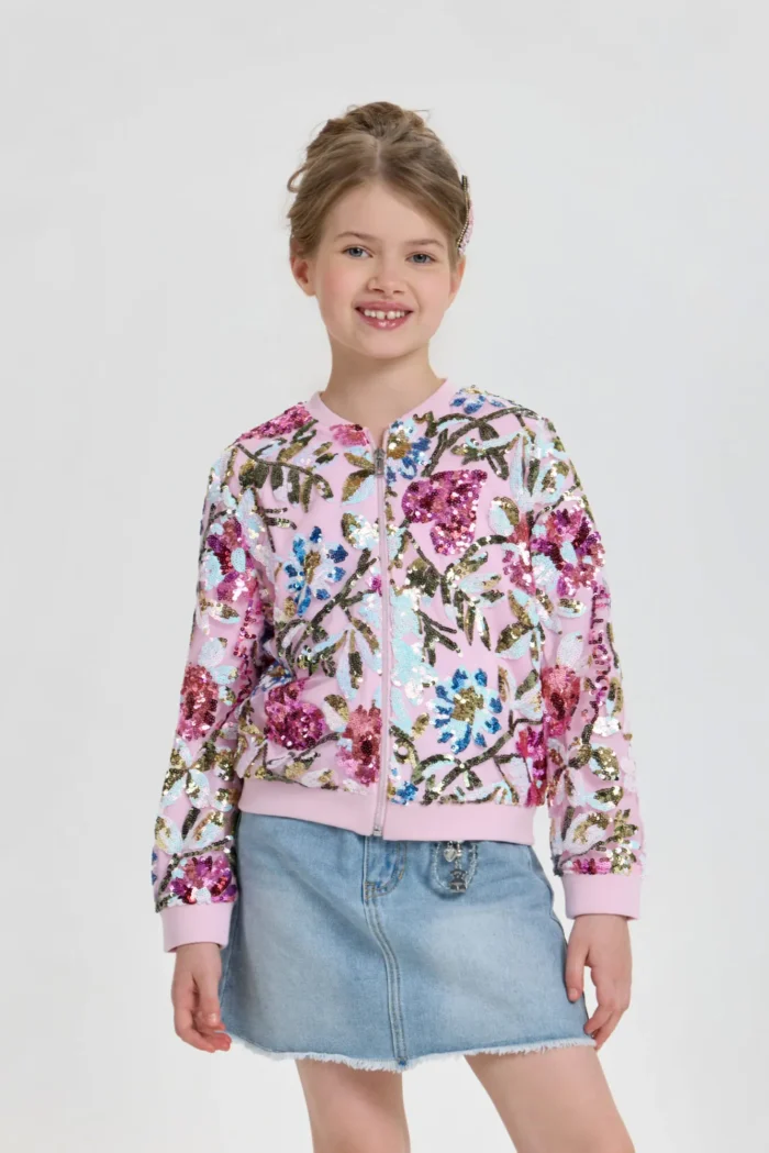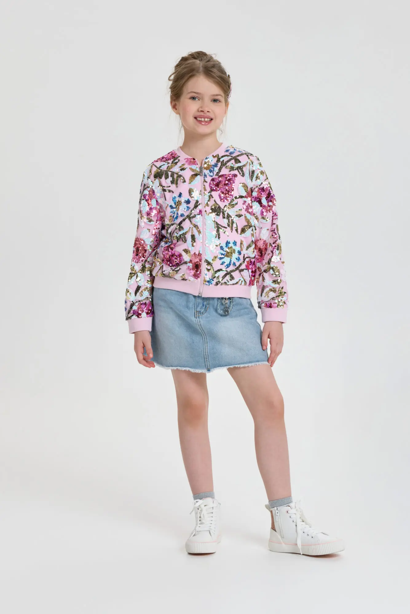This eye-catching, vibrant sequined bomber jacket for girls is a key trend this season! It’s the perfect choice for a special occasion, outings with friends, or a memorable photo shoot. The loose-fitting design is fully in line with the latest trends in youth fashion. The lightweight bomber jacket fastens with a practical zipper, and the elastic cuffs and hem are made of soft knit fabric. The sequins make this bomber not only stylish but also functional. It perfectly complements both basic dresses and skirts as well as pants and jeans, creating a harmonious look. Thanks to its soft cotton lining, the jacket is comfortable to wear for long periods and doesn’t irritate the skin.
