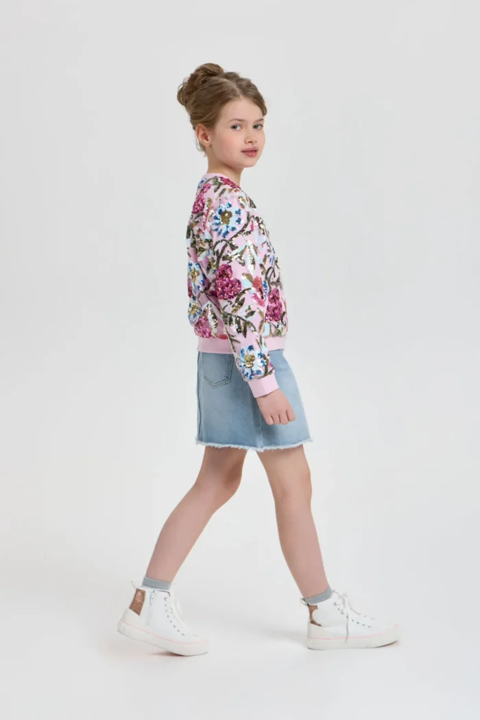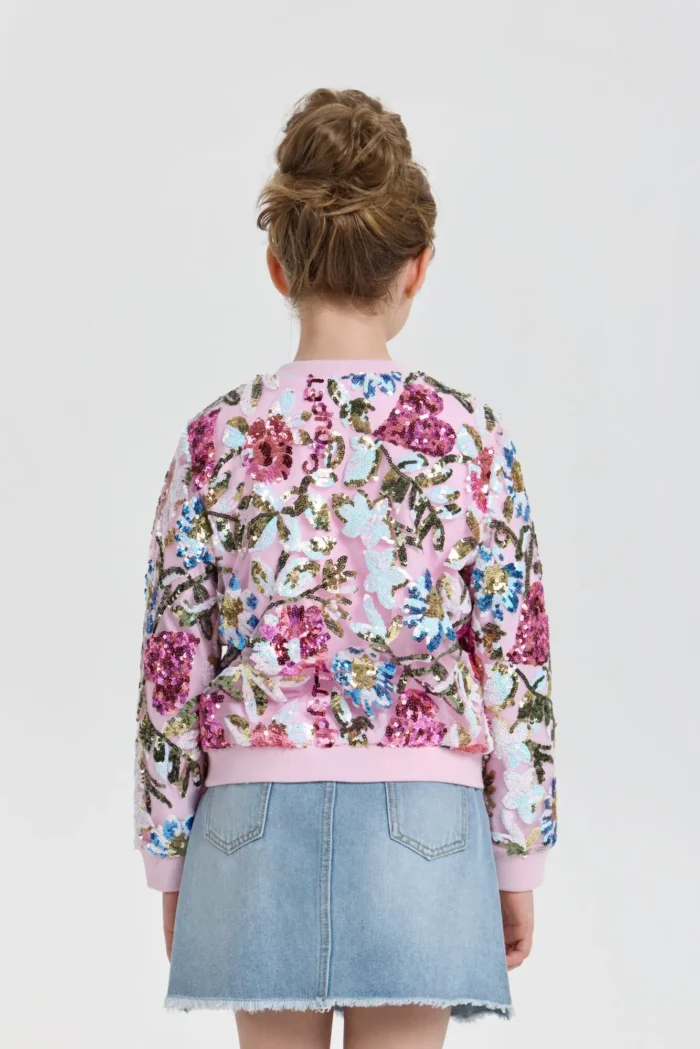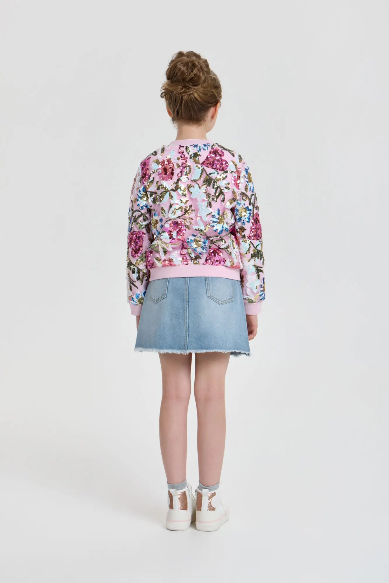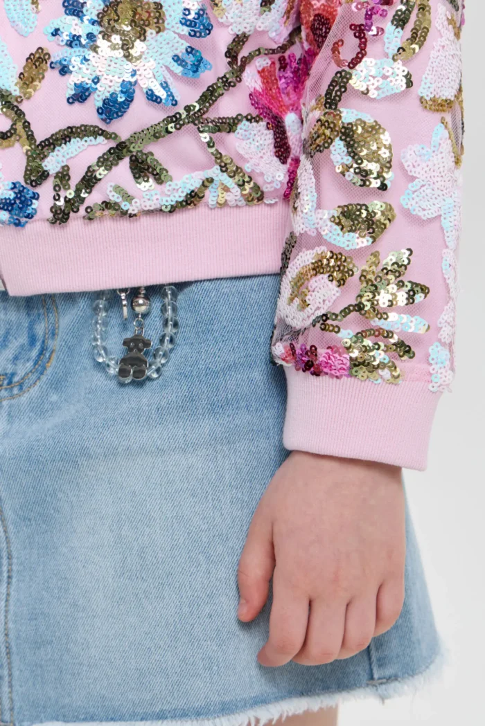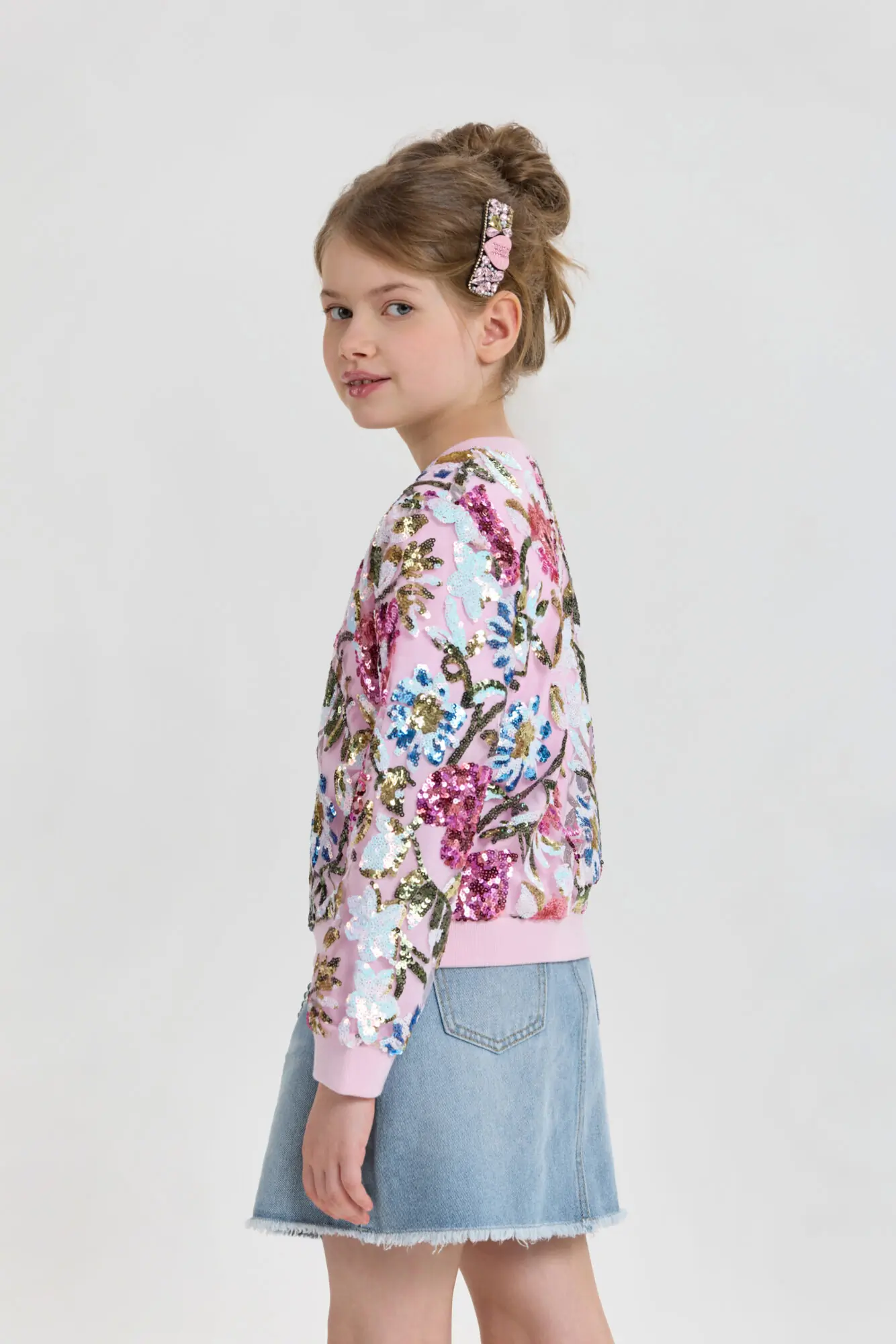 This eye-catching, vibrant sequined bomber jacket for girls is a key trend this season! It’s the perfect choice for a special occasion, outings with friends, or a memorable photo shoot. The loose-fitting design is fully in line with the latest trends in youth fashion. The lightweight bomber jacket fastens with a practical zipper, and the elastic cuffs and hem are made of soft knit fabric. The sequins make this bomber not only stylish but also functional. It perfectly complements both basic dresses and skirts as well as pants and jeans, creating a harmonious look. Thanks to its soft cotton lining, the jacket is comfortable to wear for long periods and doesn’t irritate the skin.