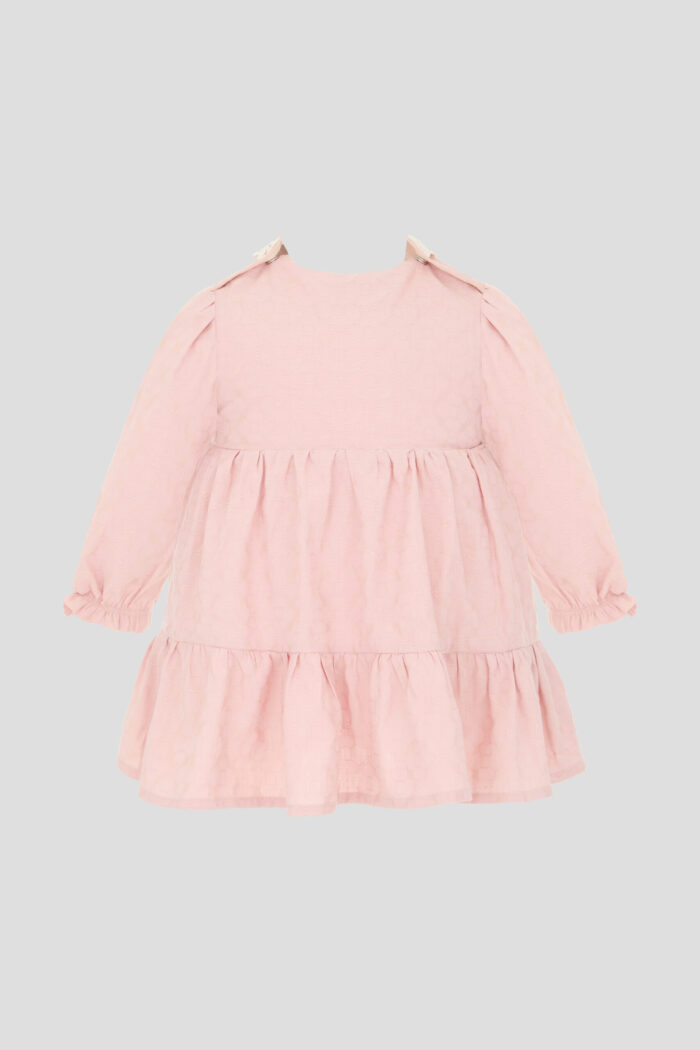 The jacquard cotton dress in terracotta colour is a stylish and comfortable outfit for a little girl. Elegant terracotta colour makes the dress versatile for various events. The dress is decorated with an original textured pattern that makes the design unique. The button fastener located on the shoulders makes it easy to dress the child. The cuffs on the sleeves are decorated with narrow ruffles. The jacquard cotton material provides excellent breathability. The comfortable cut allows free movement, which is especially important for active babies.