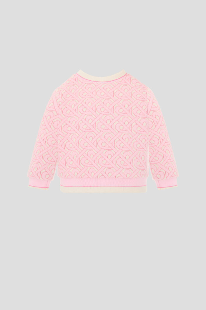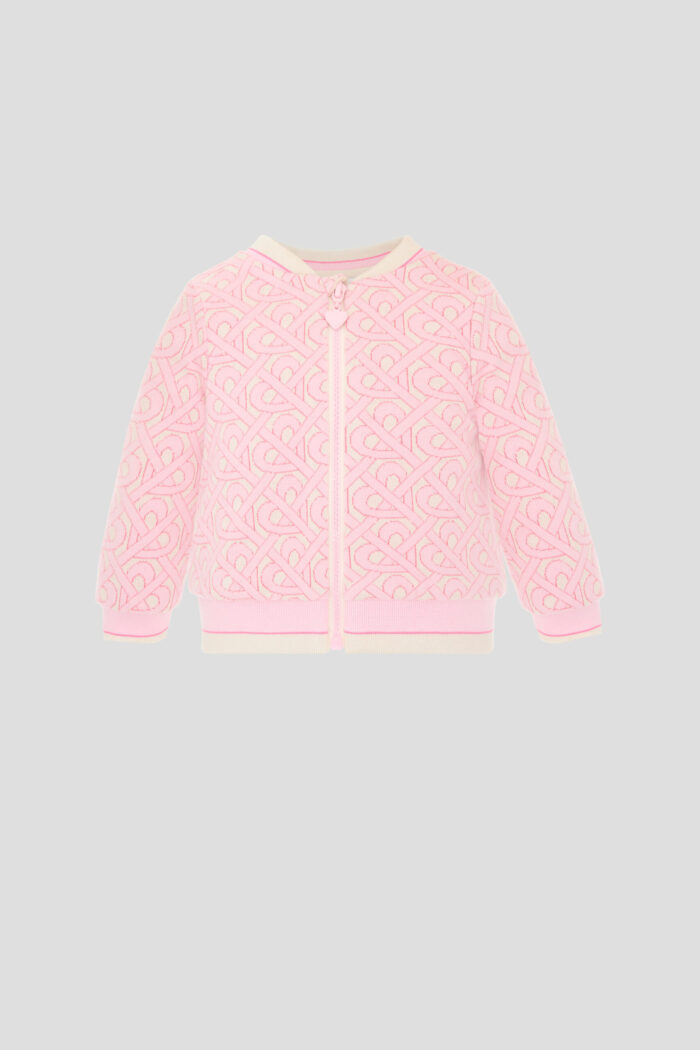 The jersey bomber jacket is the perfect choice for little girls. The soft lining is made of natural cotton. There is an intertwined heart print all over the jacket. The convenient zip fastening is located along the entire length and makes it easy to change clothes. The heart-shaped zip puller serves as an original design element and makes the jacket even more attractive. The elasticated cuffs and collar guarantee a perfect fit and protect against wind.