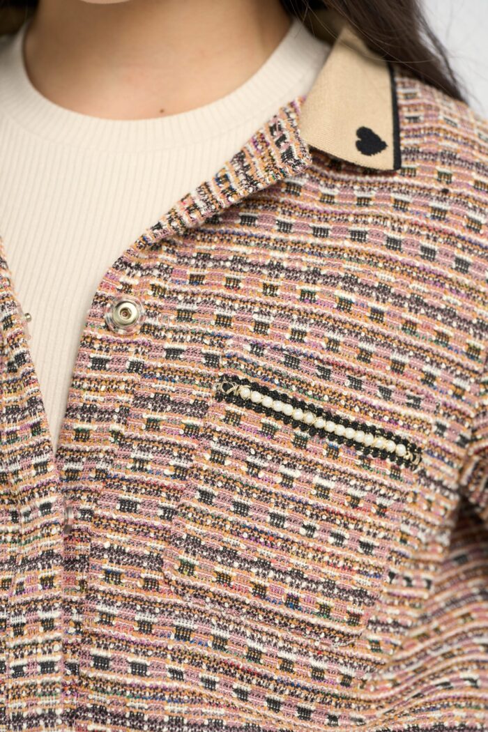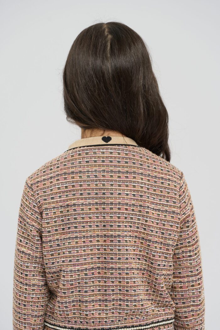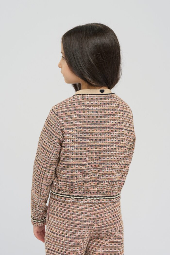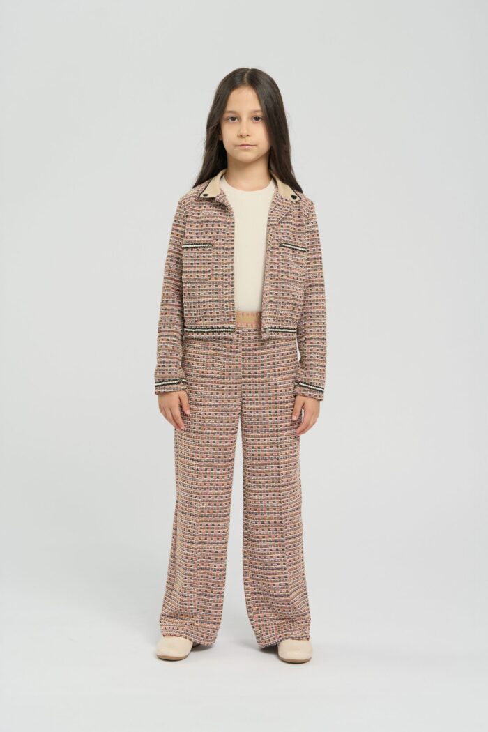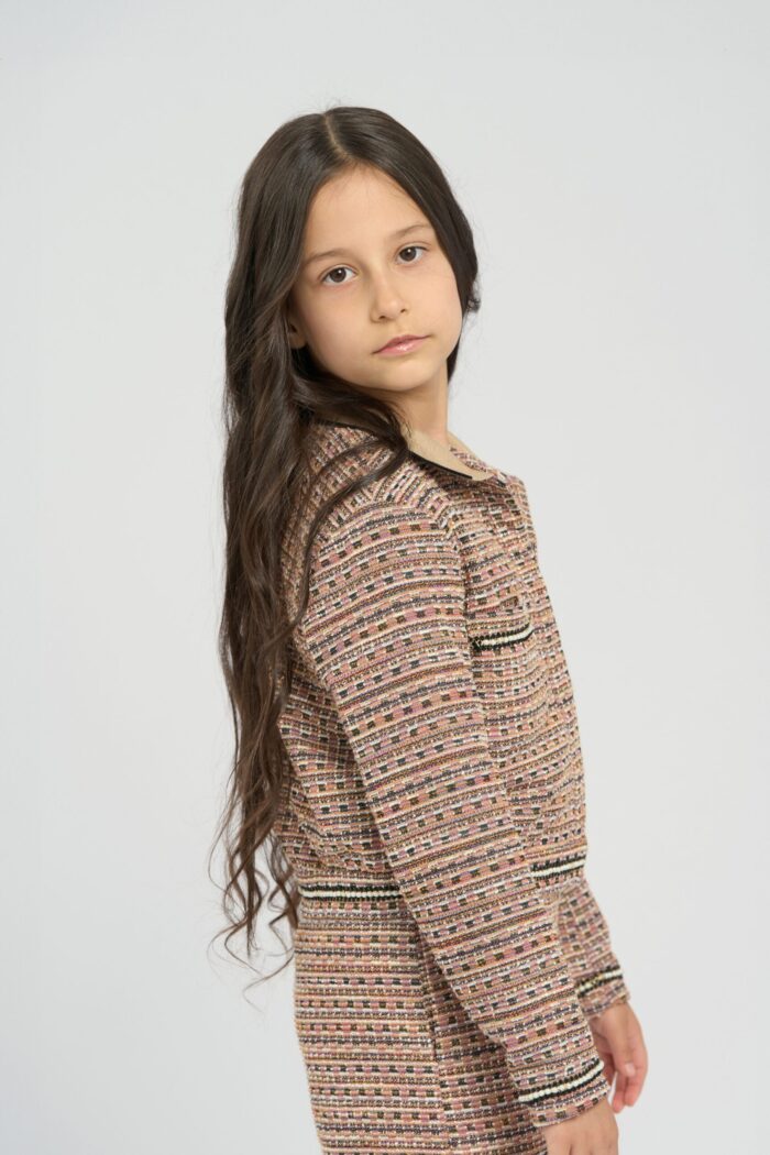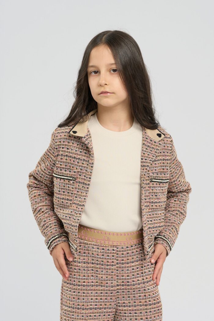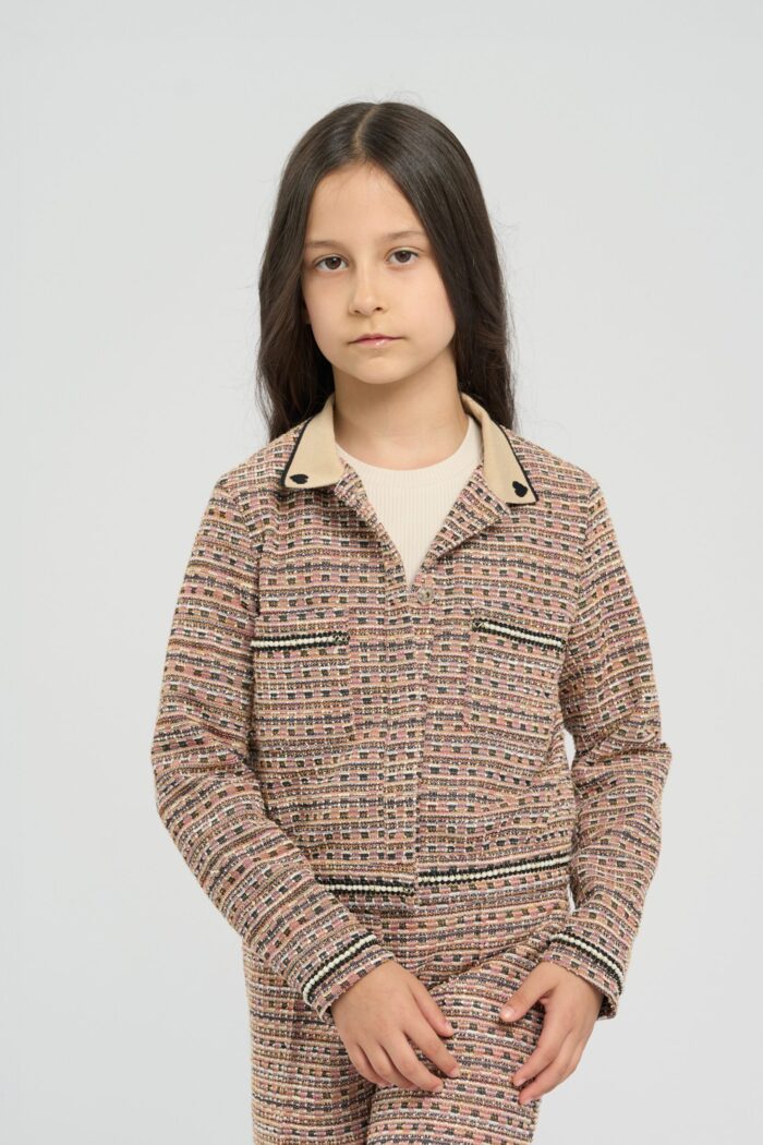 This stylish jacket will become a bright accent in a child’s look thanks to its original design and excellent colour combination. The loose fit makes it easy to combine the jacket with different outfits. Hidden button fastening and stylish pockets add functionality. The jacket is ideal for everyday wear as well as for special occasions. It has a lining.