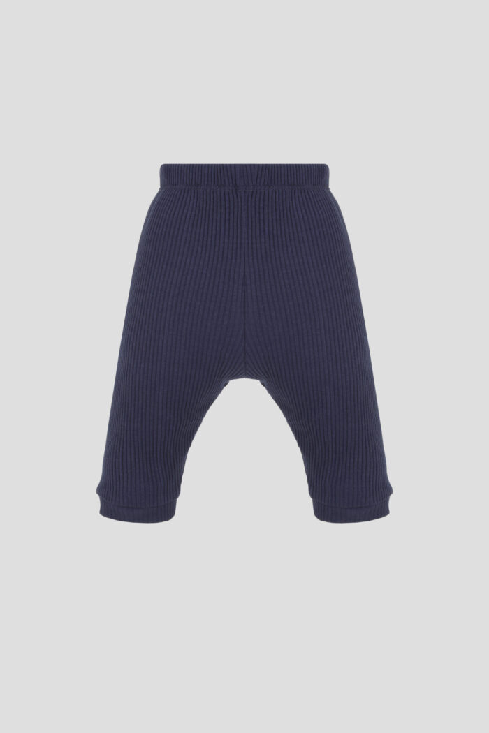 Basic pants for baby boy made of natural cotton with a textured knitting in the form of „noodles“. The model has a straight fit. There is an elasticated band at the waistband and bottom. The pants are ideal for everyday wear. The model can be easily combined with different types of tops, such as T-shirts or turtlenecks. Natural breathable fabric does not irritate baby’s skin.