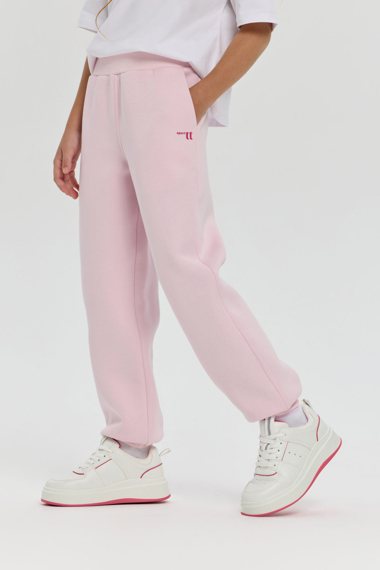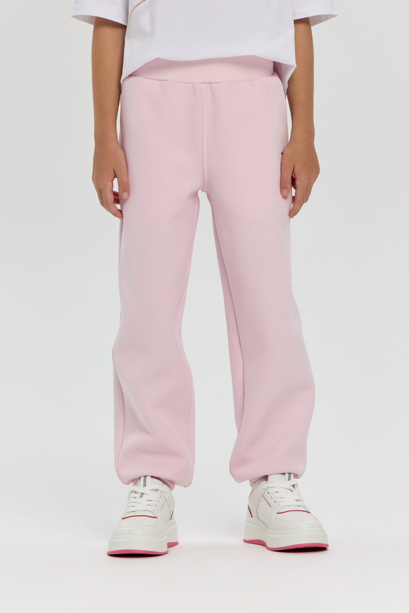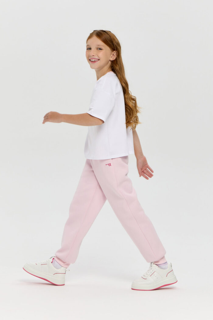 Stylish pink neoprene sports pants for girls. Neoprene material retains heat and keeps its shape, providing comfort even during active workouts. An elastic drawstring waistband allows you to adjust the fit, and practical side pockets let you carry your phone, keys or small accessories with you. The stylish minimalist design makes this model versatile: the pants can be easily paired with sweatshirts or regular T-shirts. Suitable for both sports and everyday wear.