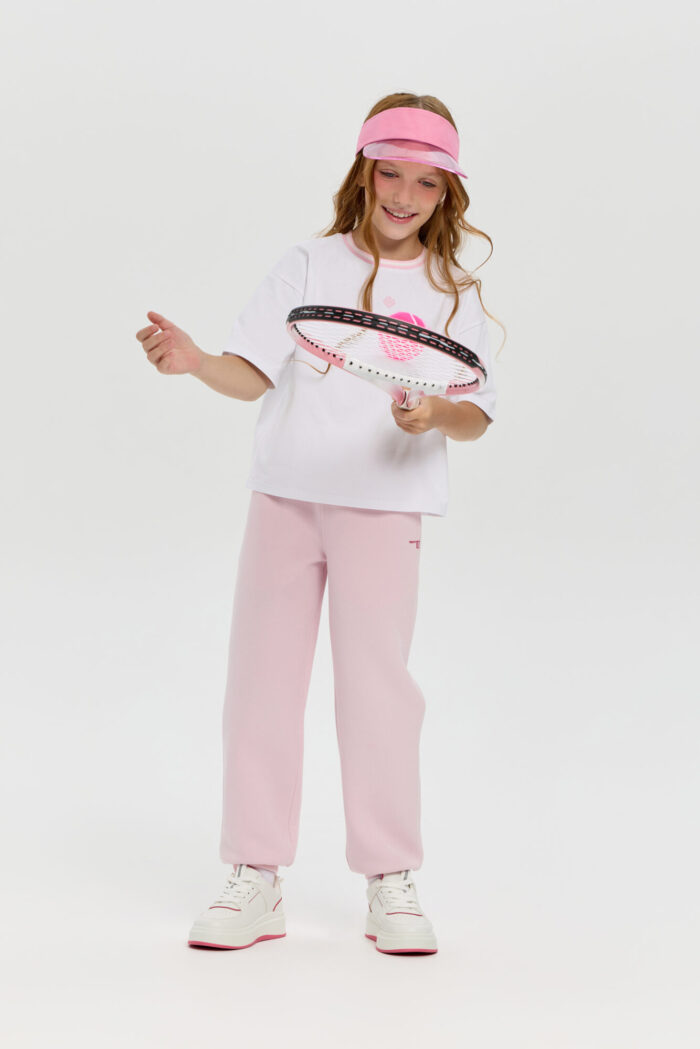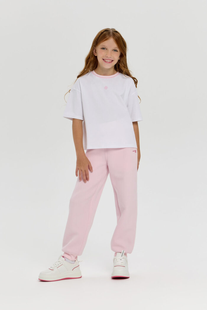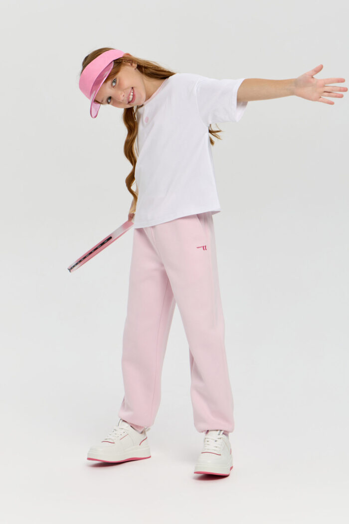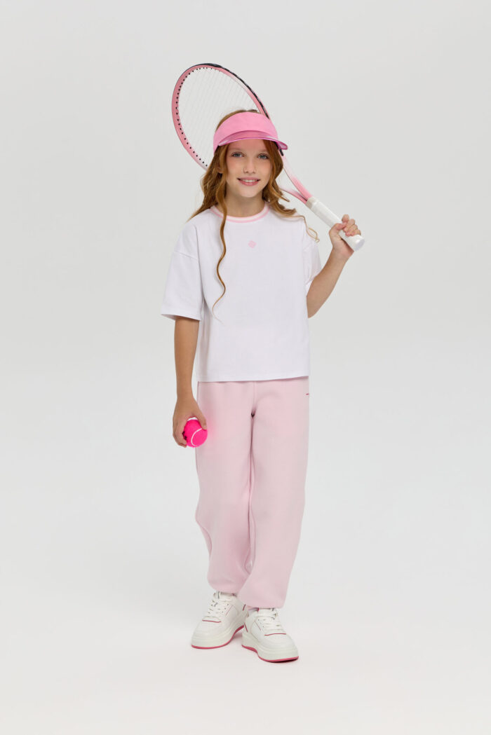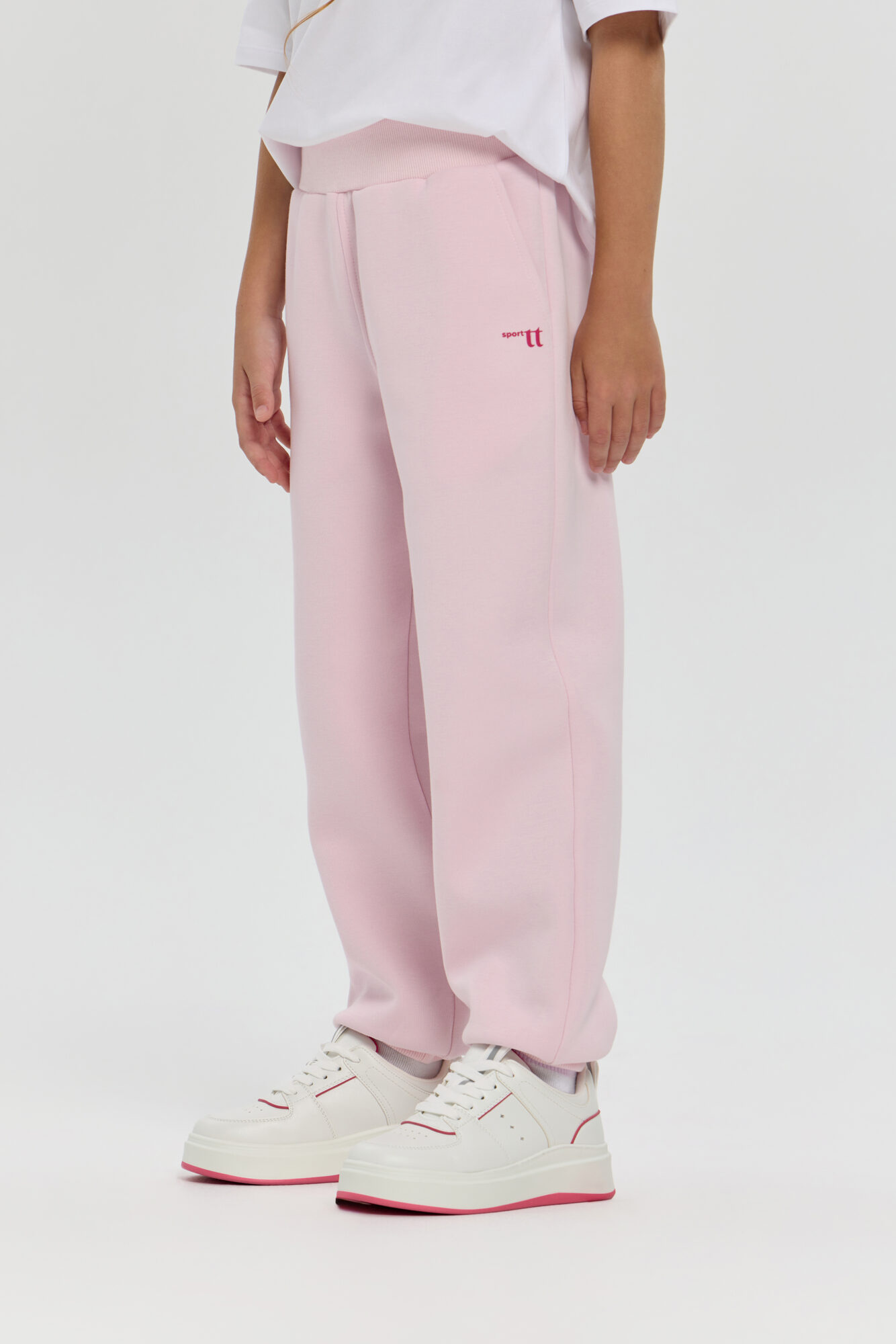 Stylish pink neoprene sports pants for girls. Neoprene material retains heat and keeps its shape, providing comfort even during active workouts. An elastic drawstring waistband allows you to adjust the fit, and practical side pockets let you carry your phone, keys or small accessories with you. The stylish minimalist design makes this model versatile: the pants can be easily paired with sweatshirts or regular T-shirts. Suitable for both sports and everyday wear.