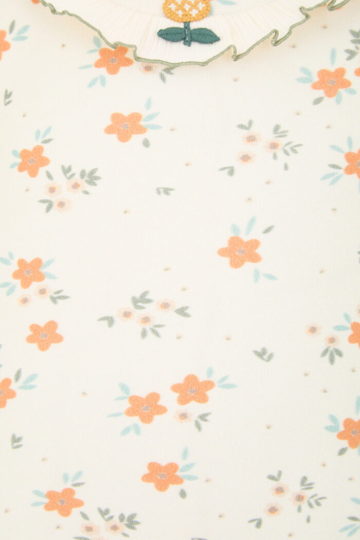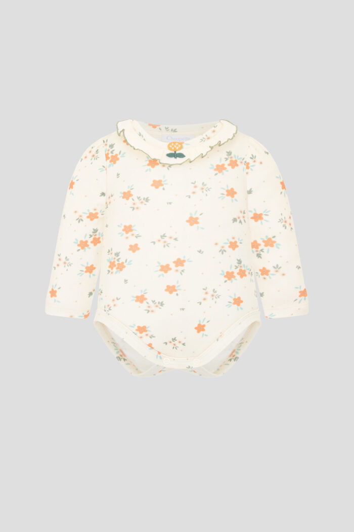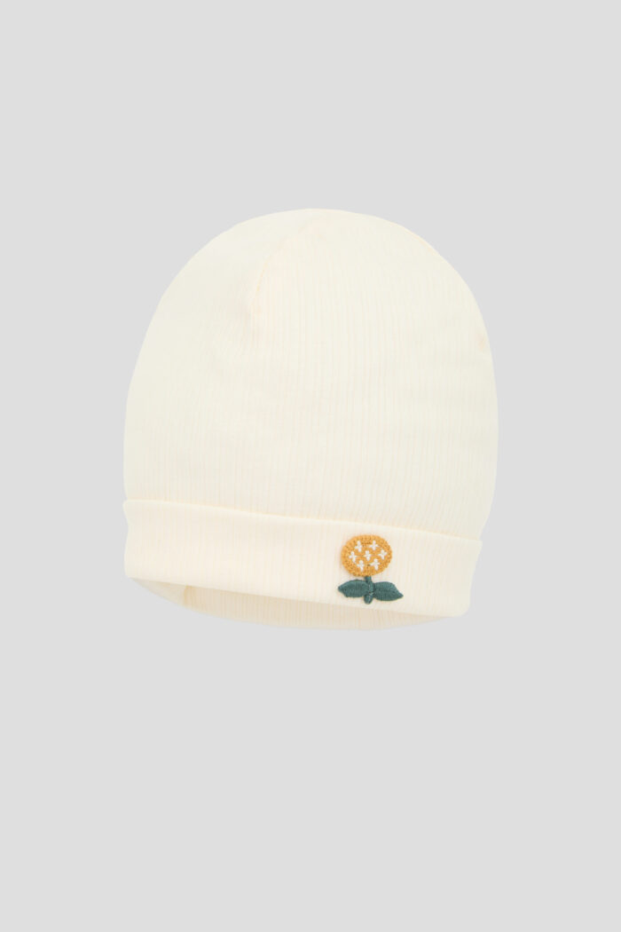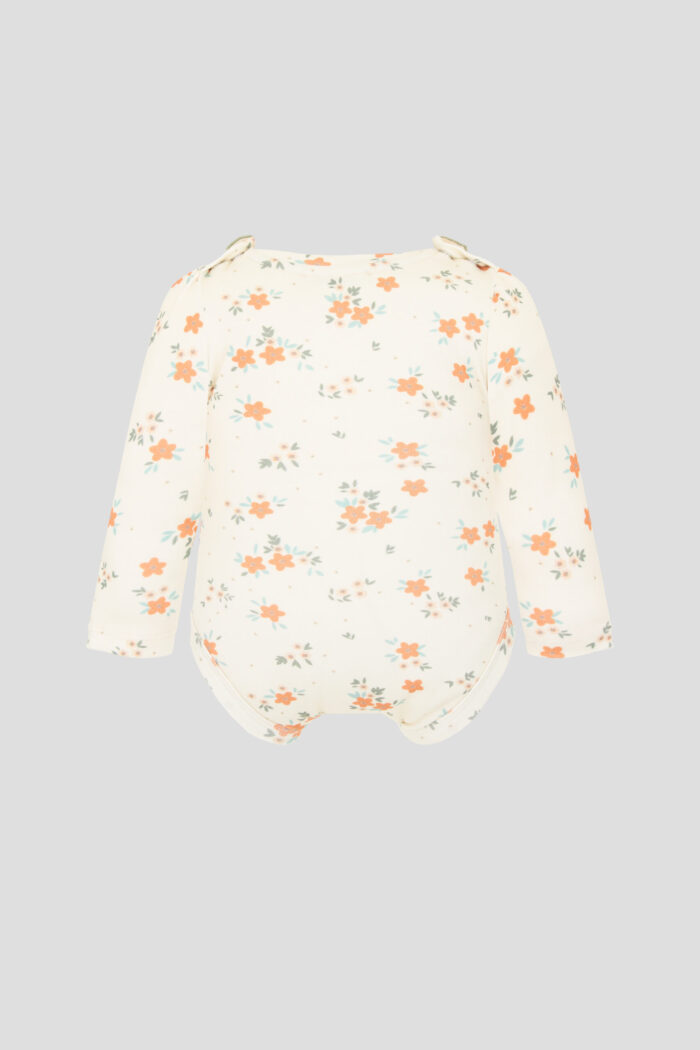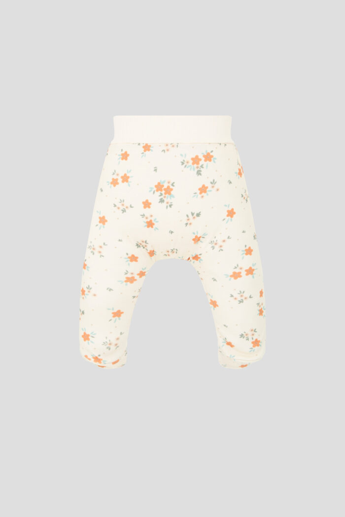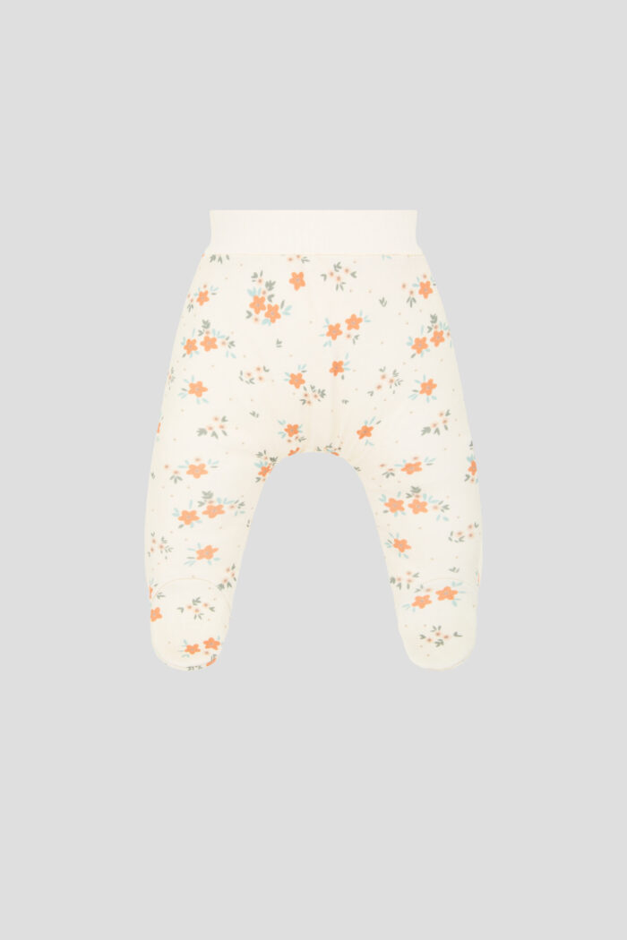 Baby set consists of a body, onesies and a hat. The model is decorated with a cute floral print and is made of soft and pleasant knit. The bodysuit is decorated with lace and floral applique on the neckline, fastens with buttons. The onesies have a comfortable fit, which is provided by elastic material and a wide waistband. The cap with a floral patch harmoniously complements the set. The natural material is highly breathable, provides comfort and prevents overheating.