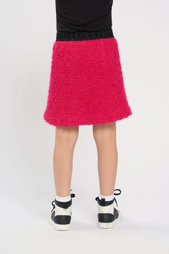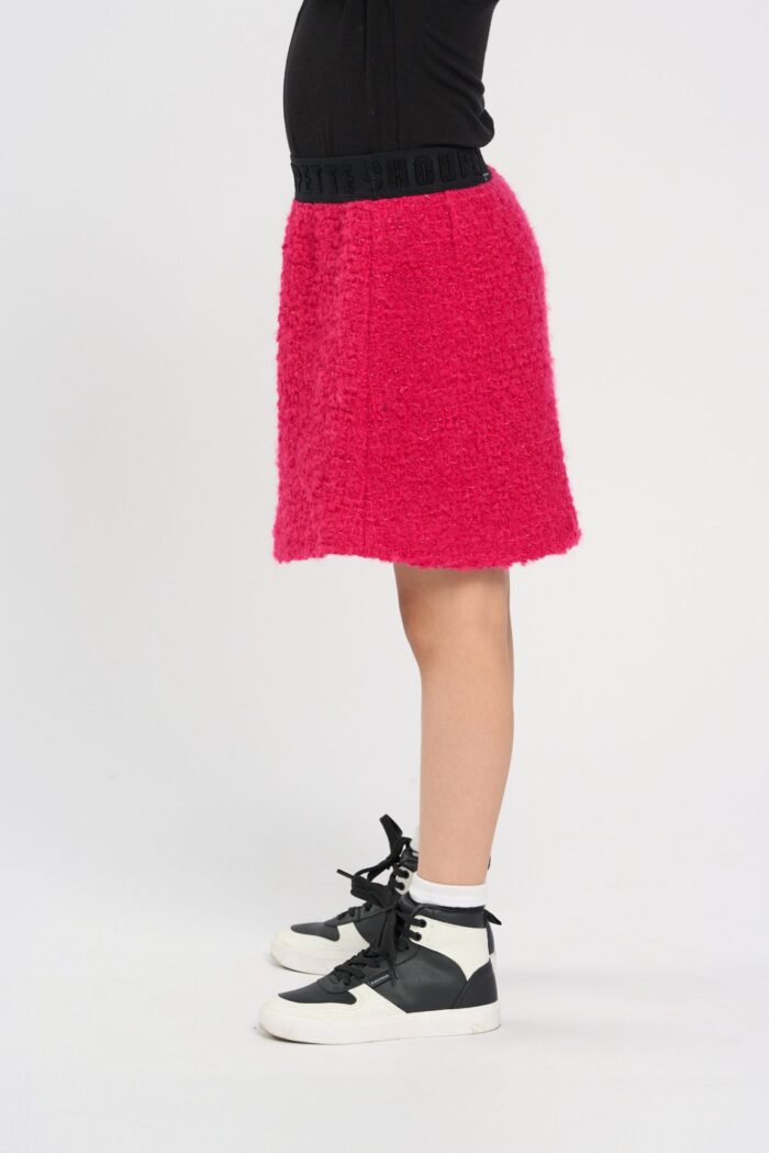 The skirt for a girl in bright pink is a stylish and comfortable model, ideal for everyday wear. The knitted texture gives the outfit a soft feel, making it pleasant to the touch and comfortable for baby. Fashionable pink colour makes the skirt a bright accent. The model has a comfortable trapezoidal silhouette. Elastic black belt creates a contrast and emphasises the waist, provides a comfortable fit. It has a modal lining.
