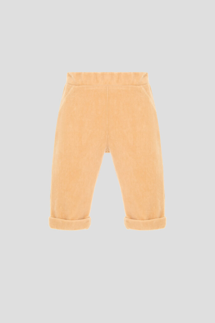 Fashionable micro-velvet pants in curry shade for a girl. Beautiful texture of the fabric and tucks on the pants became the main decoration of the laconic design. The model is ideal for the role of basic clothes for children’s wardrobe, because it is versatile in combinations with any top. The elasticated waistband, which does not press on the baby’s stomach and does not constrict movements, is responsible for comfort. The cotton-based fabric allows the body to breathe, which is important for maintaining the high hygienic properties of children’s clothing.