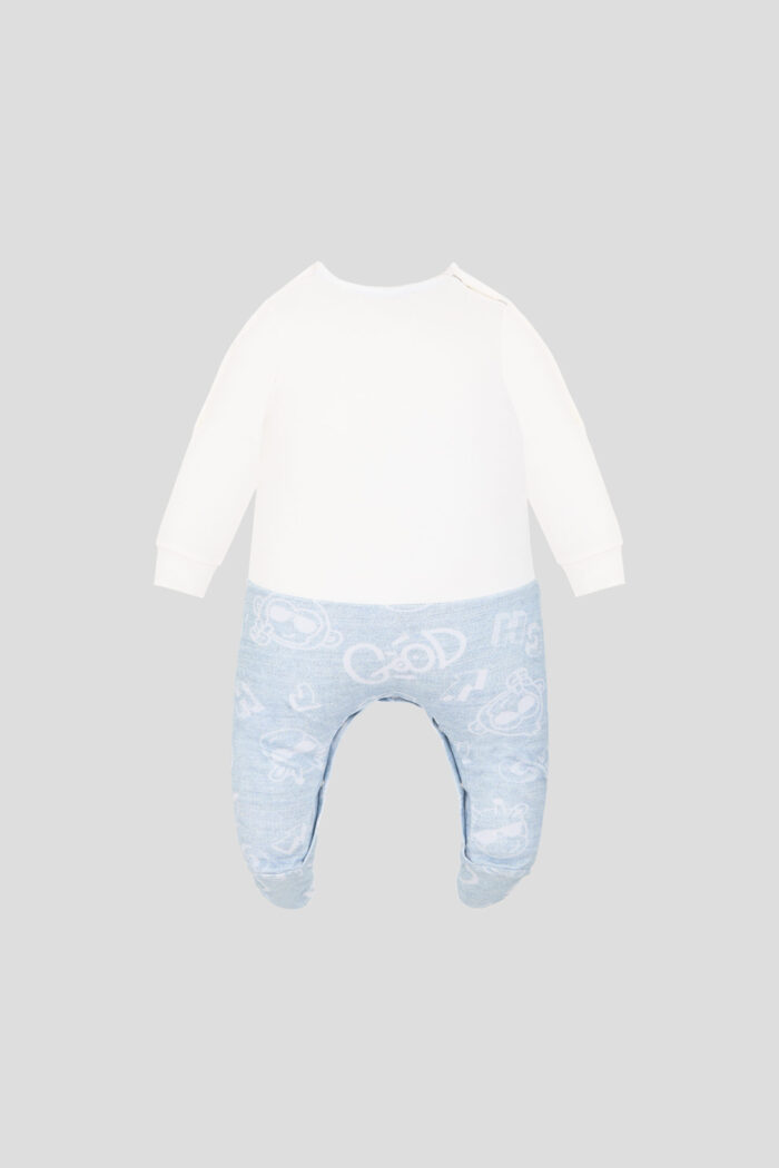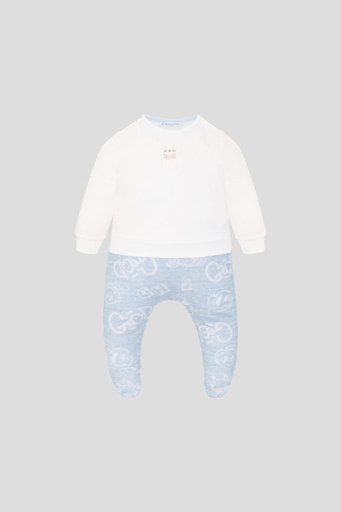 The boy’s overalls is made of combined fabrics with a branded print is a great choice for a child’s wardrobe. The top of the overalls is in light colour and decorated with a small patch. The bottom is blue with an original print. There is a handy button fastening between the legs for easy clothing changes. Natural, breathable cotton is the ideal fabric for your baby’s delicate skin.