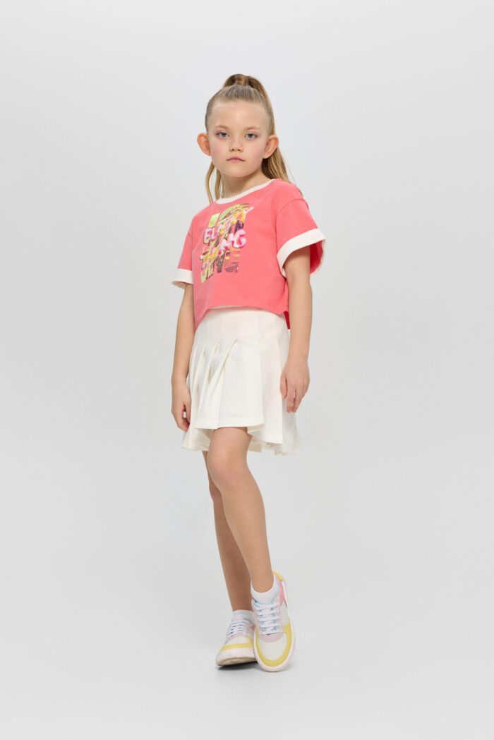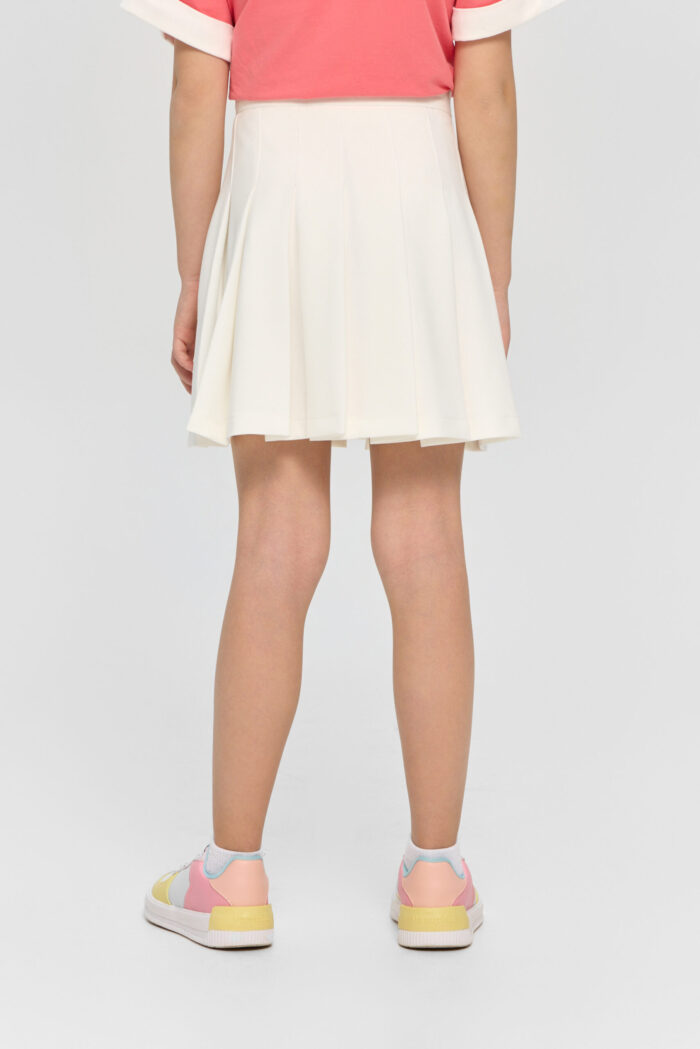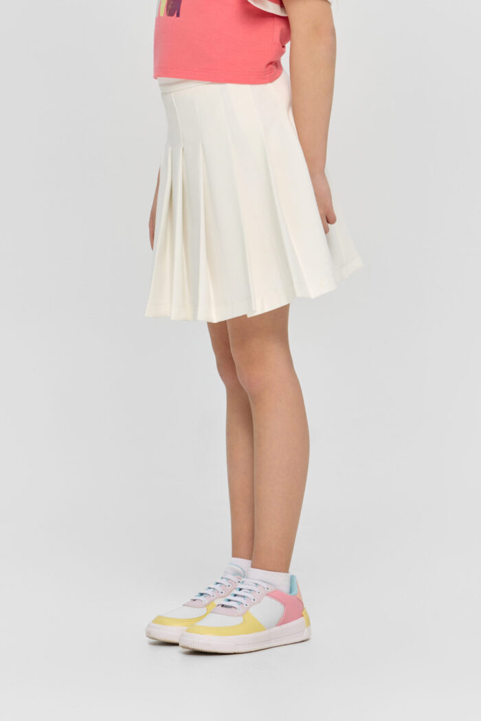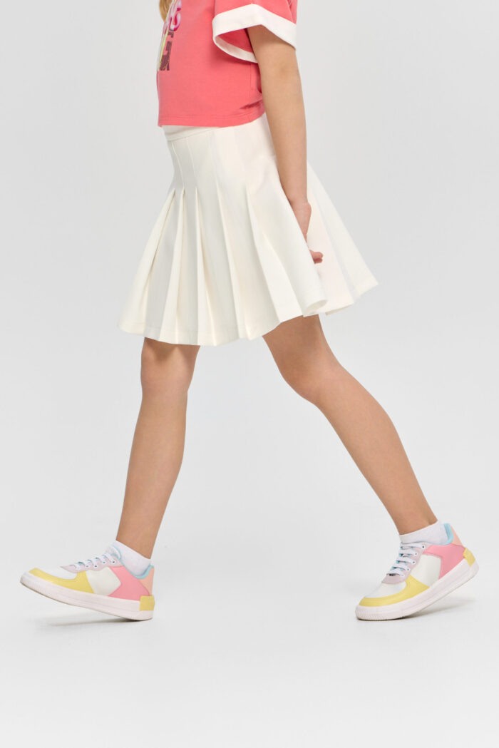 The pleated skirt is the perfect basic wardrobe item for girls. The laconic design of the skirt makes it versatile and stylish, suitable for different occasions. The adjustable elasticated waistband ensures a comfortable fit. The skirt can be easily combined with various tops, blouses and T-shirts to create a variety of looks.