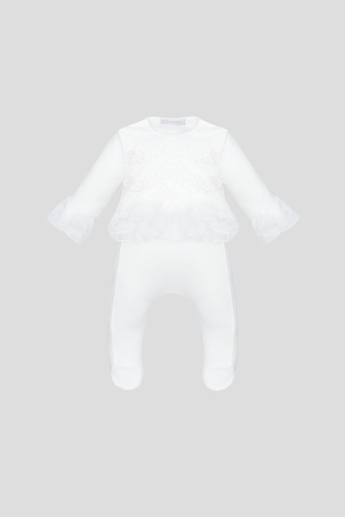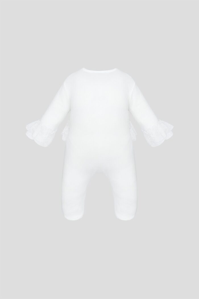 Der modische Jumpsuit für Mädchen aus natürlicher Baumwolle in der aktuellen Farbe Ecru macht aus Ihrem kleinen Mädchen eine kleine Prinzessin. Der Rundhalsausschnitt, mit Knopfverschlüssen an den Schultern und zwischen den Beinen für einen schnellen Wechsel der Kleidung. Geraffte Rüschen verleihen dem Overall einen schicken Look. Die Mütze vervollständigt den Look und schützt die Ohren vor Puste.