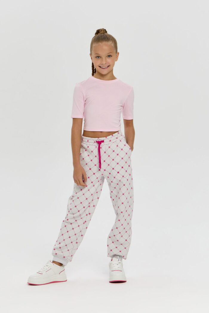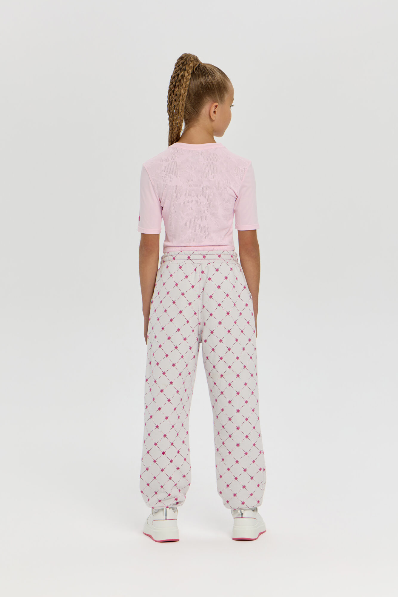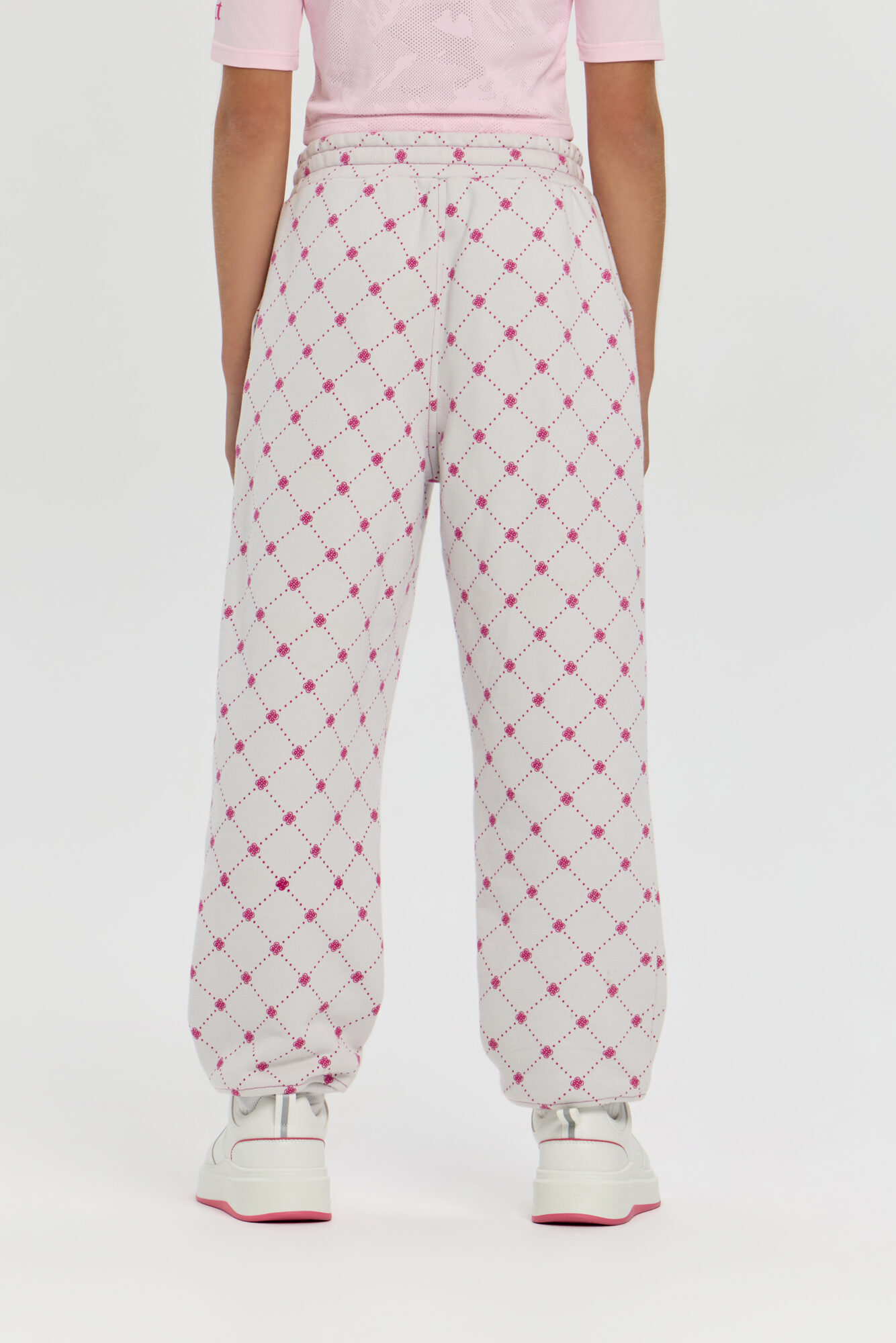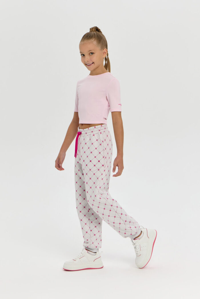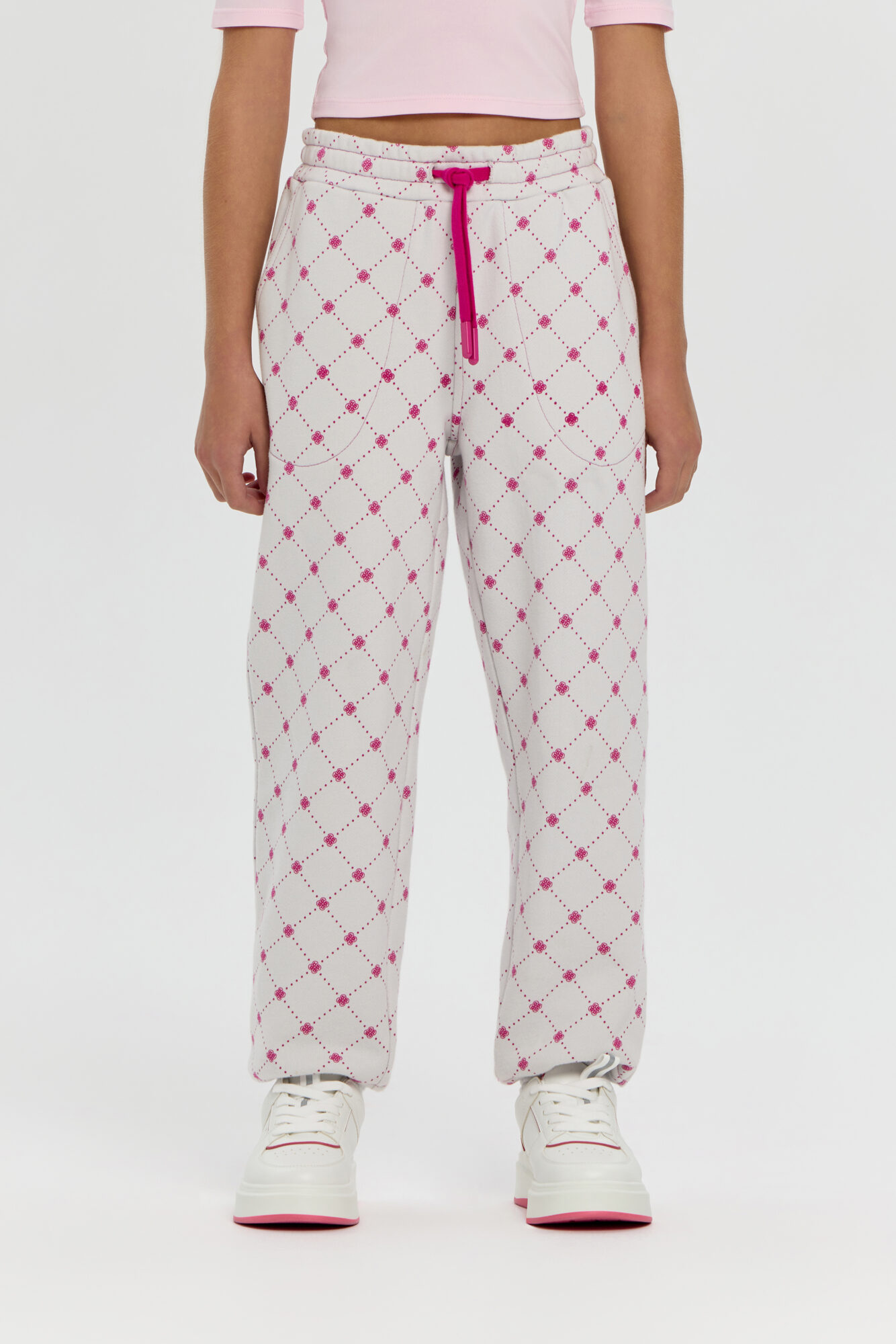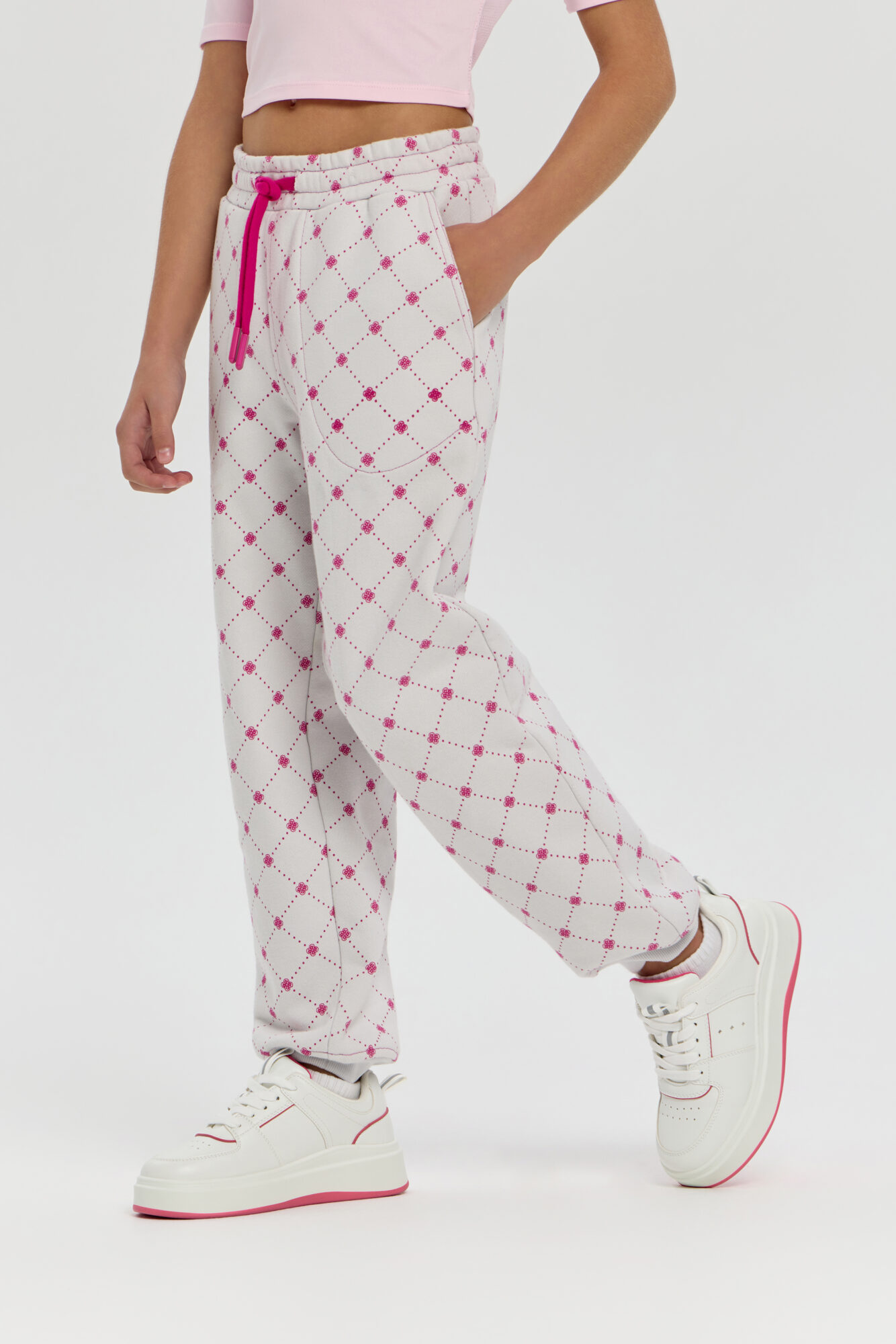 These sports pants with an original graphic design will be a great addition to any girl’s wardrobe. The soft cotton fabric provides comfort, lightness and durability. The straight silhouette and elastic waistband with adjustable drawstring guarantee a perfect fit for your child. The practical side pockets can easily hold a mobile phone, keys or other small items. The memorable brand print adds a touch of style and goes well with plain sweatshirts and bomber jackets.