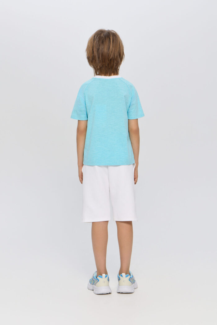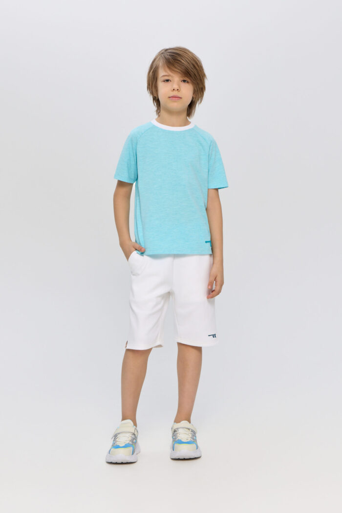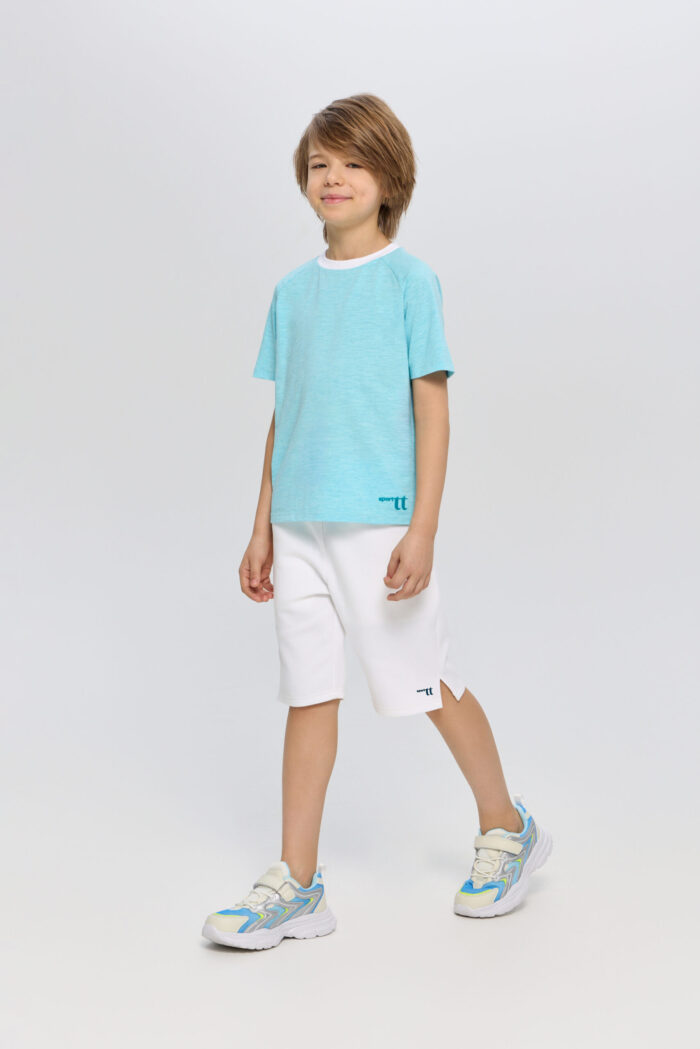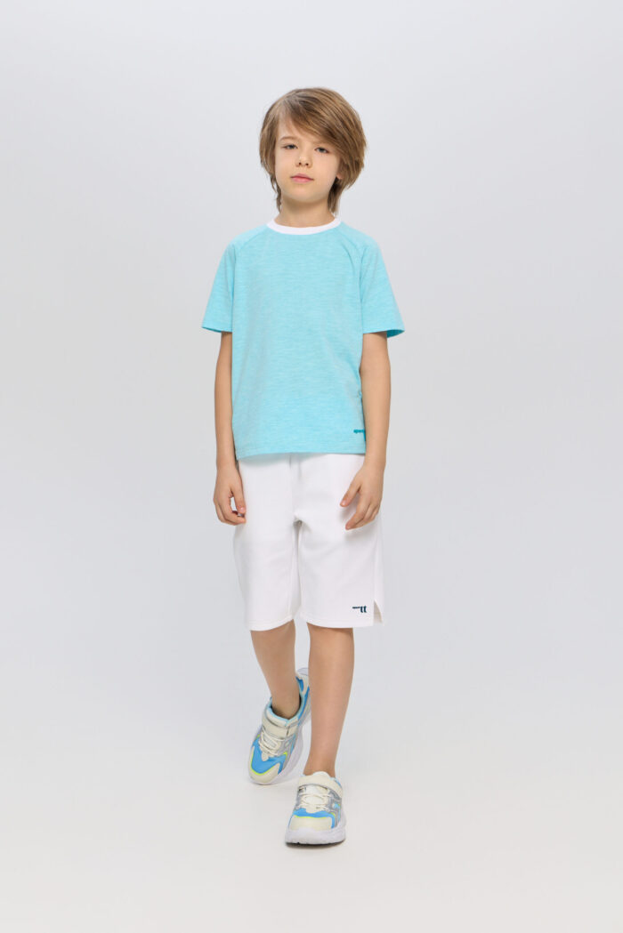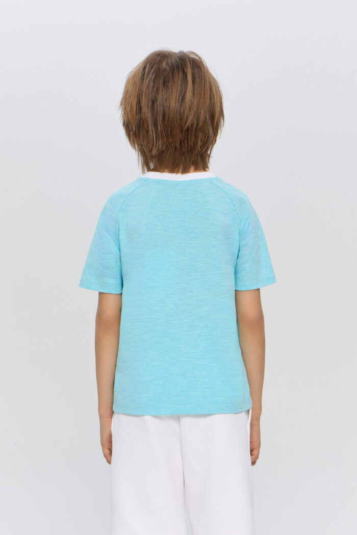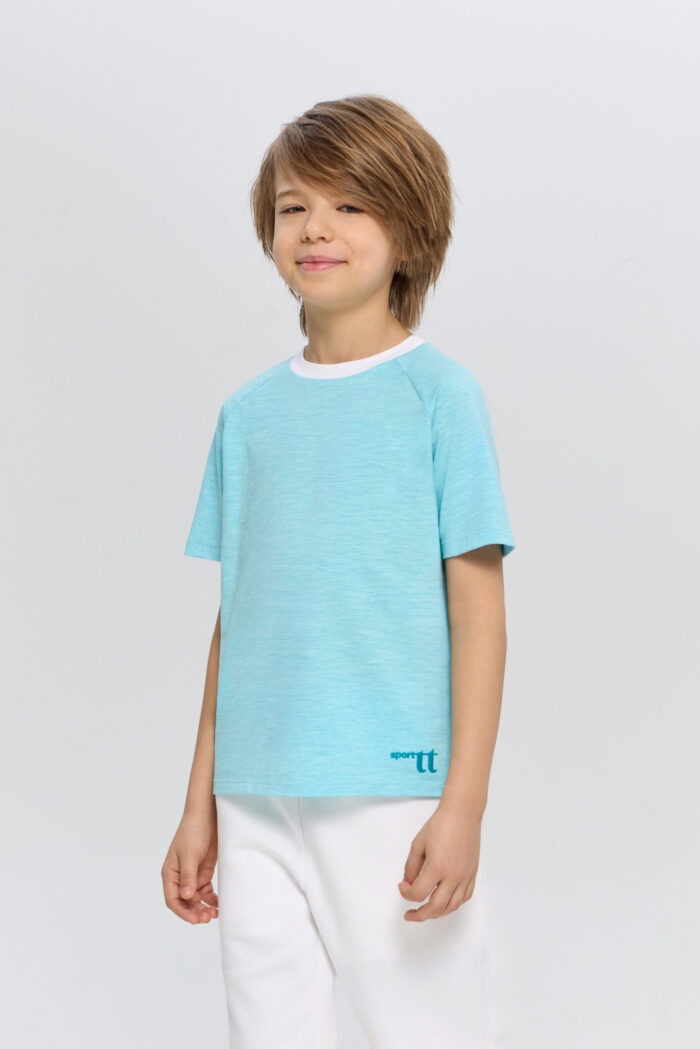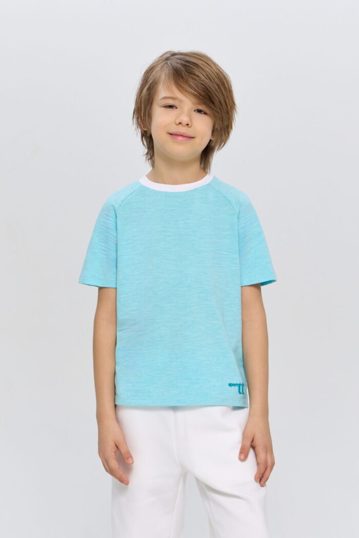 Blue T-shirt for boys is a great option for sports or outdoor activities. The model has a laconic design, which makes it easy to combine it with various sportswear or casual wardrobe items. The T-shirt is perfect for both training and everyday wear.