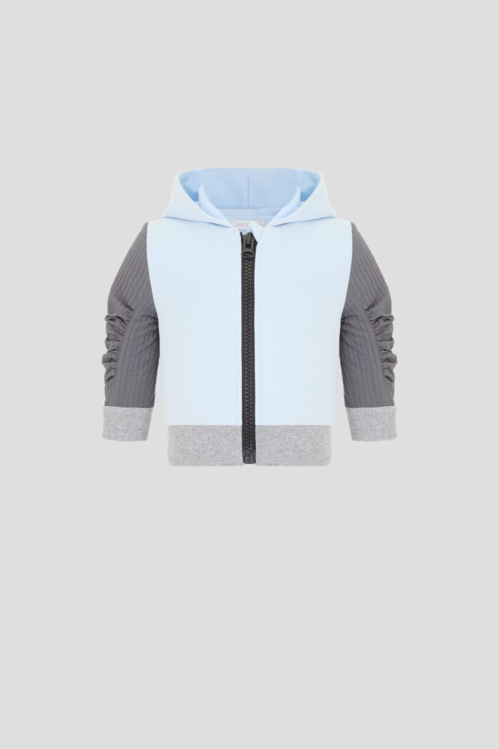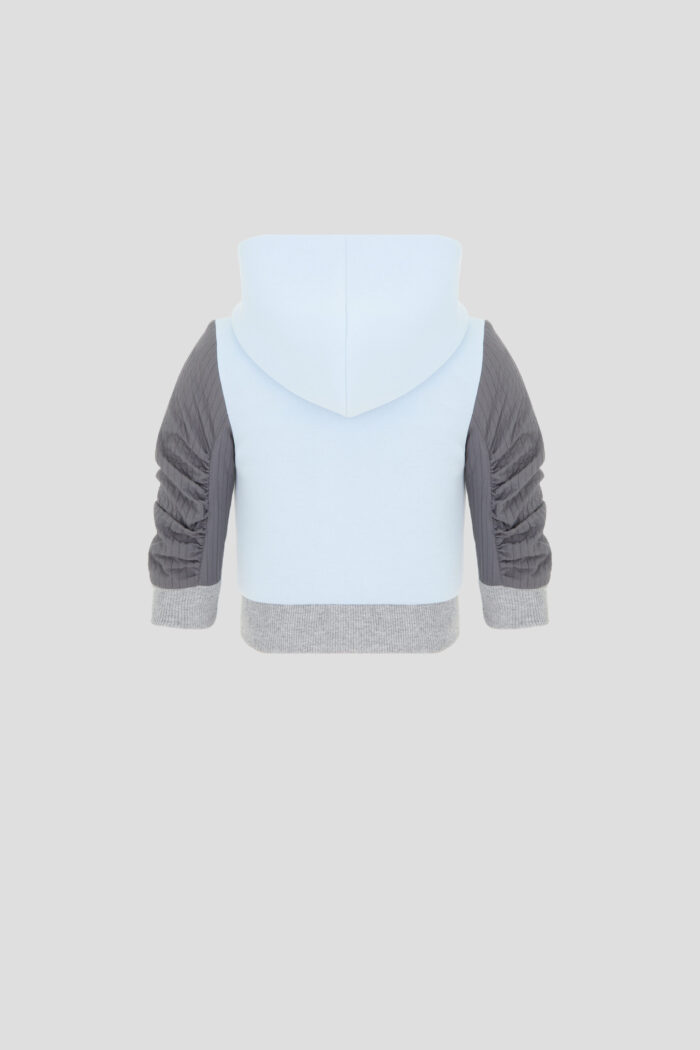 This sweatshirt for boys is the perfect solution for cooler days. The vivid design makes it not only functional, but also stylish. Drapes on the sleeves add uniqueness. The colour palette will perfectly match with different elements of the wardrobe. It is comfortable to walk, play and even sleep in it, because comfort is the most important thing for a child.