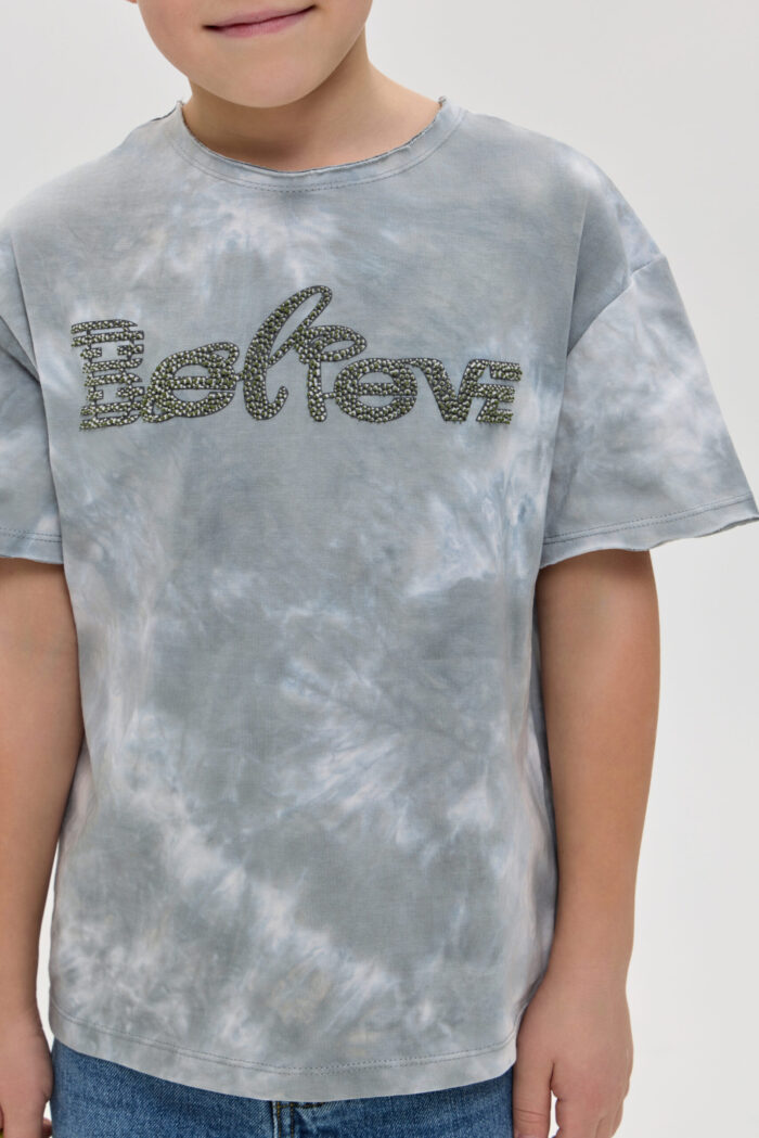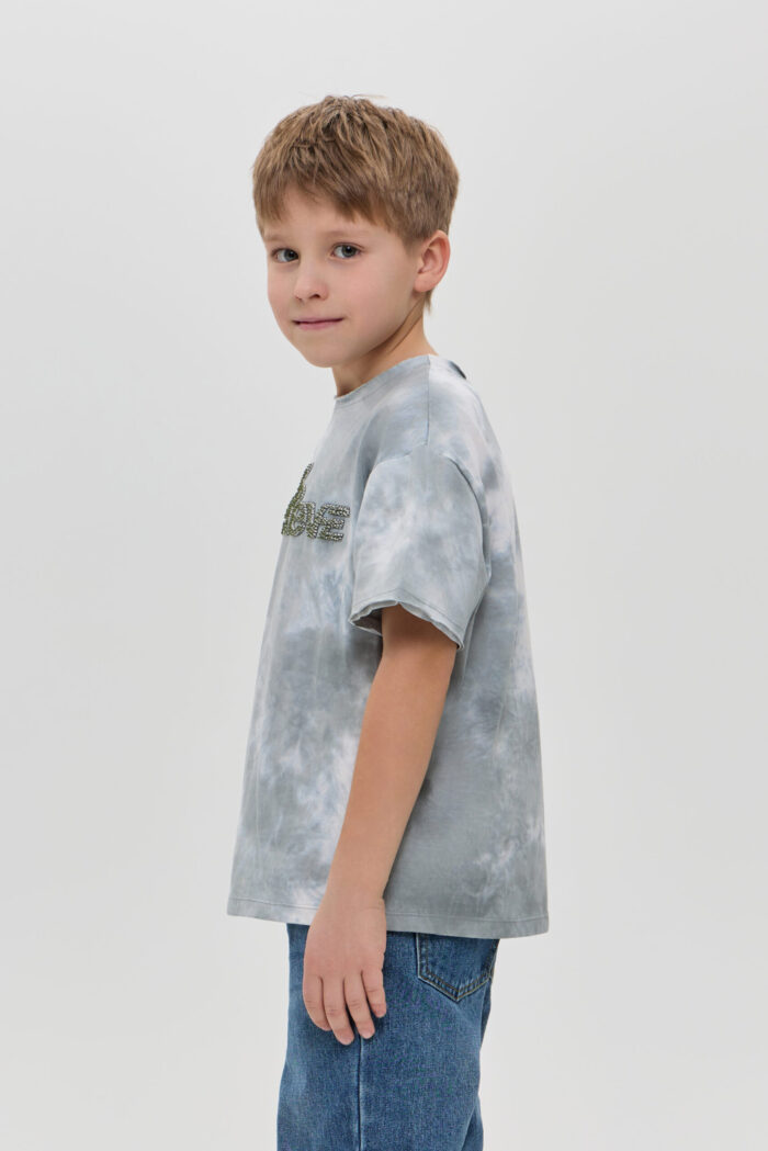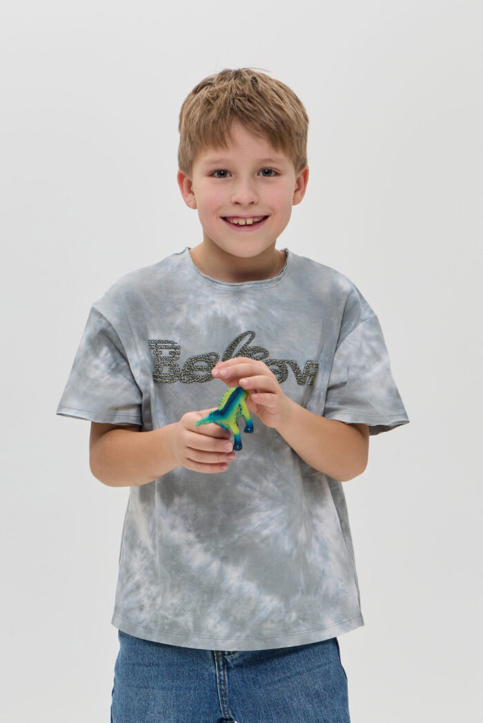 The boy’s t-shirt in grey will be a great addition to your child’s wardrobe. Made of soft and breathable material, it provides comfort all day long. The T-shirt has short sleeves and a round neckline, which gives it a stylish and modern look. There is a text decoration on the chest, which adds personality. The versatile grey colour can be easily combined with other items.