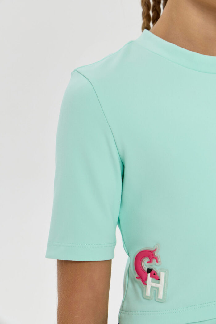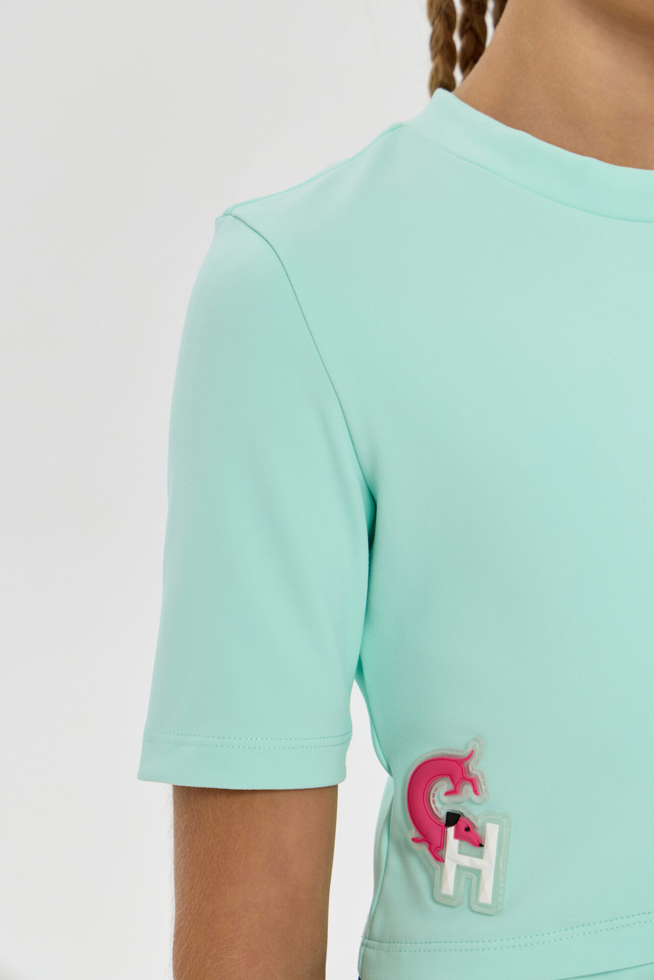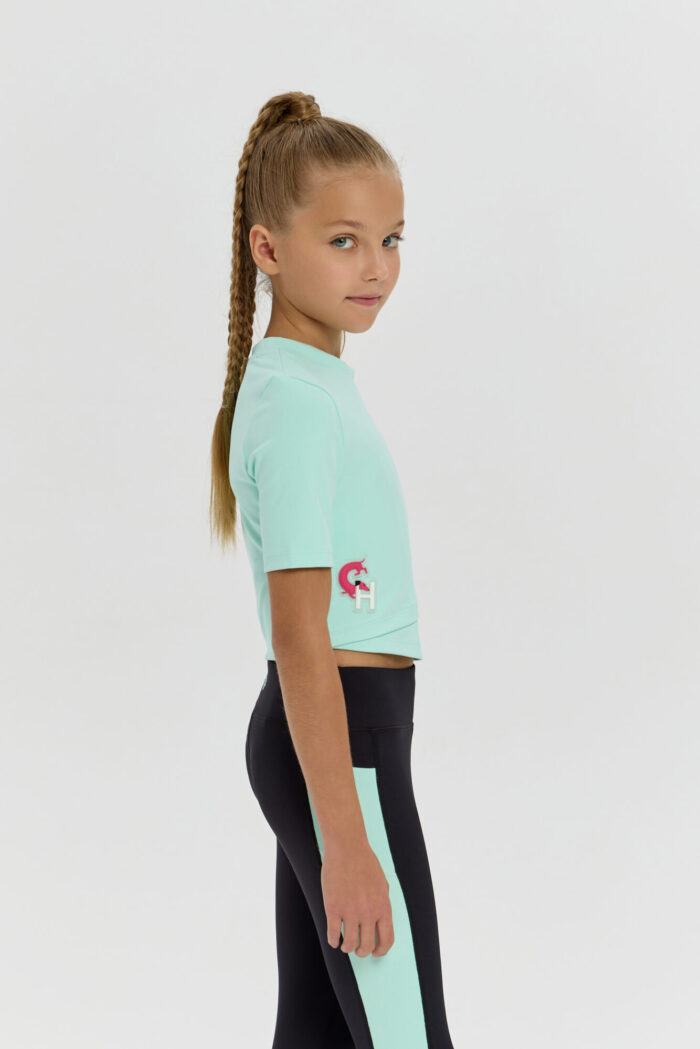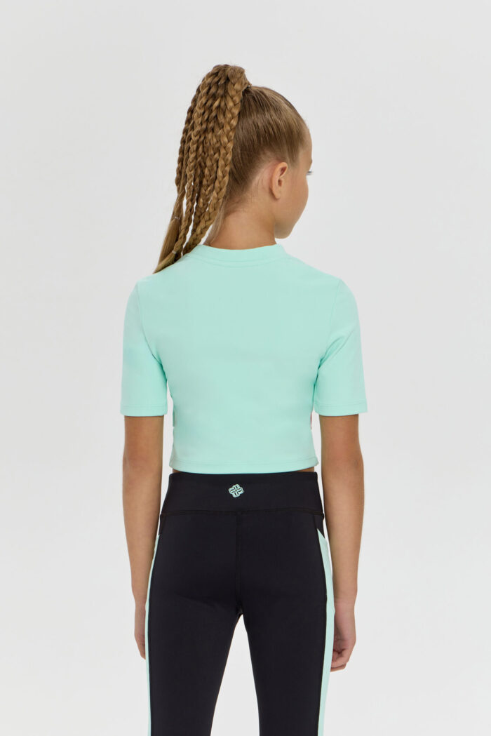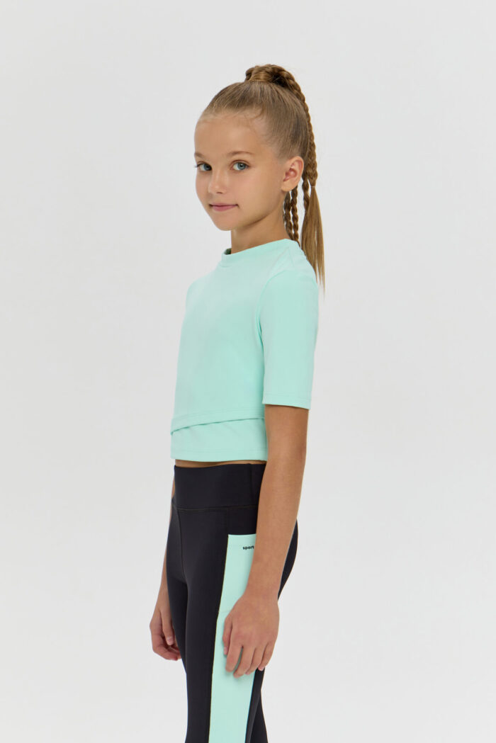 This sports T-shirt is designed specifically for active girls who want to look stylish and feel comfortable. The fabric, made using CH Dry technology, has a pleasant texture, guarantees excellent air circulation and dries quickly. The cropped model goes perfectly with leggings or sports pants, creating a modern athletic silhouette. The ideal choice for the gym, dance classes and outdoor activities.