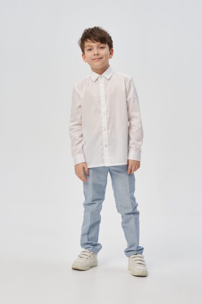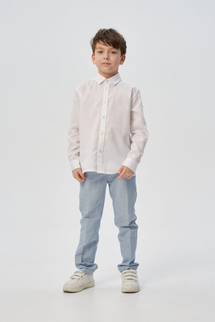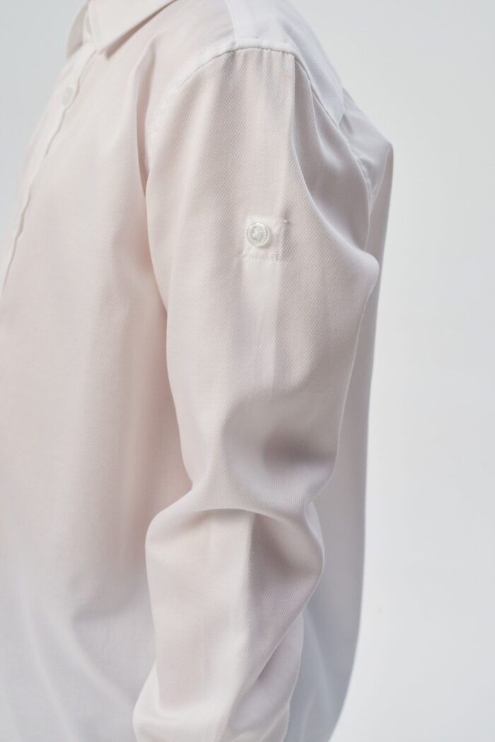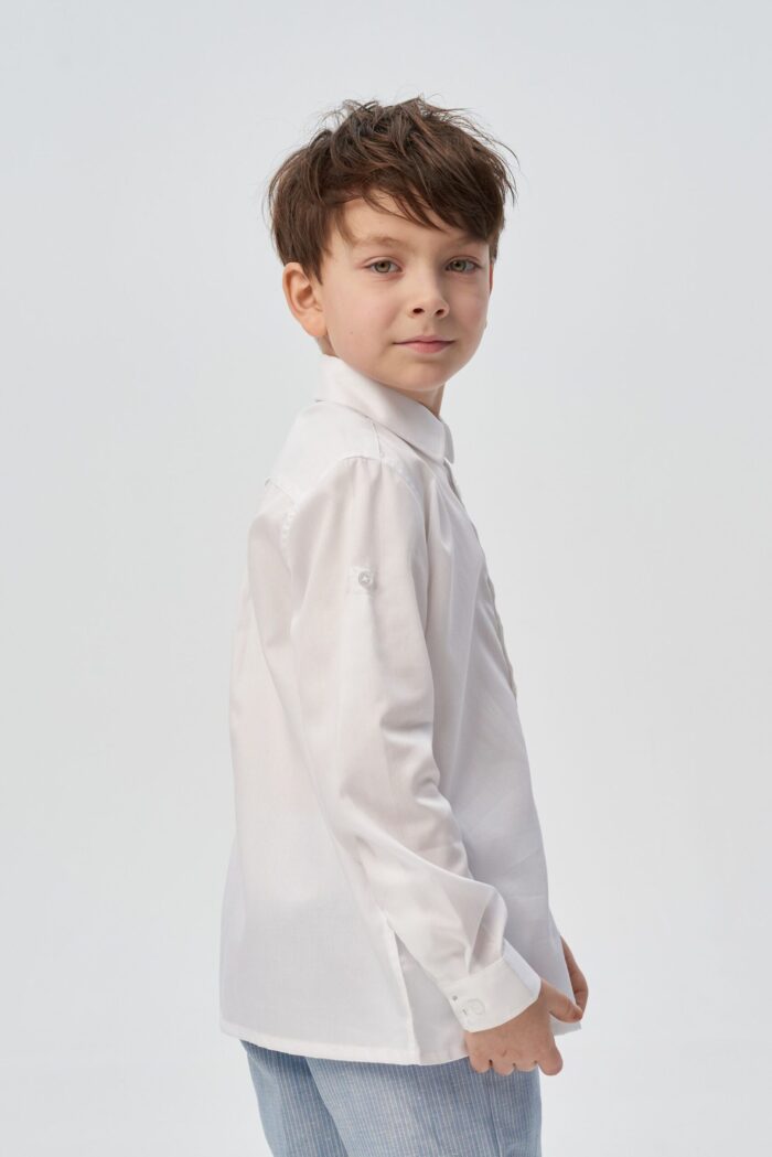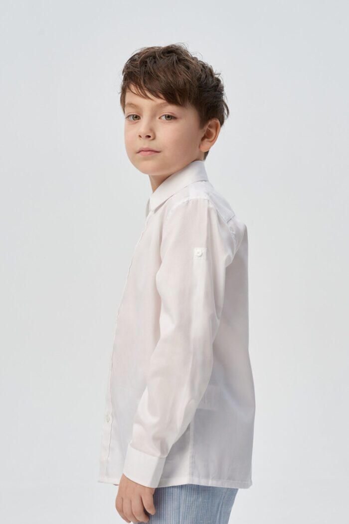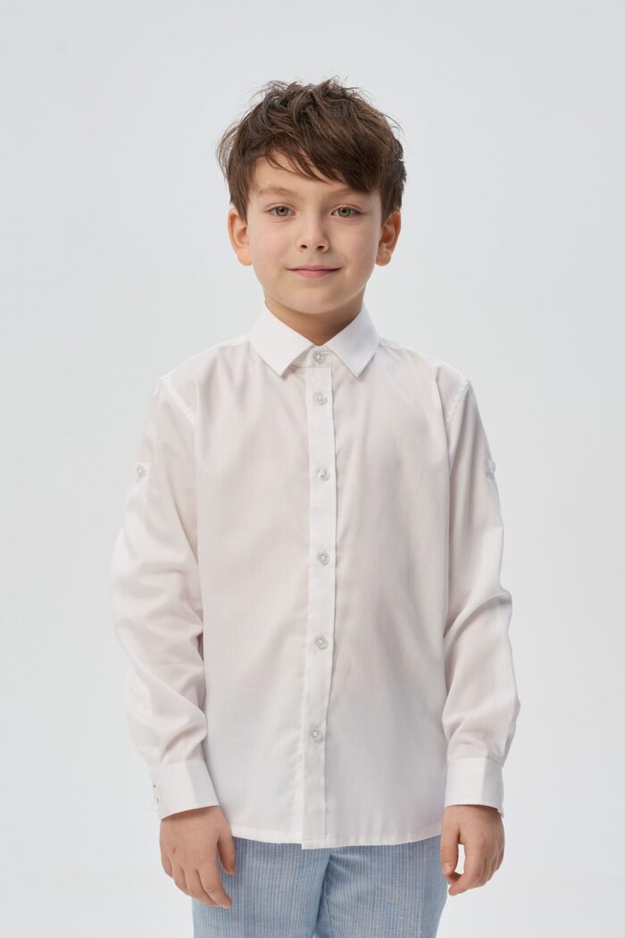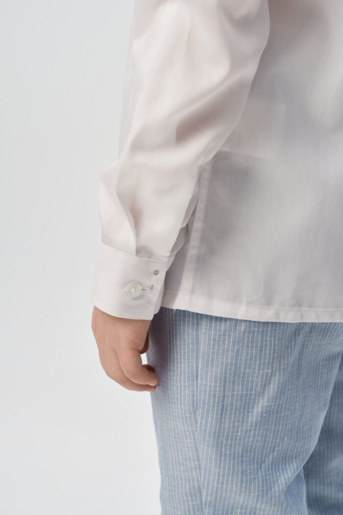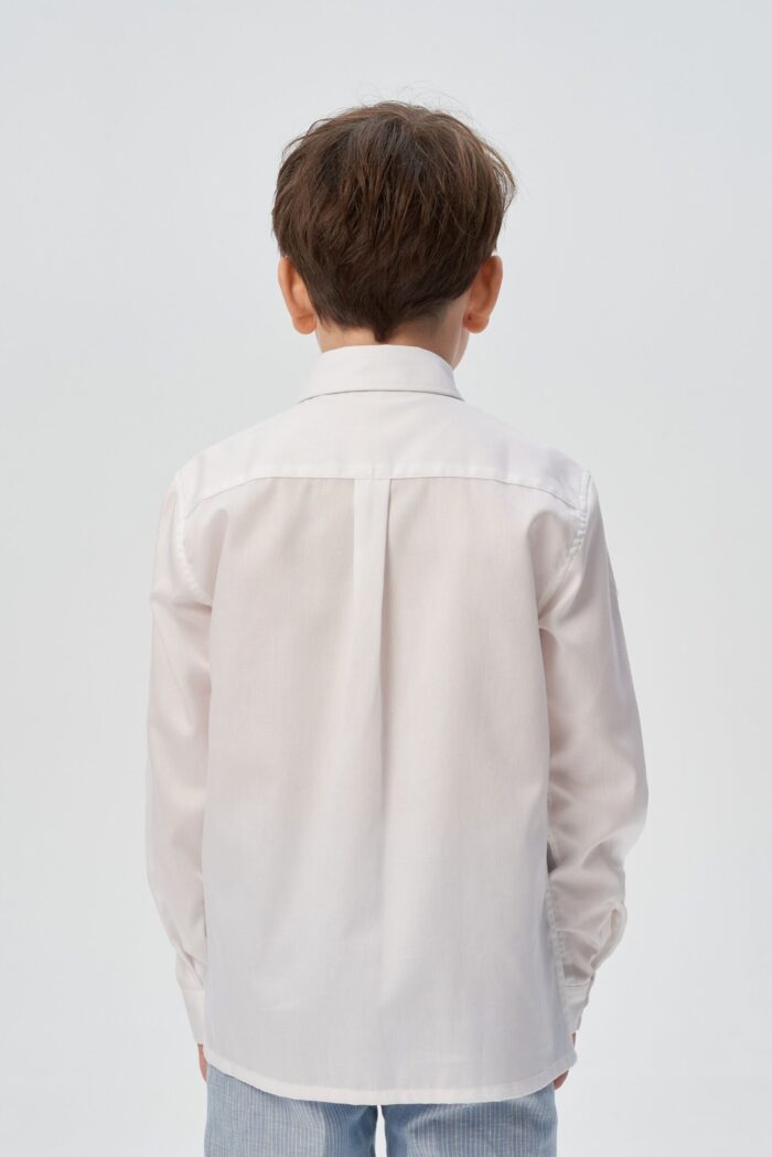 Camisa para niño confeccionada en algodón natural en un versátil color crudo que complementa cualquier armario infantil. Se abrocha con botones para facilitar el cambio.