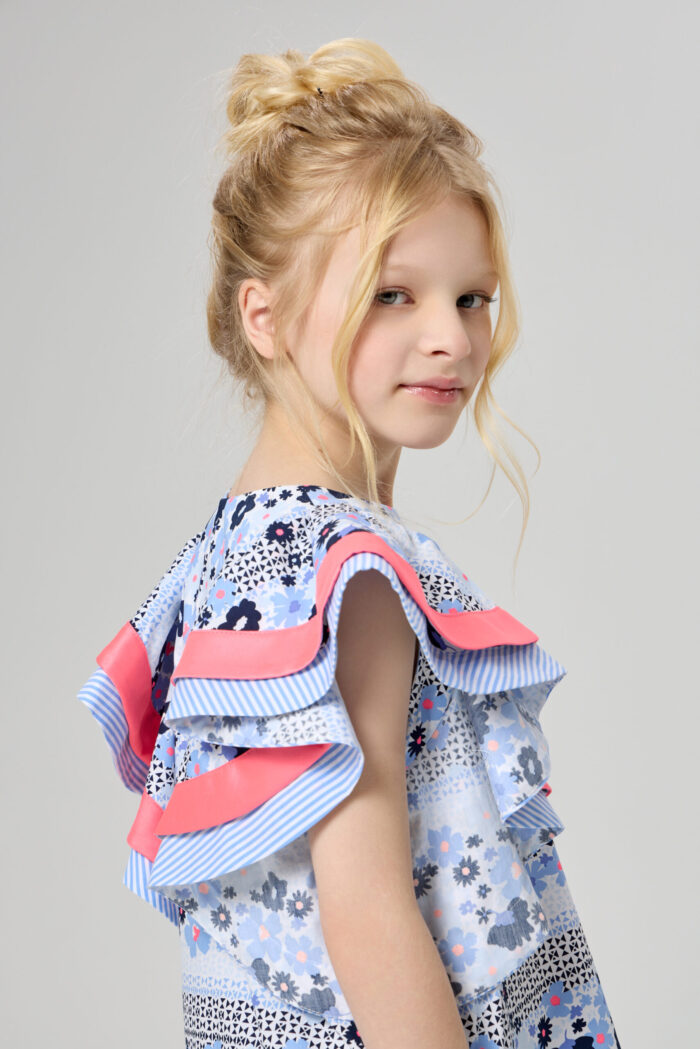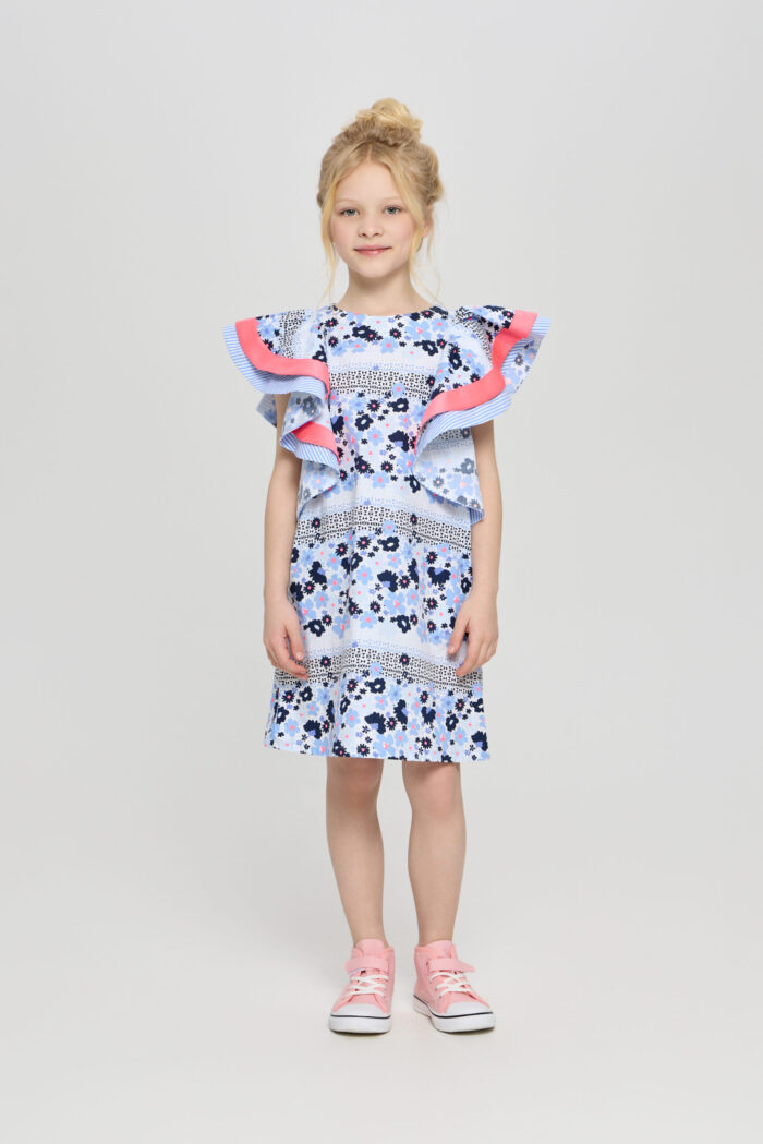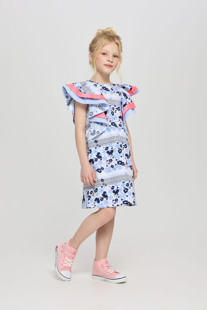 A dress with voluminous sleeves for a girl is an absolute must-have for the summer’25 season. This trend combines comfort and bold design, making the look unforgettable. Accent sleeves are the main highlight of this dress. The voluminous flounces add a special charm to the look, while the vivid print instantly attracts attention. The loose silhouette provides maximum comfort in hot weather. Natural materials make the dress pleasant to the touch and environmentally friendly. They provide good breathability and make you feel comfortable even in the hottest weather.