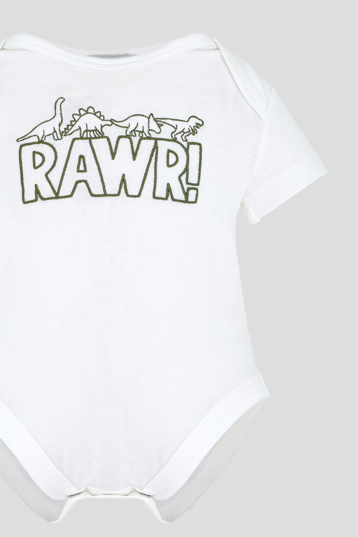 Embroidered baby bodysuit is a stylish and comfortable wardrobe item for baby boys. The body is made of soft and breathable material. Short sleeves make the bodysuit ideal for warm weather. The dinosaur embroidery on the front makes the product even more attractive. Button fastenings on the shoulder seams and between the legs make it easy to change clothes and change nappies.