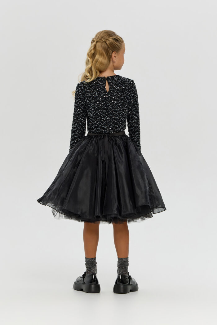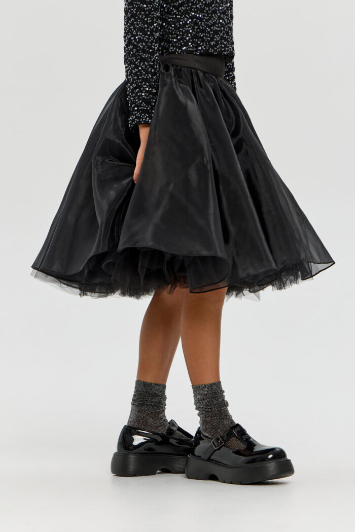 A fluffy black skirt is a striking addition to any girl’s wardrobe. This model is ideal for special occasions such as matinees or birthday parties. The wide elastic waistband ensures a comfortable and secure fit, making it easy to put on and take off. The underskirt creates extra volume, creating a flirty and delicate look. The skirt can be easily combined with various types of tops, whether blouses or T-shirts.