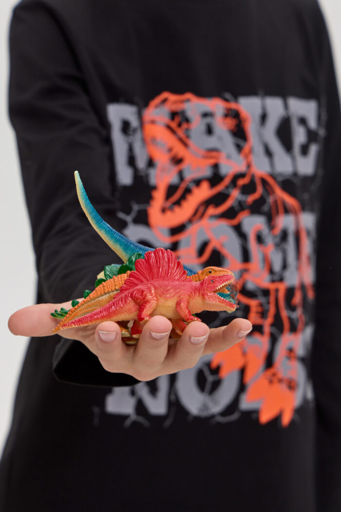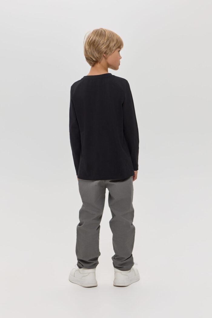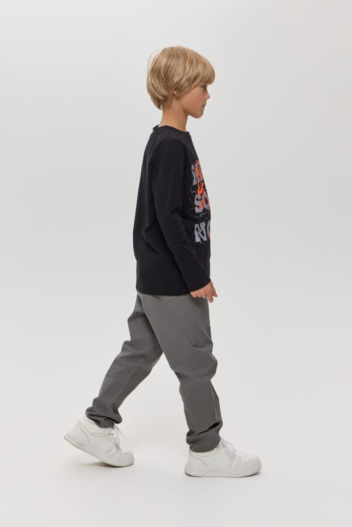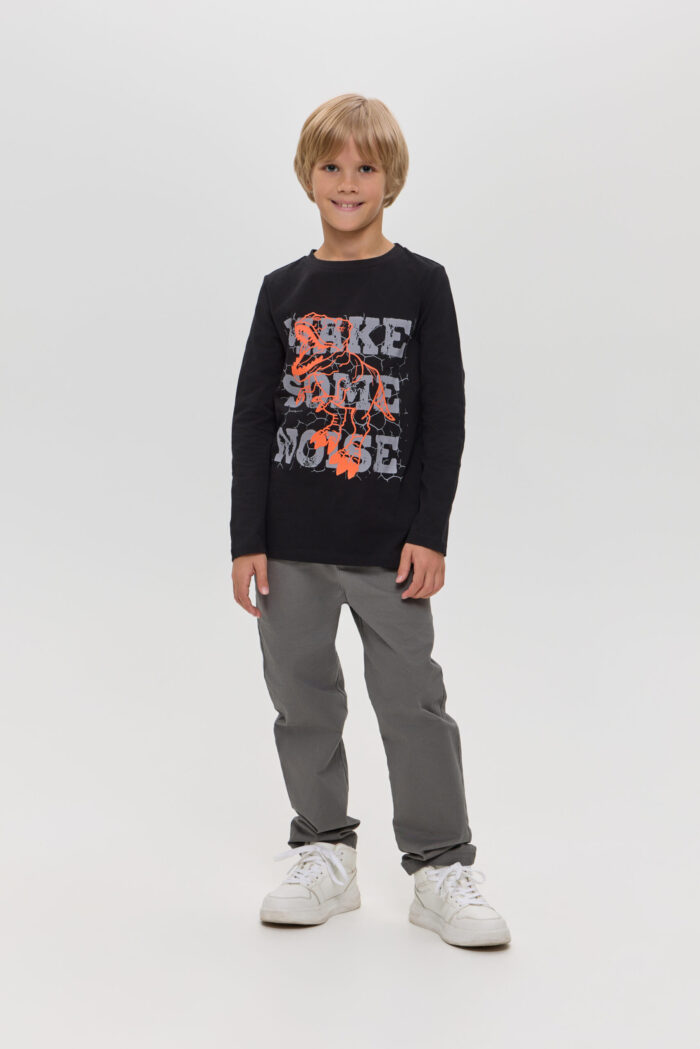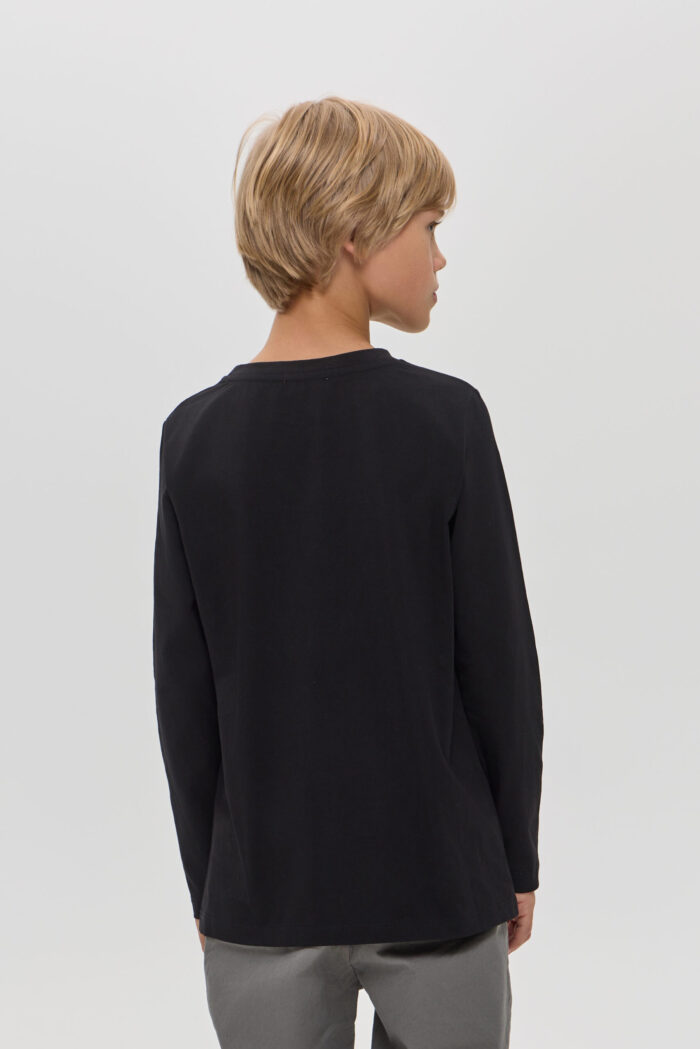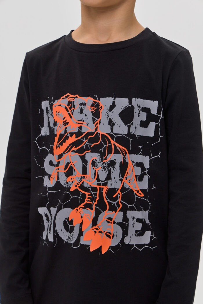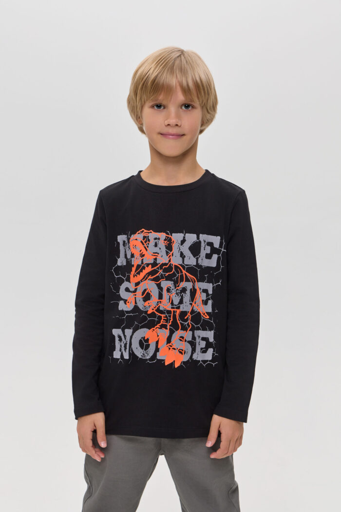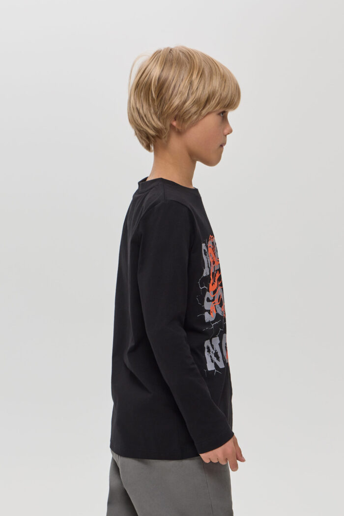 Long Sleeve T-shirt for boys in black colour – a stylish and versatile wardrobe item. It will appeal to both children and their parents. Made of soft and pleasant to the touch material, it is ideal for active games and everyday wear. The colourful print on the front adds individuality and originality. Black colour allows you to easily combine the model with various pants, jeans.