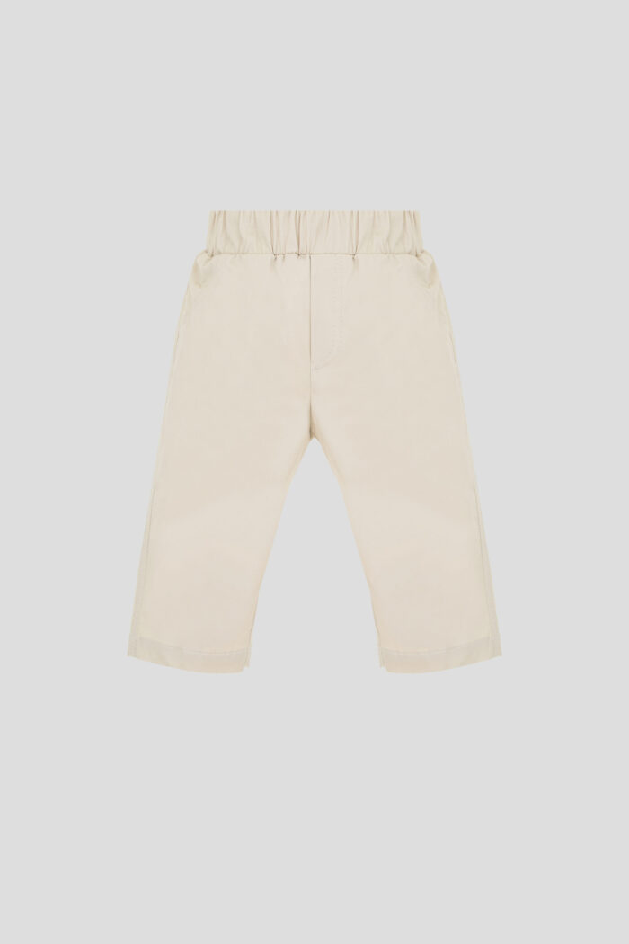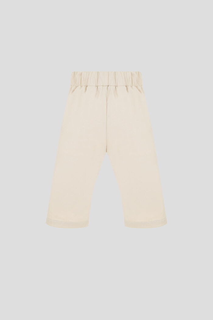 Stylish beige pants will transform your little one’s summer wardrobe. The classic straight fit provides full freedom of movement, allowing you to actively explore the world. Careful tucks at the bottom of the pants give a modern look. The elasticated waistband keeps the pants soft and secure without discomfort. The versatile design and colour of the pants allows you to easily combine them with a variety of wardrobe items.