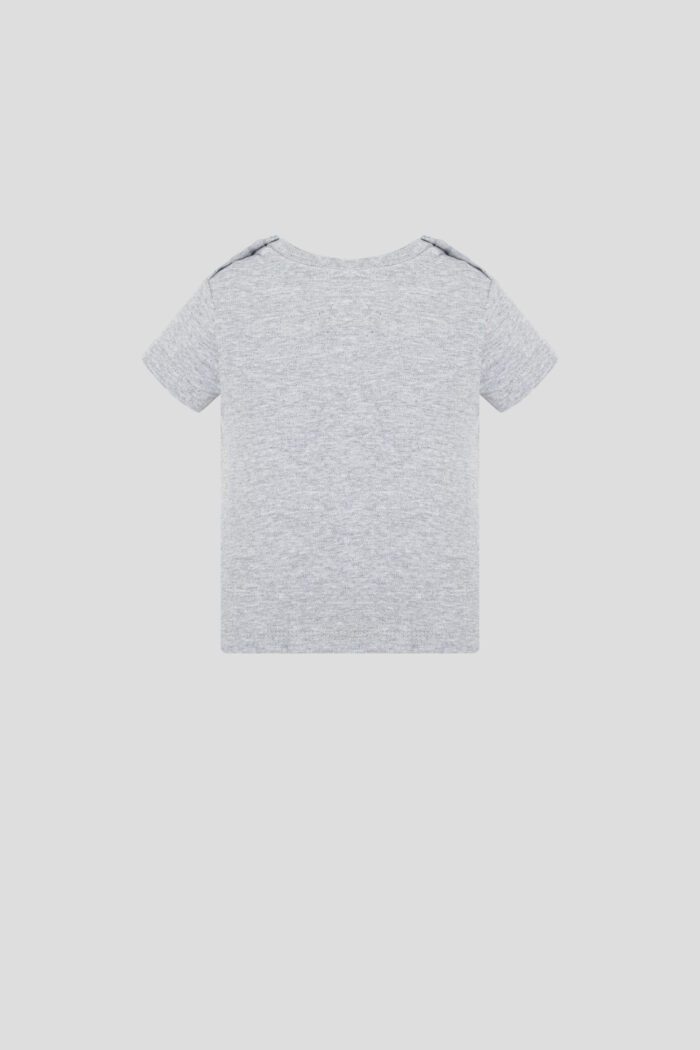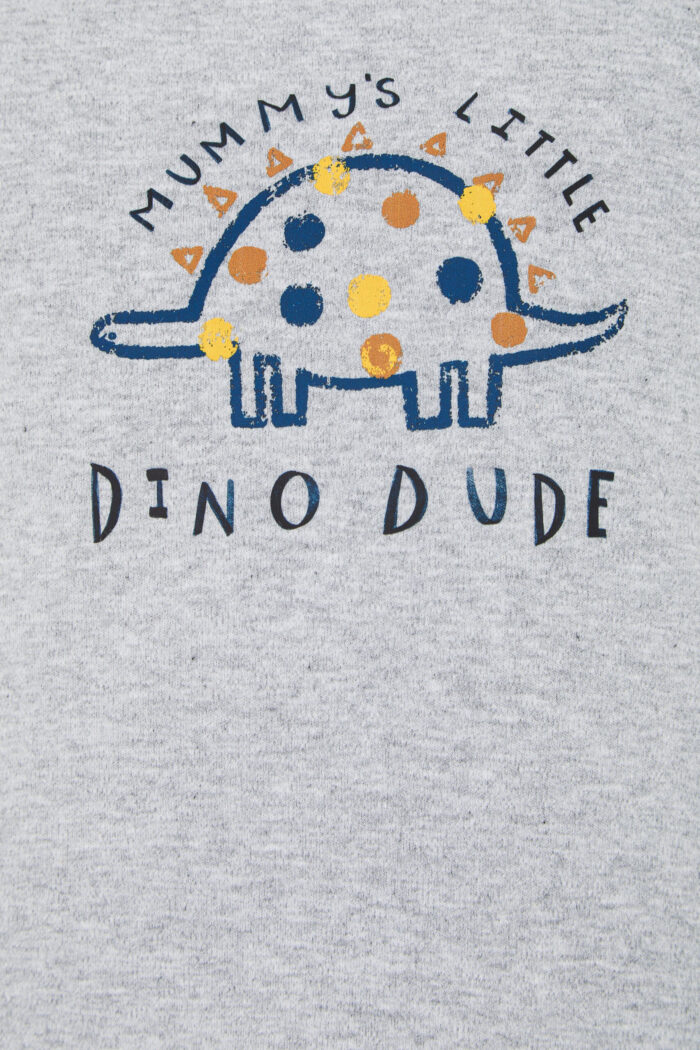 This dinosaur print t-shirt is a great option for everyday use. The soft grey colour gives it a modern and casual look. The loose fit model is made of natural cotton. The button fastening speeds up the process of changing clothes, which is important for babies. This item of clothing is ideal for active plays and walks. Natural cotton allows the skin to breathe, preventing irritation and discomfort. The colourful dinosaur print is sure to please your child. Easy to combine with jeans, shorts or sports pants to create a variety of stylish looks
