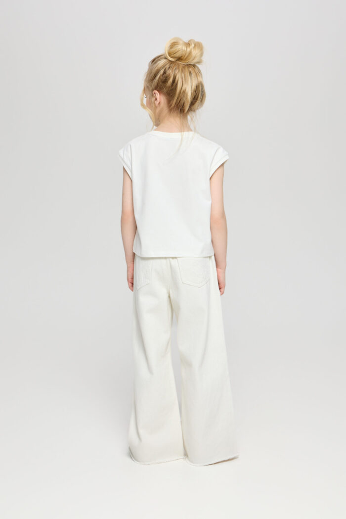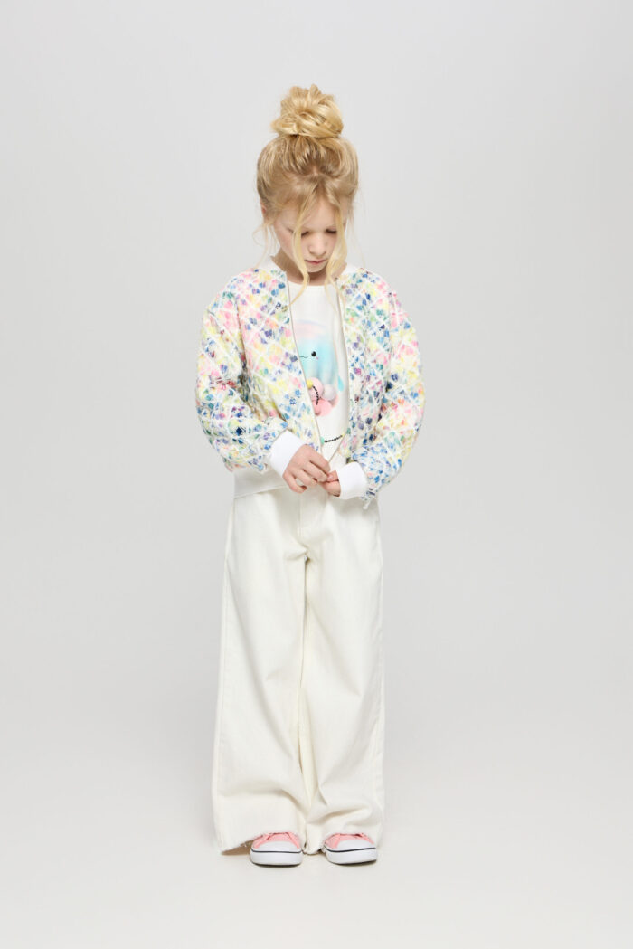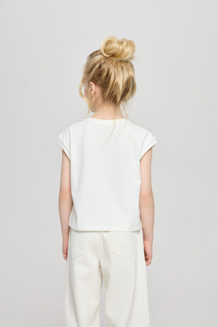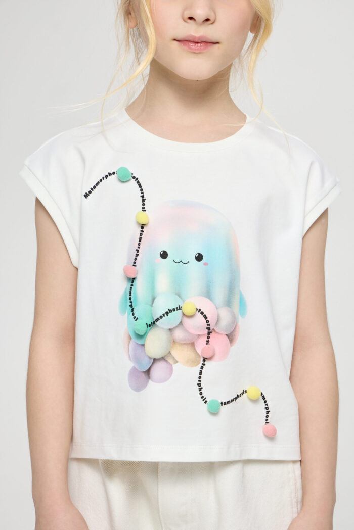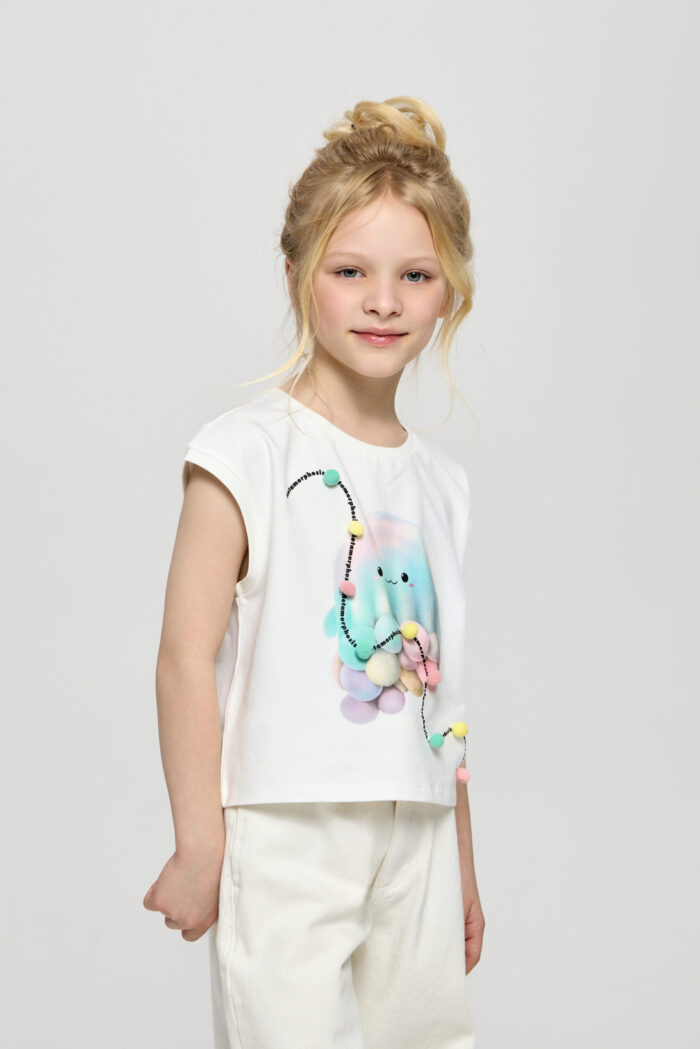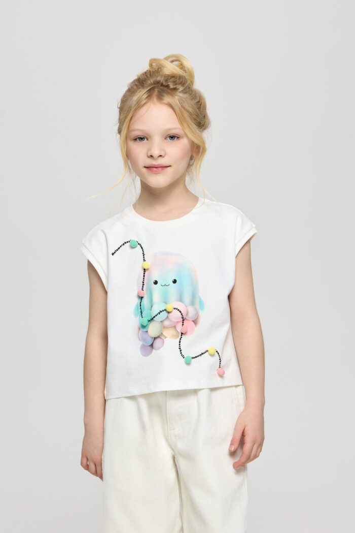 A T-shirt for girls with a vivid and fun print is the perfect choice for creating a stylish look. Loose fit and short sleeves make this T-shirt a great option for warm summer weather. The original designer print adds uniqueness to the model. Thanks to its versatile design, the T-shirt can be easily combined with various wardrobe elements such as jeans, shorts, skirts or leggings. This allows you to create diverse and interesting looks.