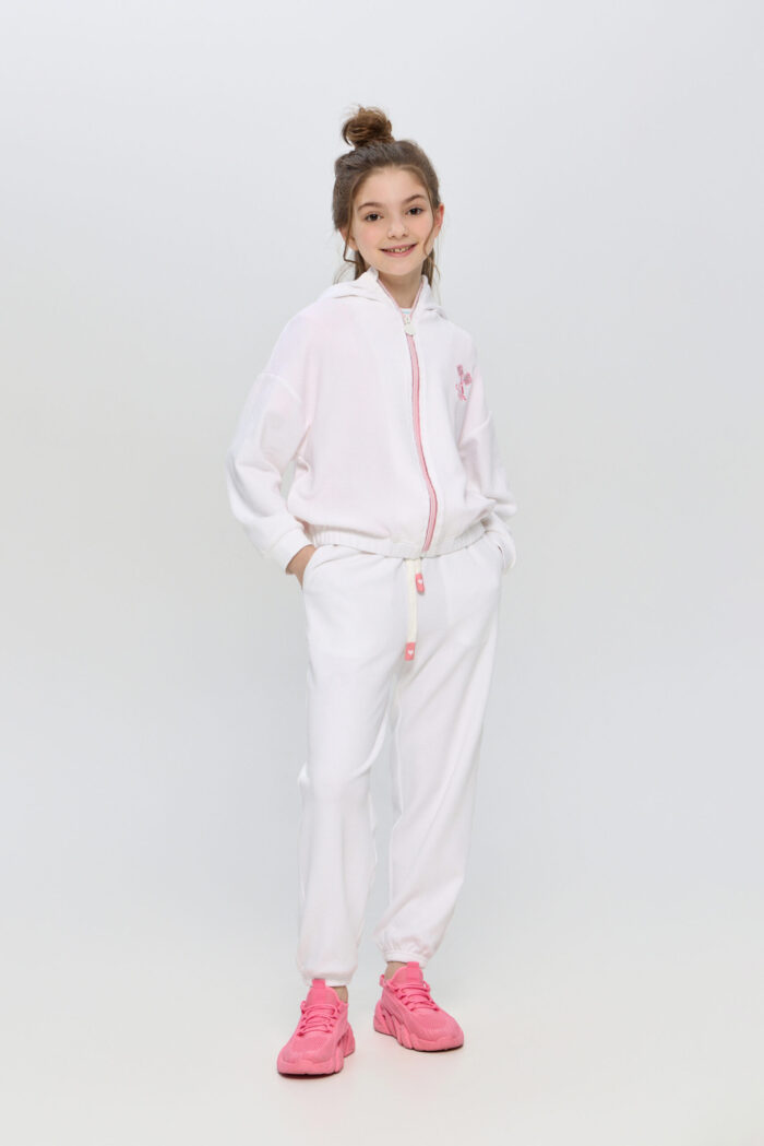 This hoodie for girls is ideal for active lifestyles and everyday use. Made of knitted fabric, it perfectly retains warmth and gives a cosy feeling on cool days. The design of the sweatshirt has been thought out to the last detail. The loose fit allows you to move without restrictions, which is especially important during training or walking. The hood protects from gusts of wind in bad weather. The original design with embroidered tennis rackets on the chest emphasises the sporty character of the product. Contrasting zip adds expressiveness. The elastic band at the cuffs and bottom of the garment ensures an optimal fit.