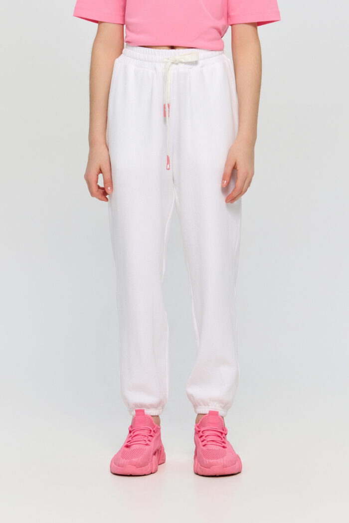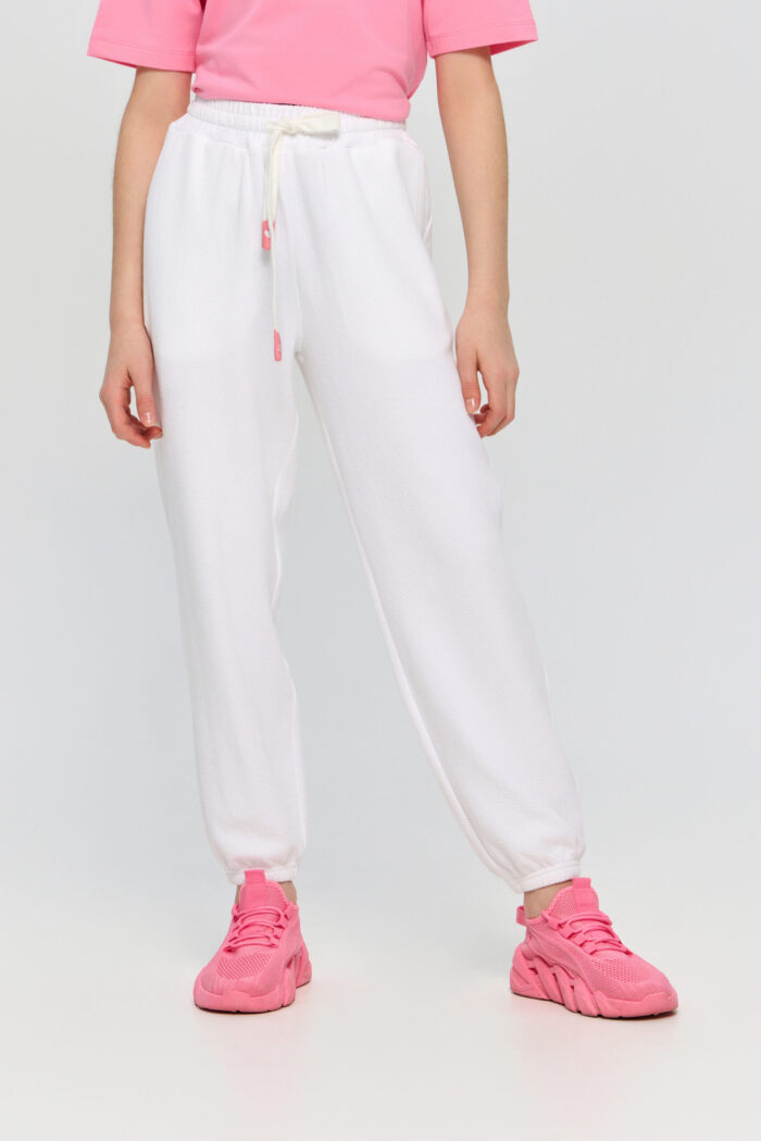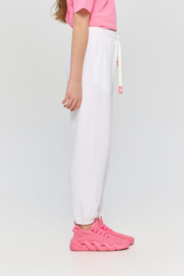 Sporty pants for girls made of lightweight and breathable material. The elasticated waist band ensures a perfect fit. Practical side pockets allow you to carry small items such as phone or keys, making the pants suitable for everyday use. The modern fit of the pants perfectly complements a sporty look