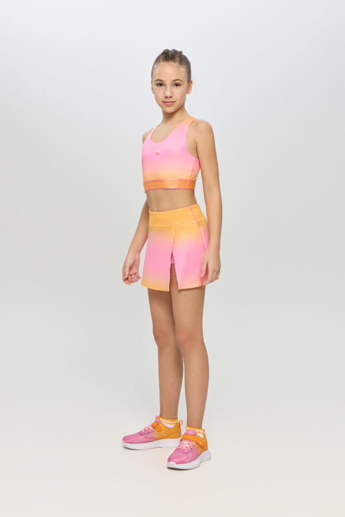 The skirt-shorts for girls is ideal for tennis and other sports. The special design of the model and the elasticated moisture-wicking fabric with CH Dry technology guarantee comfort during training. The skirt-shorts have a wide waistband for the most comfortable fit. The inner shorts have a pocket for storing tennis balls.