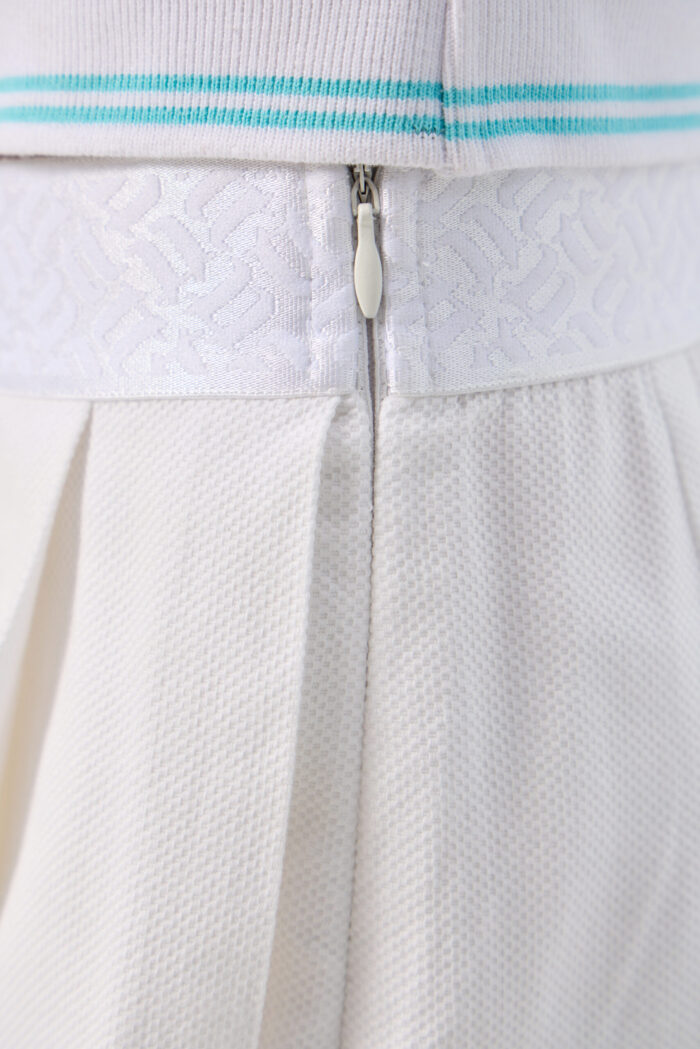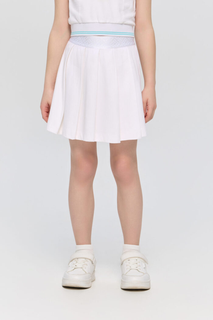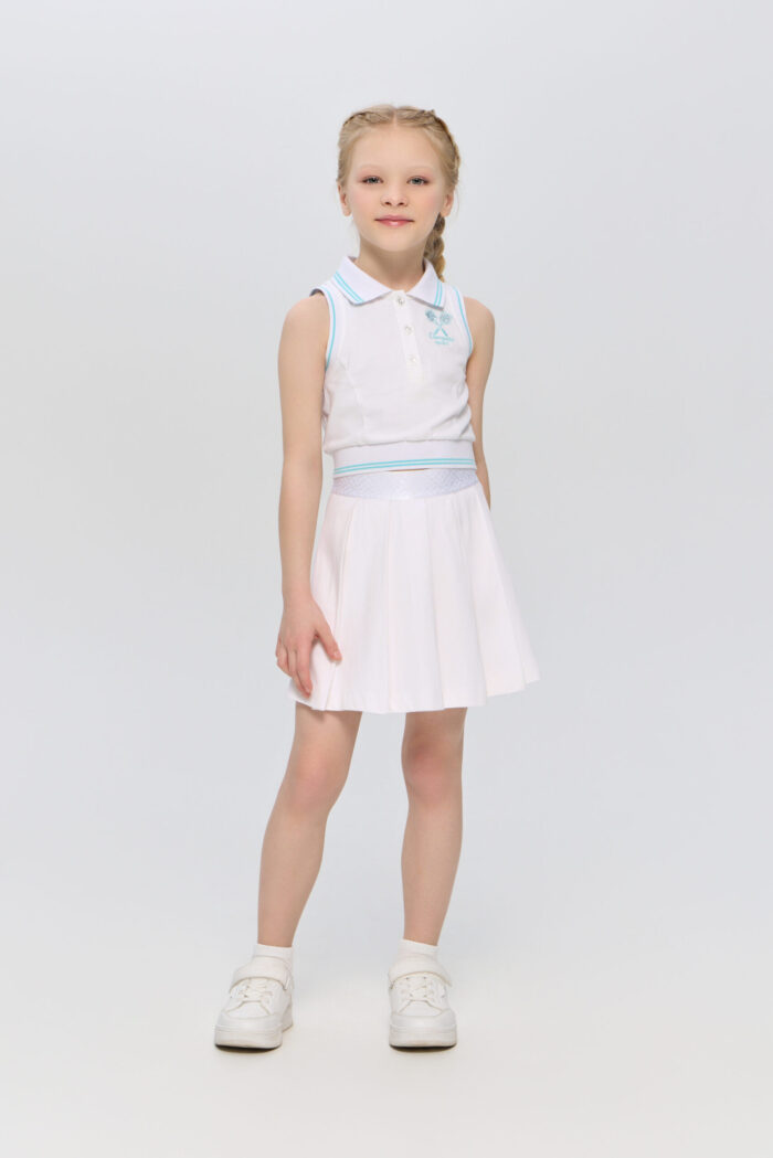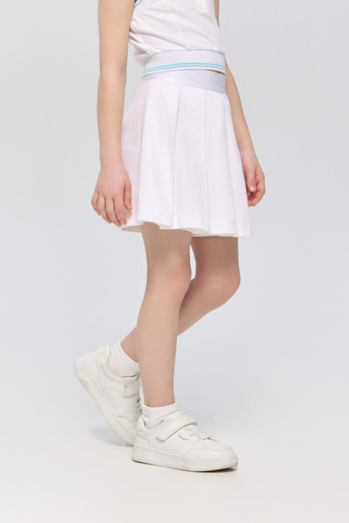 Girls’ pleated skirt-shorts in white is ideal for tennis and other active sports. Thanks to the clever fit, the skirt-shorts does not restrict movement, allowing you to manoeuvre freely on the court. The neat pleats give the skirt an elegant look. The elasticated waistband provides a secure fit. The short length allows you to move easily and perform any sporting elements without restrictions.