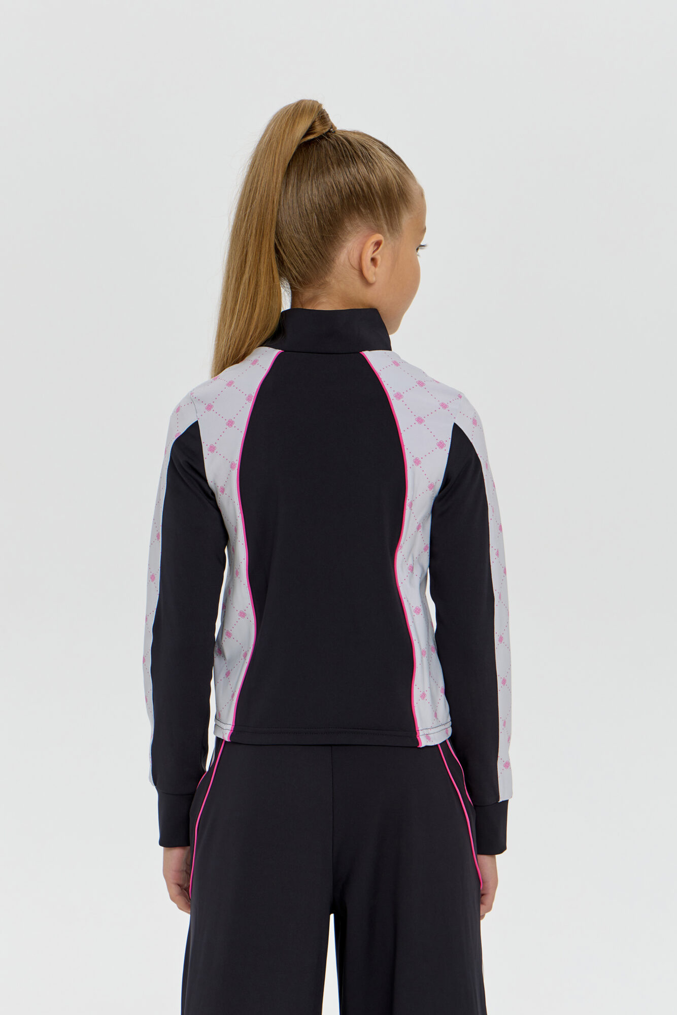 A sweatshirt for girls is a practical solution for both sports and outdoor leisure activities. The black colour is accented with elements that emphasise the sporty style. Thanks to the elastic material with CH Dry technology, moisture is quickly wicked away and breathability is ensured. This technology allows your child to feel comfortable even during active training. The sweatshirt is perfect for dancing, yoga, fitness and team sports. It pairs well with leggings, T-shirts and tops to create a complete sports outfit.