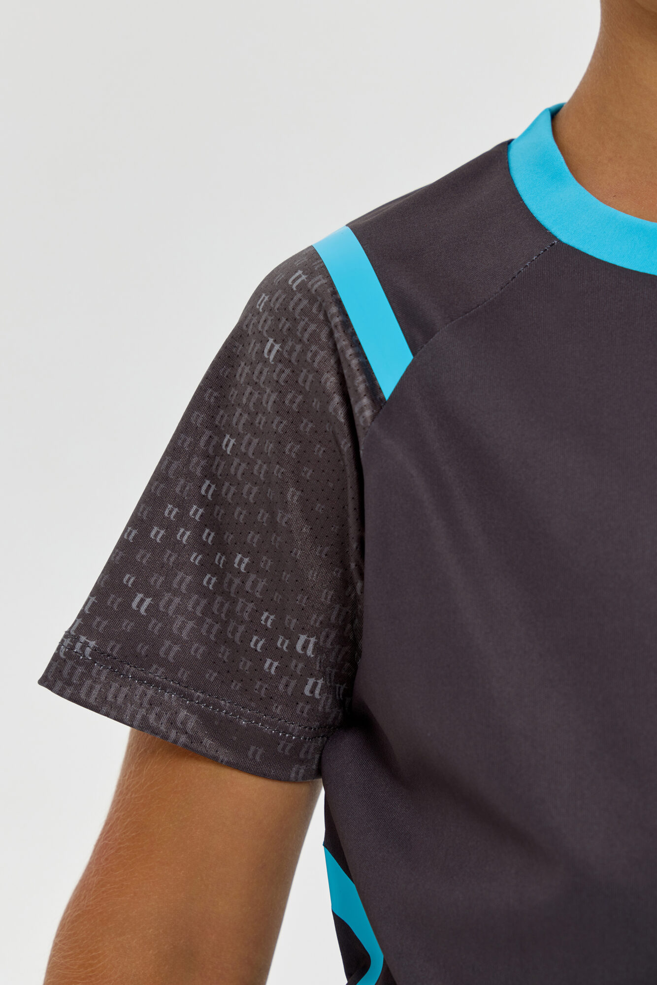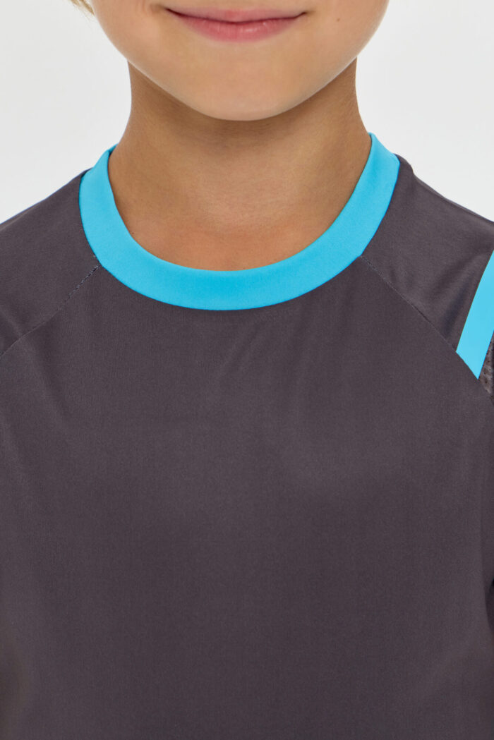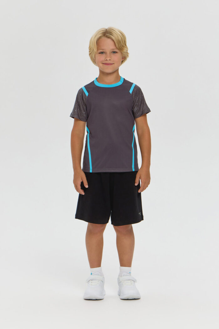 This sports T-shirt for boys is made from a comfortable fabric featuring CH Dry technology, which effectively wicks away moisture and dries quickly. The grey colour and eye-catching print make this model versatile: it will complement both sports and everyday outfits. The T-shirt is ideal for sports activities: the breathable fabric ensures air circulation and keeps you cool even during the most intense workouts. The comfortable cut guarantees freedom of movement and allows your child to wear it for any sport.