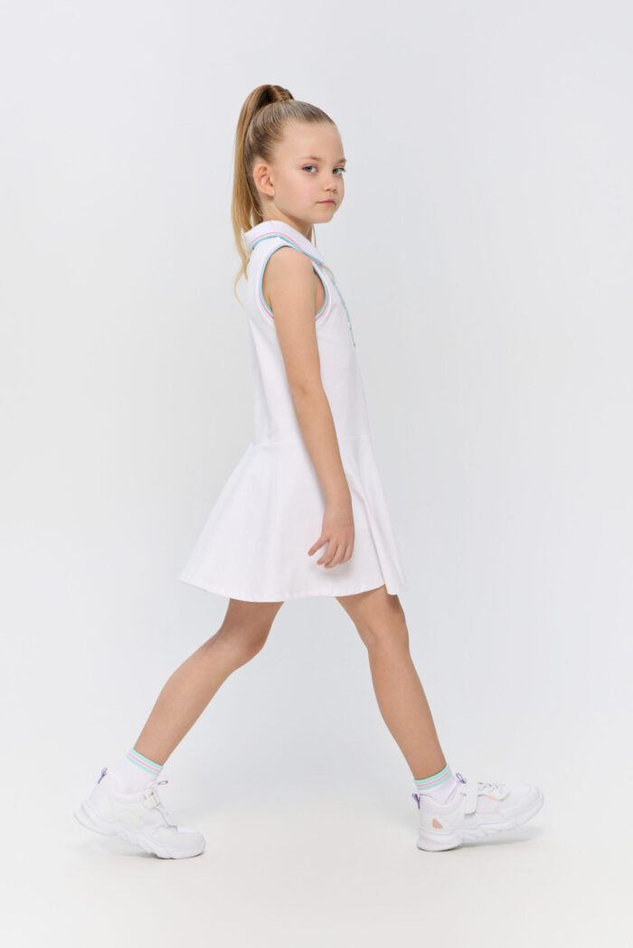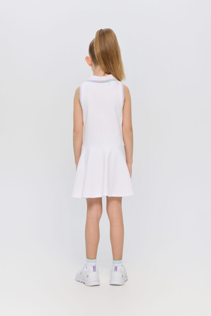 The tennis polo dress is a great choice for young girls. This model is made of premium breathable fabric that provides comfort during active plays both on the court and in the gym. Traditional polo collar with button fastening, low waistline, original details and decorative embroidery give the dress a stylish look.
