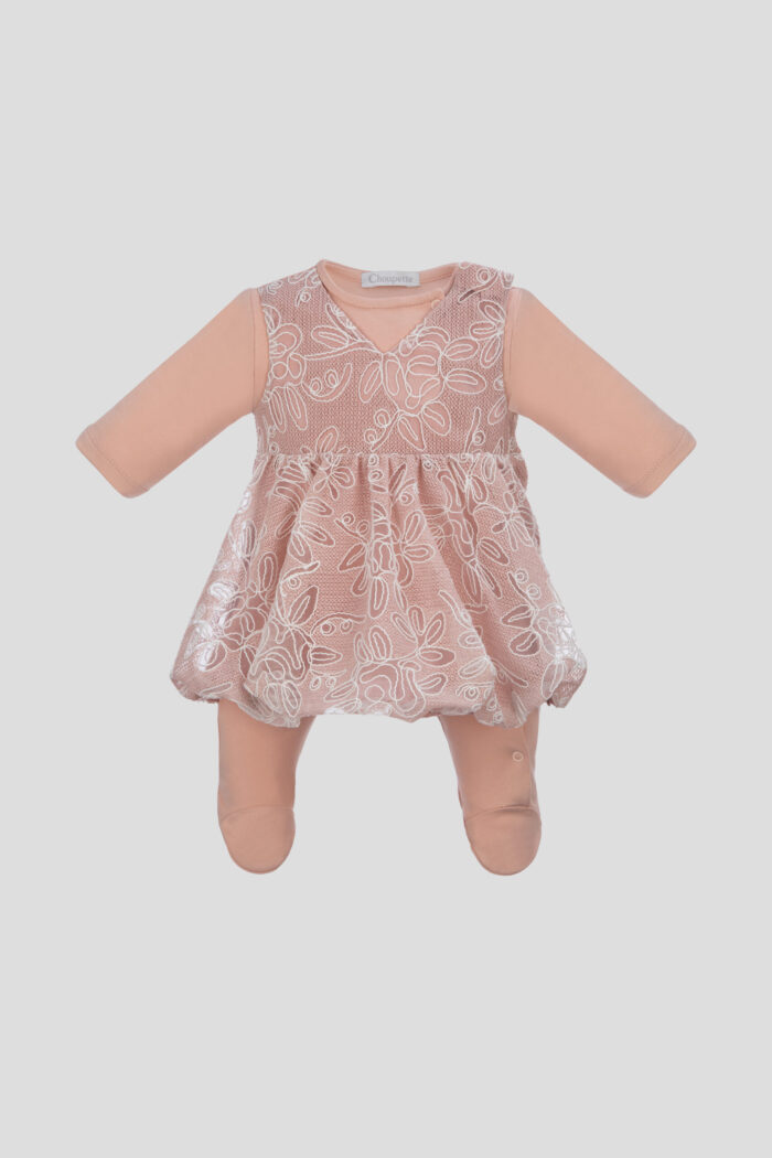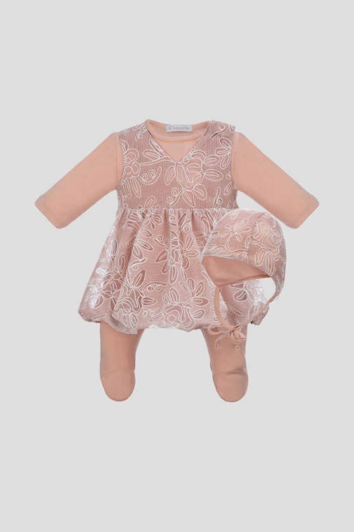 Set With Volumetric Embroidery (Overall Dress and Bonnet)