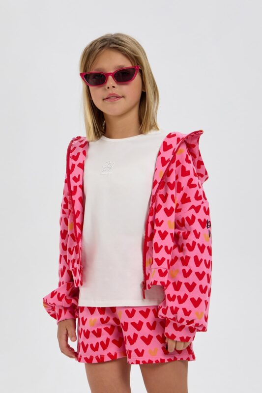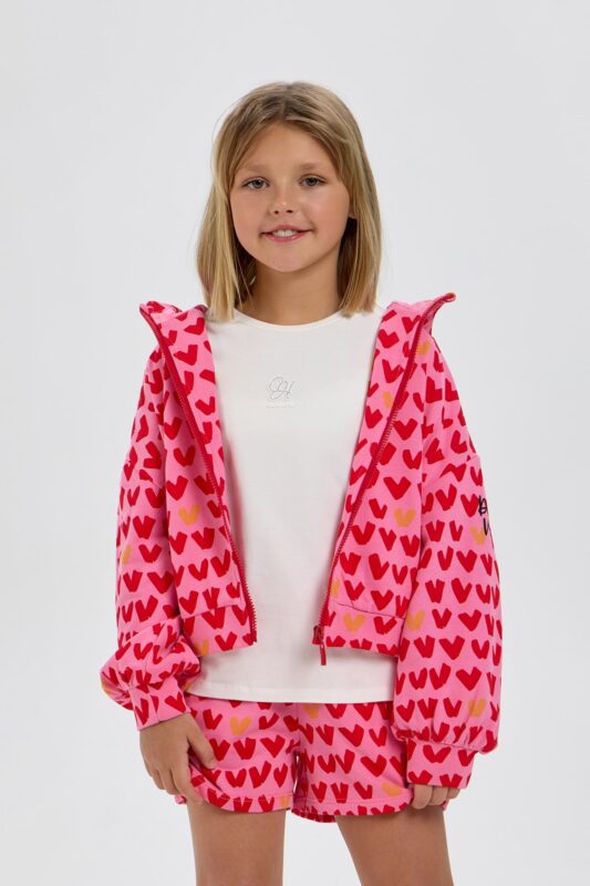 This stylish fuchsia bomber jacket will be a stylish addition to any young fashionista’s wardrobe. The original combination of materials used for the upper (durable polyester and cotton details) gives the garment expressiveness and functionality. The soft cotton lining ensures comfort, while the lightweight insulation keeps you warm in cool weather. The full-length zip makes it easy to put on and take off, and a special placket protects the chin. Side pockets are designed for storing small items such as a phone or keys. Elastic cuffs and waistband ensure a comfortable fit during sports or active outdoor plays. The bomber jacket is perfect for city walks, school classes, sports clubs, competitions, and as a fashionable outerwear item.