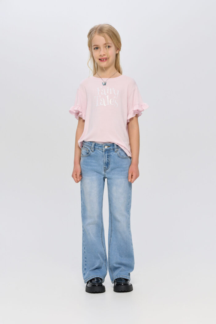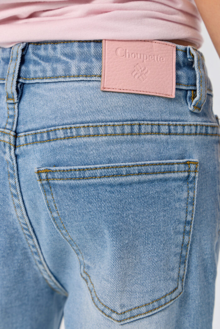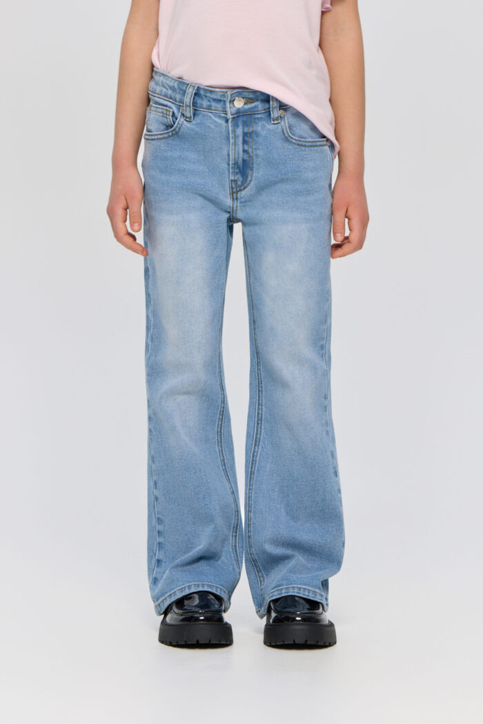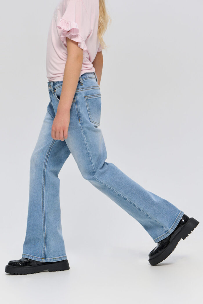 Clash Jeans are a stylish and fashionable element of children’s wardrobe. They are made of high-quality denim of light blue colour. The design is decorated with decorative scuffs. Classic fit with expansion to the bottom makes the jeans comfortable. It fits perfectly thanks to the zip and button fastening and the adjustable waistband. The denim fabric has good durability and wear resistance, making the model ideal for active girls.