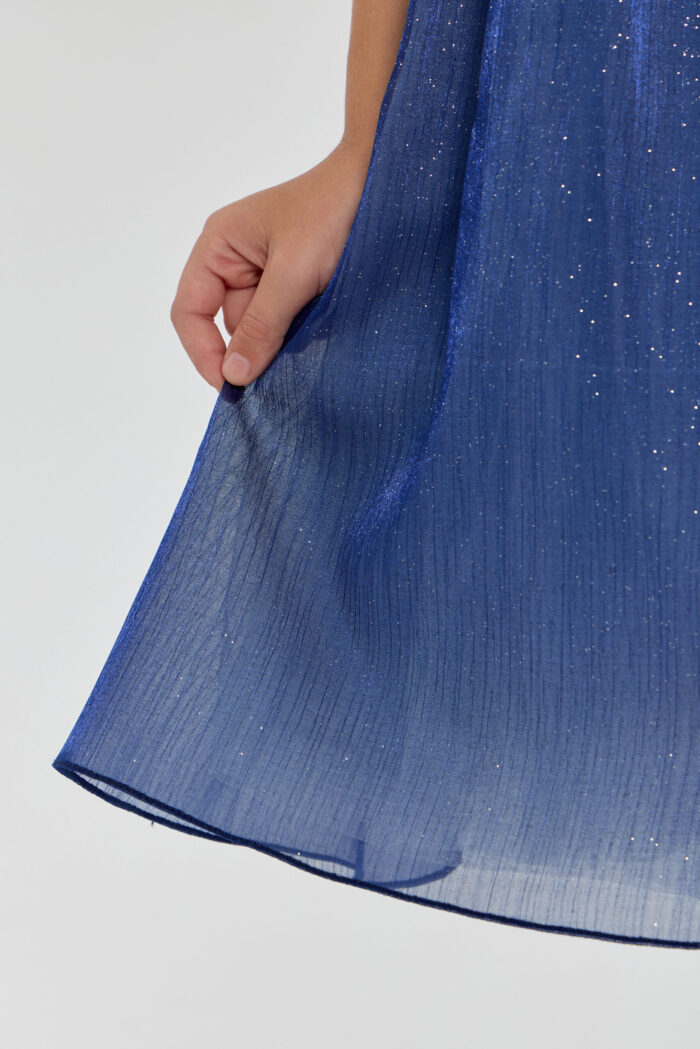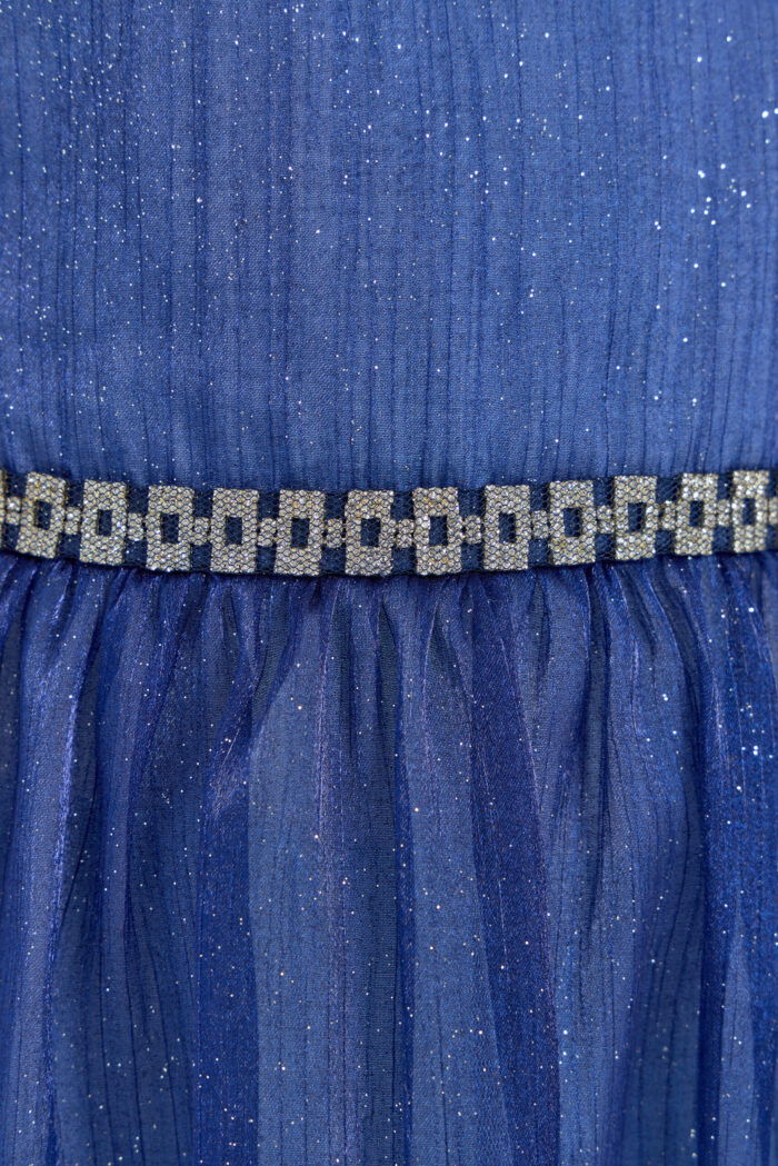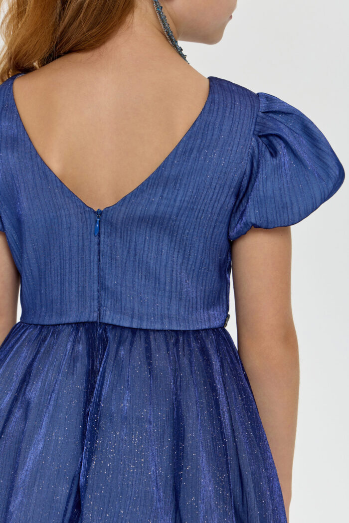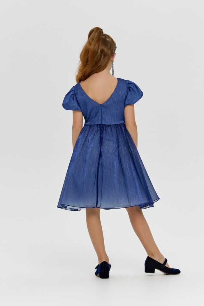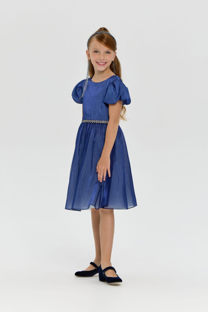 This elegant blue dress for girls will be a wonderful addition to any important event or celebration. Its fit creates a feeling of lightness and grace, allowing your daughter to feel like a fairy-tale heroine. Short puff sleeves add unique charm and give the outfit a special look. The voluminous skirt creates an effect of airiness and magic. An elegant belt decorated with rhinestones perfectly complements the look, emphasising the waist. However, the most mesmerising element of this dress is the sparkling sequins on the fabric. They add sparkle and shimmer, creating a festive mood.