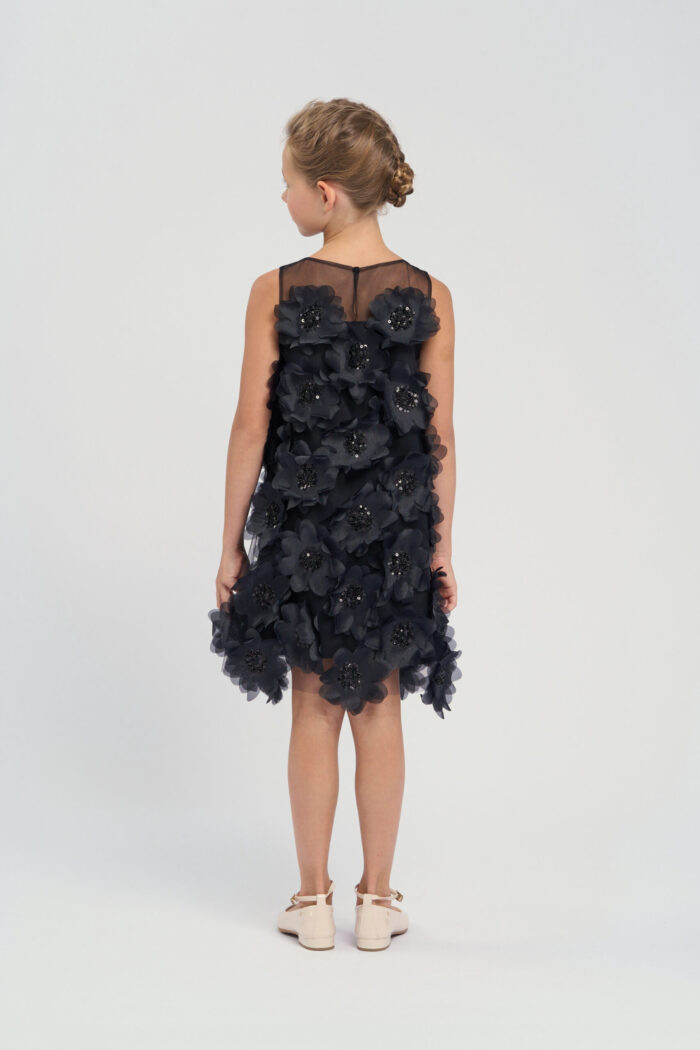 The dress for a girl with voluminous flowers is a bright and stylish wardrobe item. It’s perfect for special occasions and holidays. The main fabric of the dress is made of light and airy material, which gives the outfit a romantic look. The cotton lining provides comfort and allows the skin to breathe. The voluminous flowers located throughout the dress add expressiveness to the model. Mesh is used on the shoulders of the dress, which gives the outfit an evening mood. This model will become a real decoration of any children’s wardrobe.
