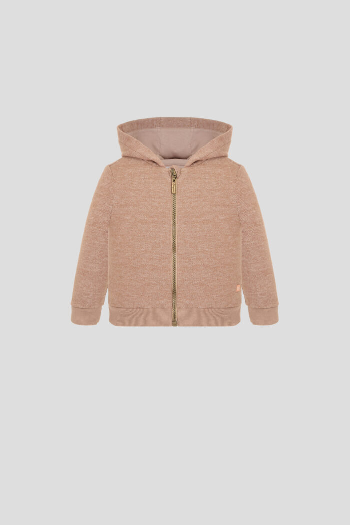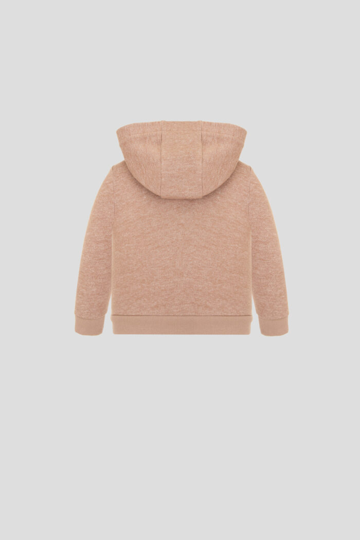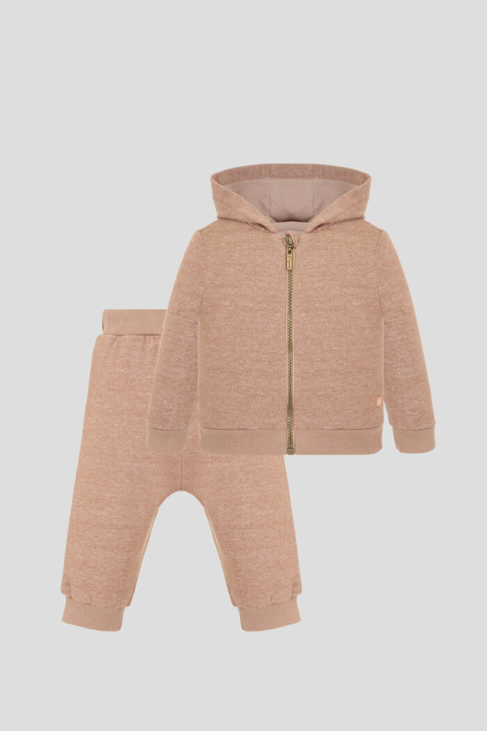 This trendy beige knitted suit for a little boy is the perfect addition to a child’s basic wardrobe. Bomber with a cosy hood that protects the baby’s head from the wind. It fastens with a zip. The pants with an elasticated waistband features a comfortable fit. The model has knitted cuffs that make the fit even more comfortable. The linen and cotton blend fabric provides an ideal microclimate – the child’s body breathes and does not overheat.