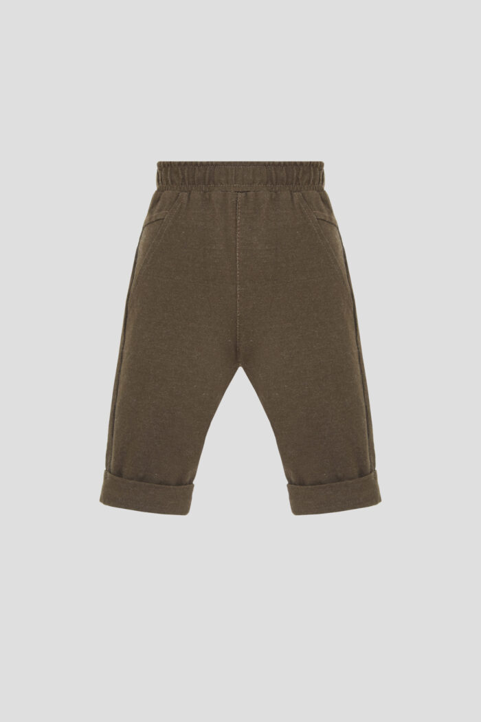 Khaki-coloured knitted pants will be an ideal addition to children’s daily wardrobe. The model has a comfortable straight silhouette. The elasticated waistband does not press on the body, which is important for the baby’s comfort. Cotton clothing has excellent thermo-regulating properties, it helps to maintain optimal body temperature in different conditions.