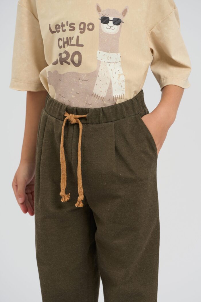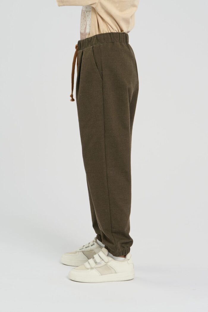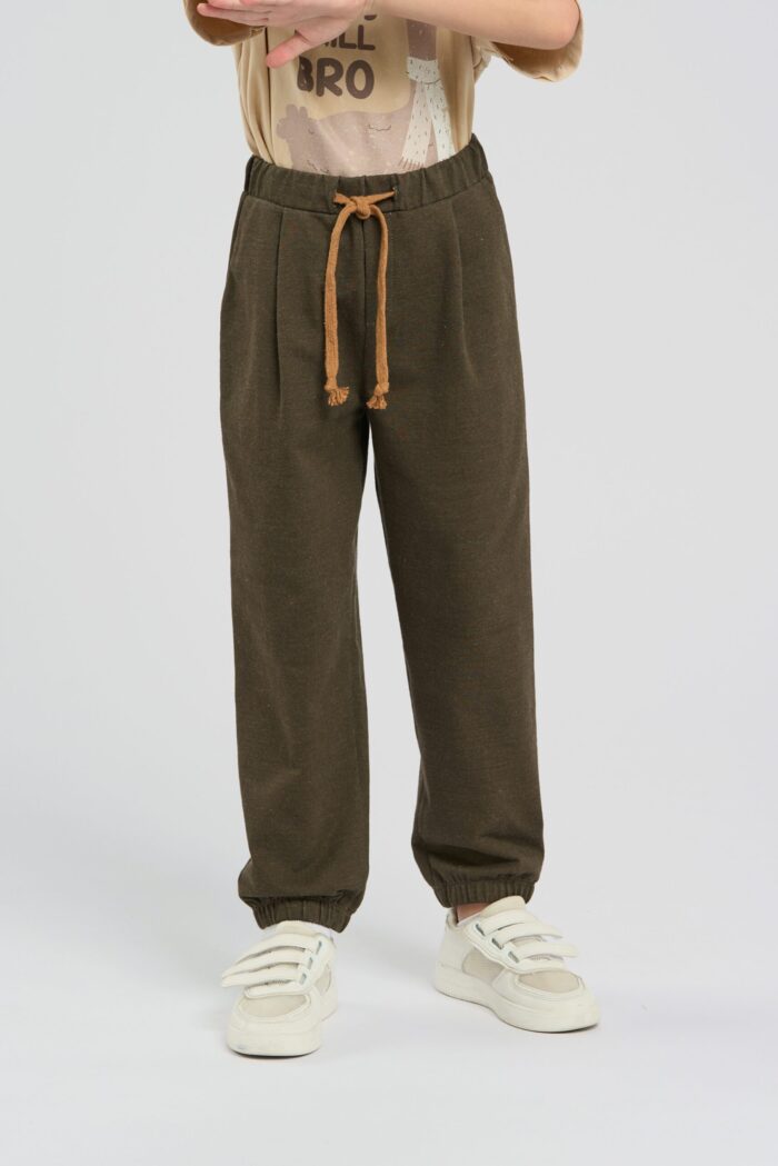 Fashionable knitted trousers for boys are made in trendy khaki colour and have a laconic design. The model harmoniously combines with any bottom. The Elasticated waistband of casual design. Slash pockets on the sides. Natural cotton keeps its shape well after washing without losing its appearance.