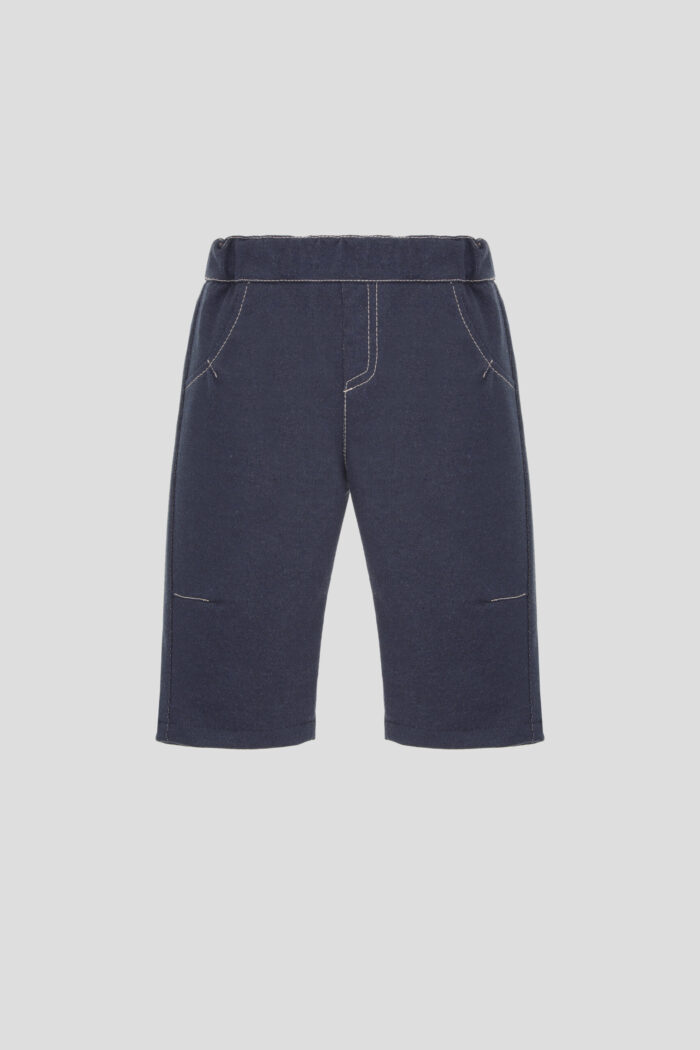 Fashionable pants made of knit fabric with imitation denim will perfectly complement the baby’s look. The model of comfortable straight silhouette delicately fits the body. Decorative contrast stitching harmoniously adorns the design. There are two patch pockets at the back. The elasticated waistband does not press on the stomach, which is important for the child’s peace of mind. Fabric with a predominantly cotton content indicates high hygienic properties.