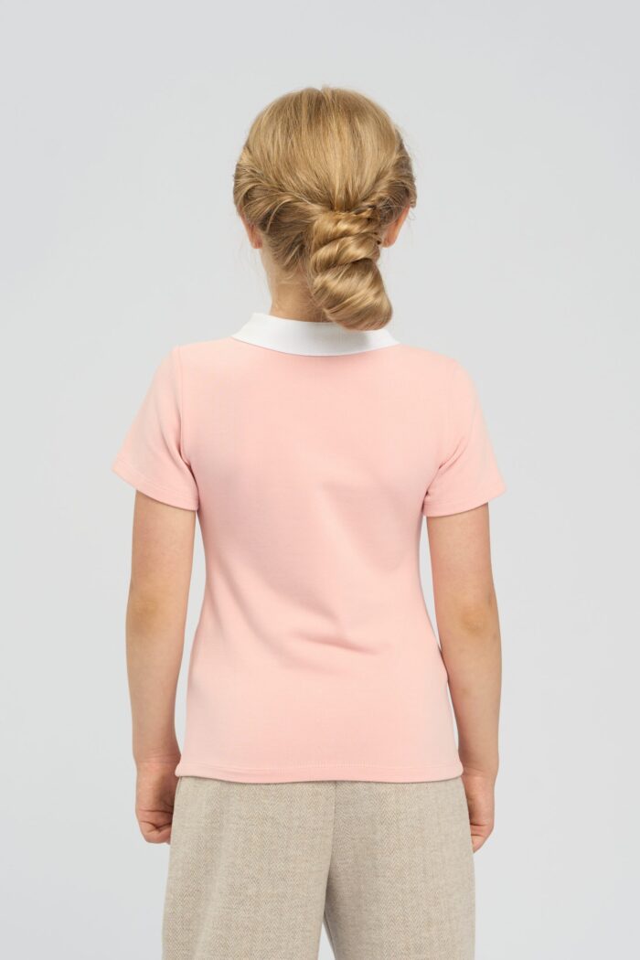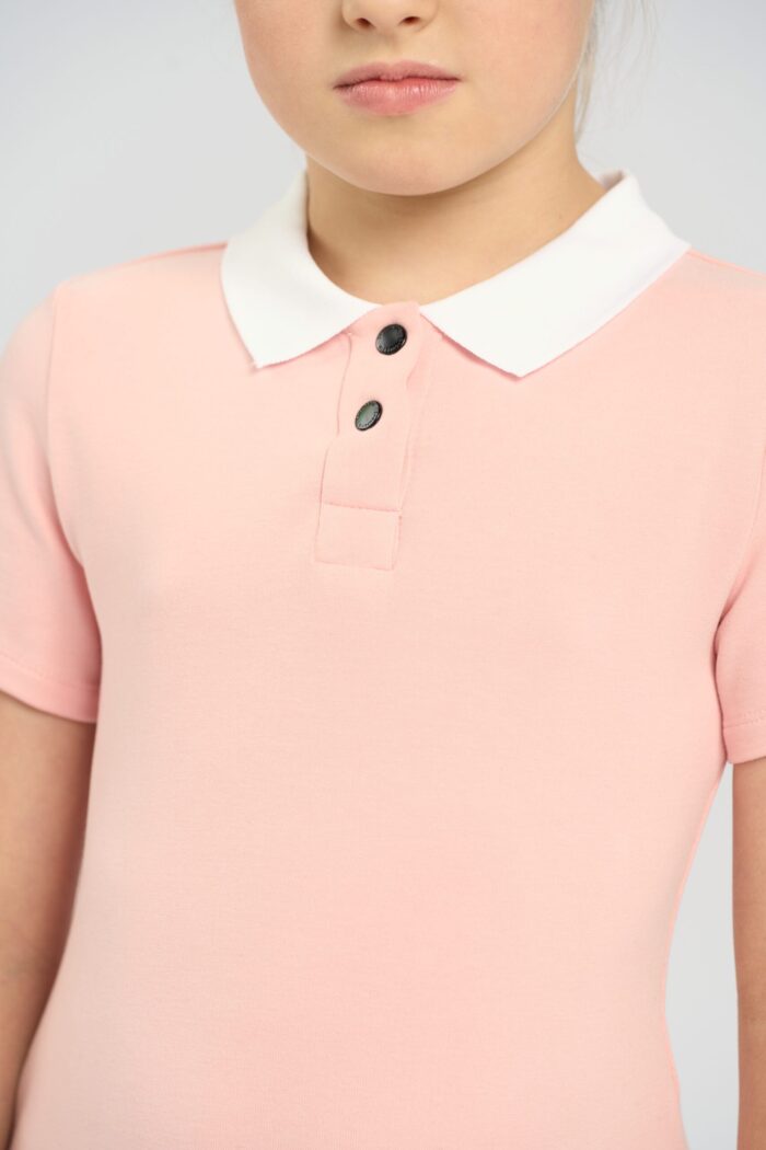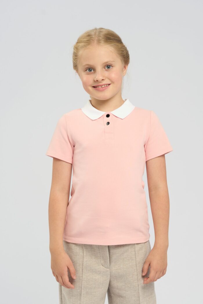 The jumper for a girl in a delicate pink shade. The classic polo collar in white colour adds contrast and elegance to the model. There are neat buttons under the neckline. Soft to the touch knit fabric provides comfort and convenience in everyday wear. Straight silhouette of the jumper makes it versatile in combination with any clothes.