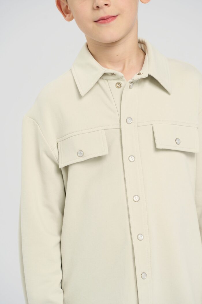 This stone grey knitted shirt is a stylish and versatile element of a boy’s wardrobe. It is made of a soft and pleasant to the touch material for comfortable wear. The button fastening and collar give the shirt a modern and casual look. The dropped shoulder line adds a relaxed silhouette. The shirt is ideal for creating casual or more dressy looks. The stone grey colour combines perfectly with other shades. The shirt is easy to match with pants or jeans.