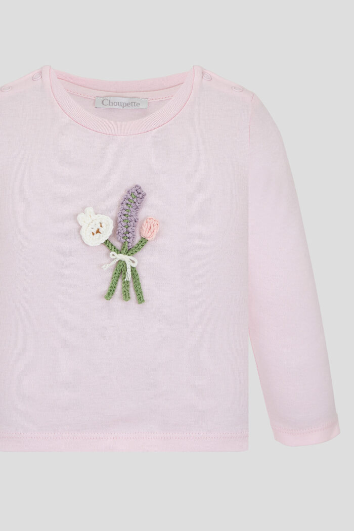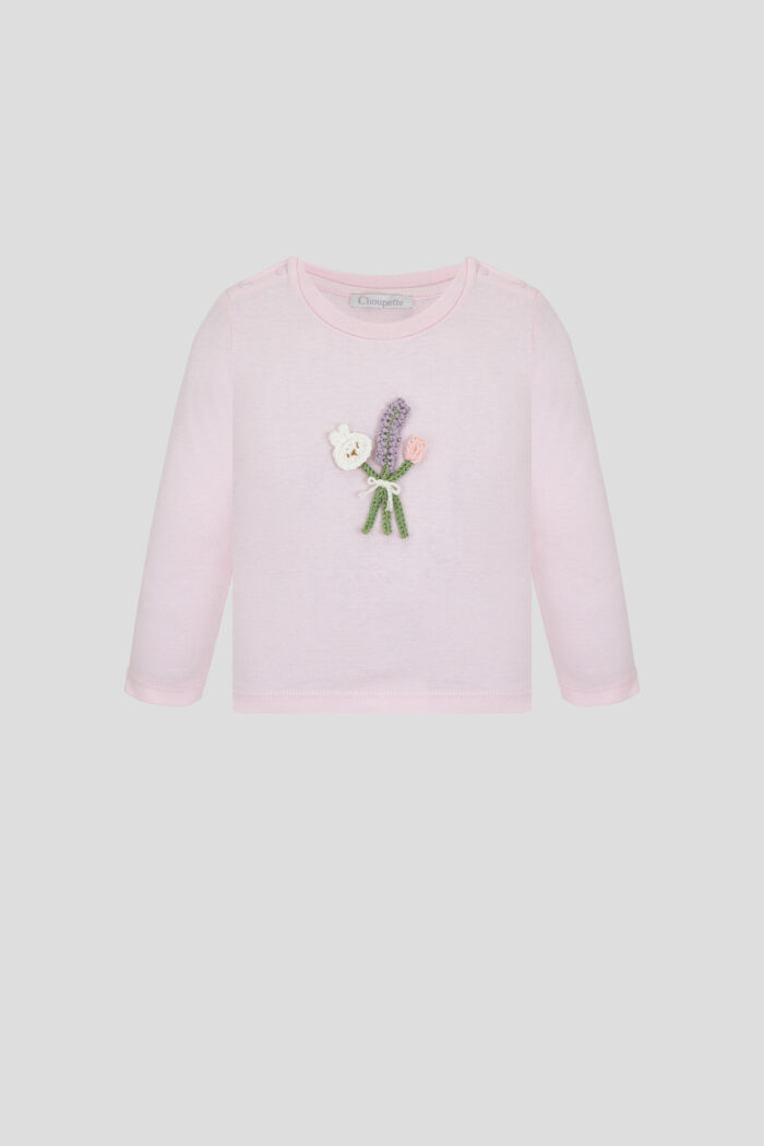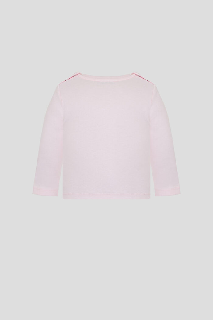 Charming long sleeve T-shirt in soft pink colour will be a great addition to your spring wardrobe. The comfortable fit and long sleeves ensure comfort in all weathers, while the stylish decor adds colour to the look. Buttons on the shoulder pads make changing clothes quick and easy, which is especially important for active kids. The long sleeve T-shirt is made of high quality natural cotton.