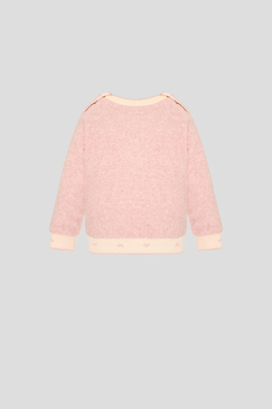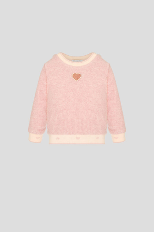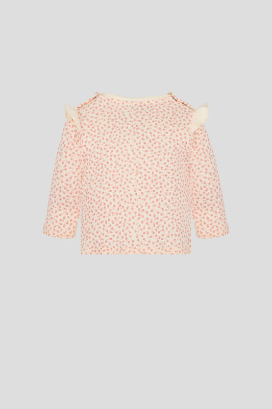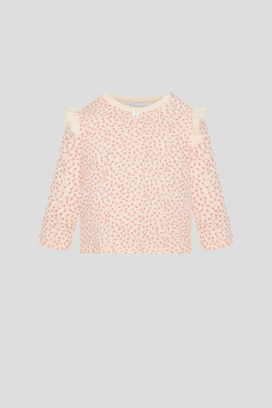 Stylish dress made of textured micro velvet is made in the current shade of ecru. The model of comfortable loose silhouette with embroidery on the chest. Sleeves with pleats and ruffles give the design a special charm. Under the round neckline there is an elegant patch in the form of a flower, which imitates an elegant pendant. The hypoallergenic cotton-based material is suitable for babies’ sensitive skin.