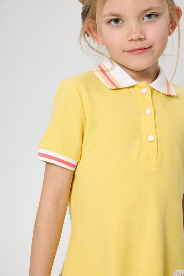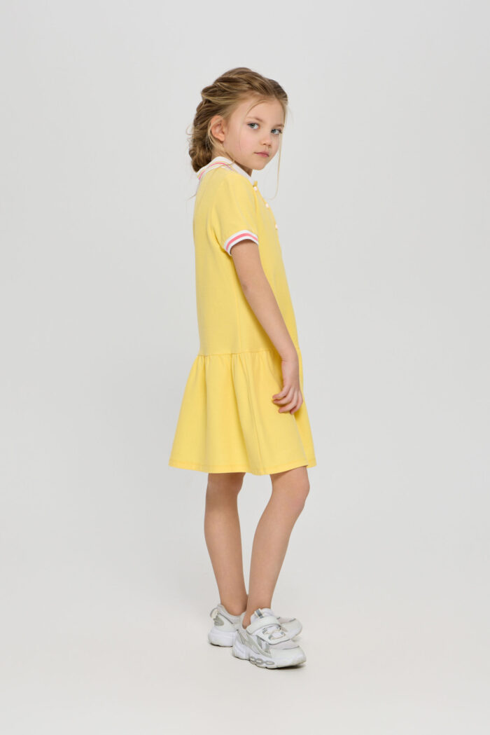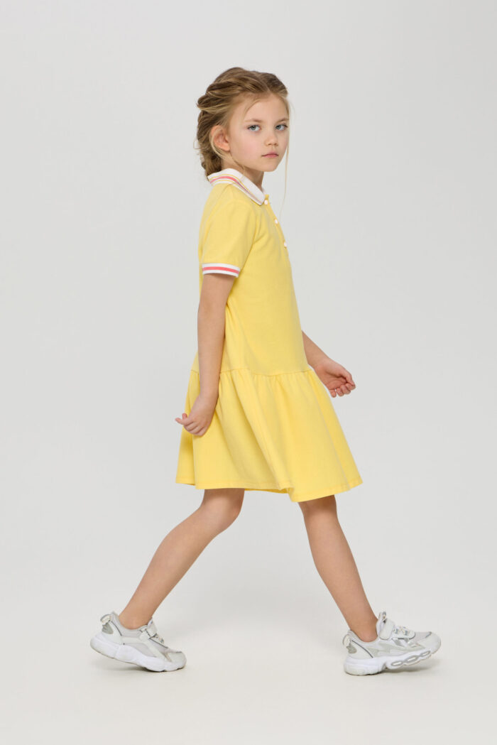 Sport-chic style has made its way into everyday urban life. The polo dress for girls is an elongated model with short sleeves and a collar with buttons. Wide flounce delicately frames the hem, adding dynamics to the silhouette when moving. This model is ideal for active holidays, walks in the park or attending children’s events. The dress can be perfectly combined with sneakers, sandals or ballet flats. The lightweight and breathable fabric ensures comfort in hot weather. A practical and elegant choice for the little fashionista.