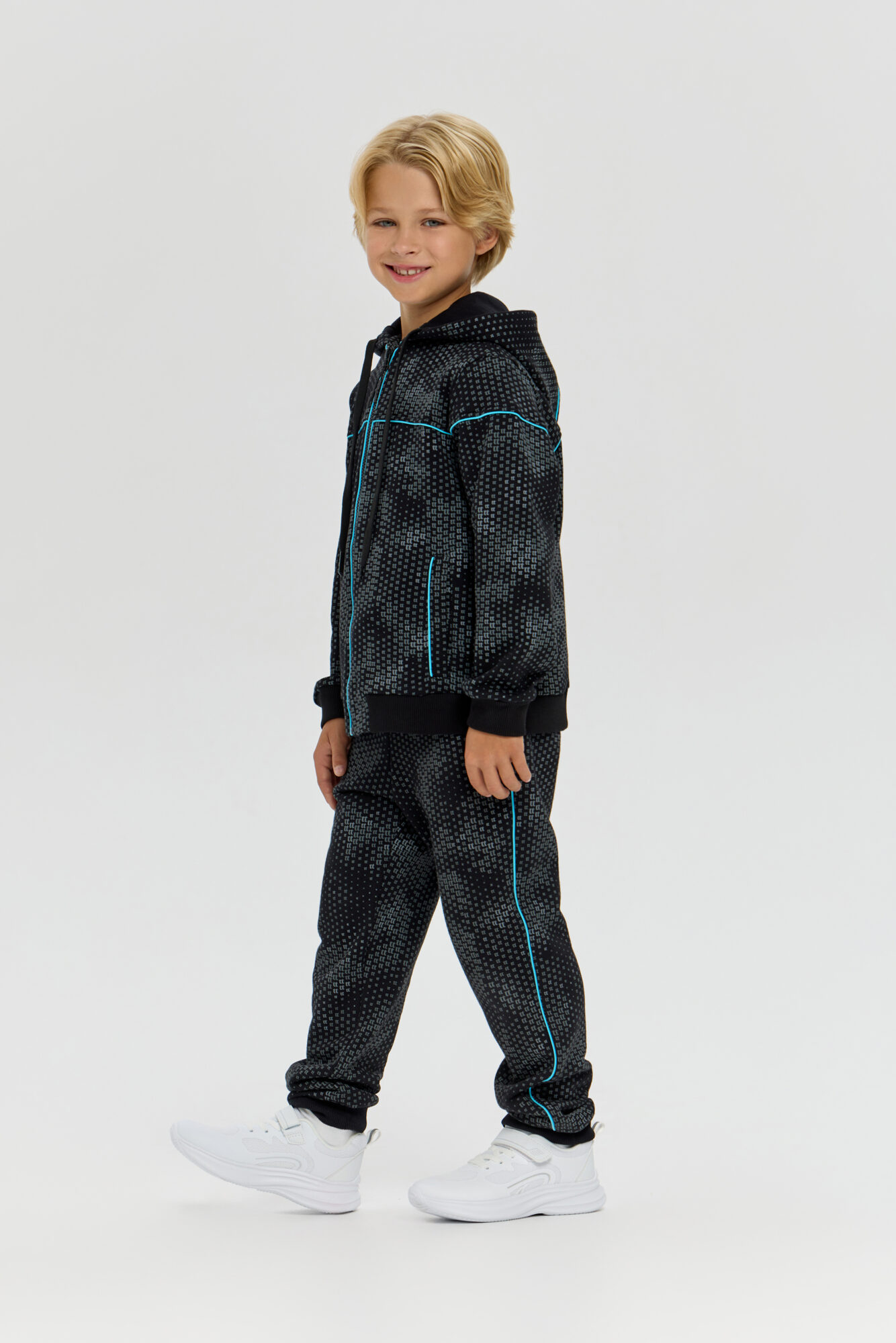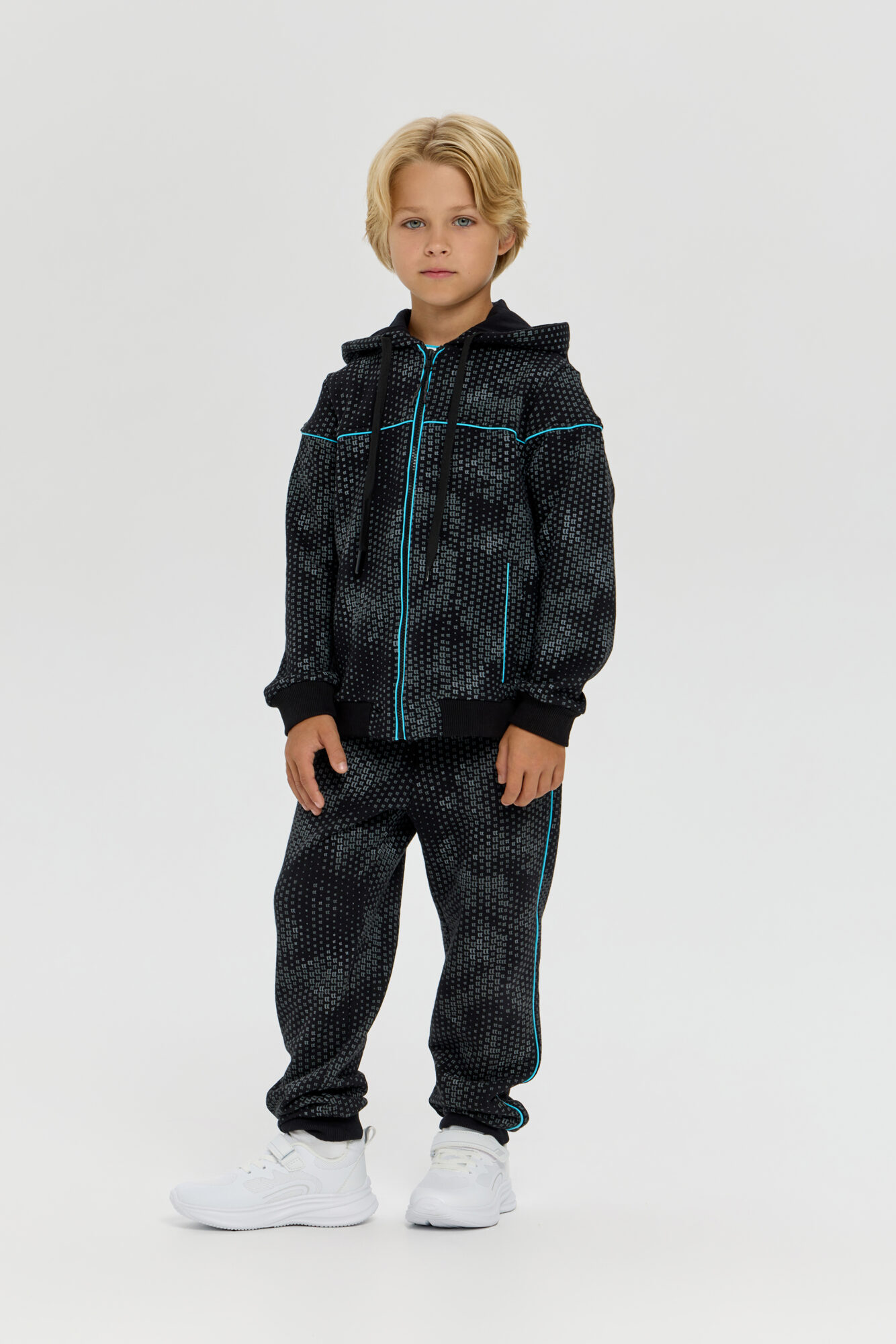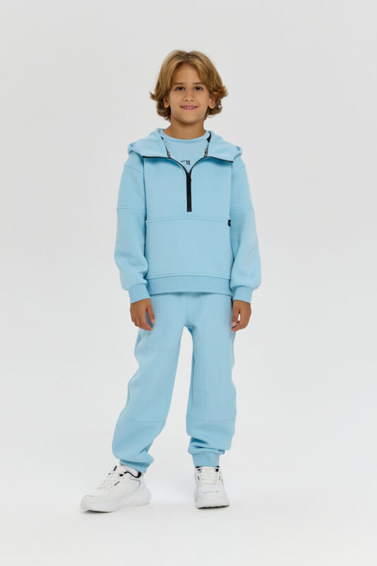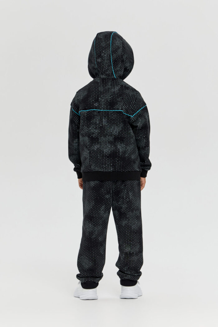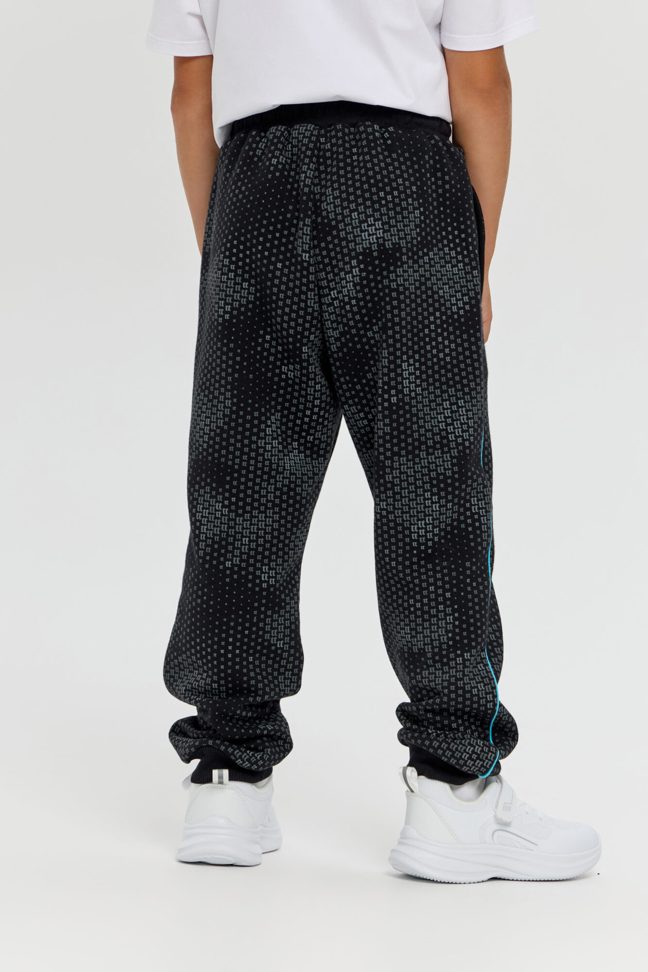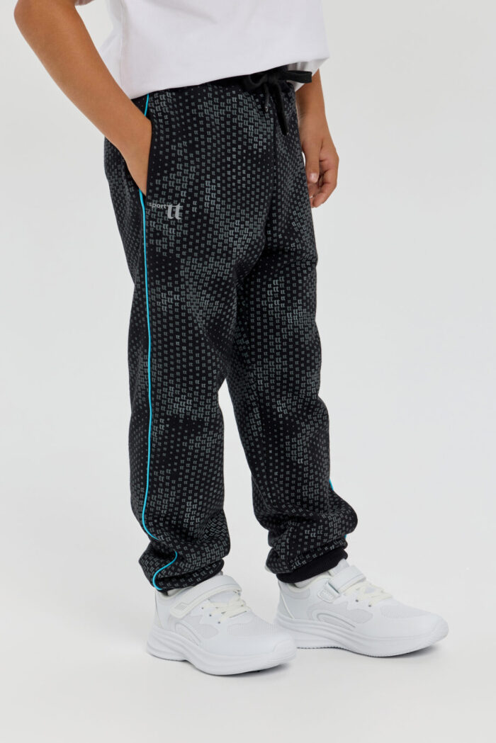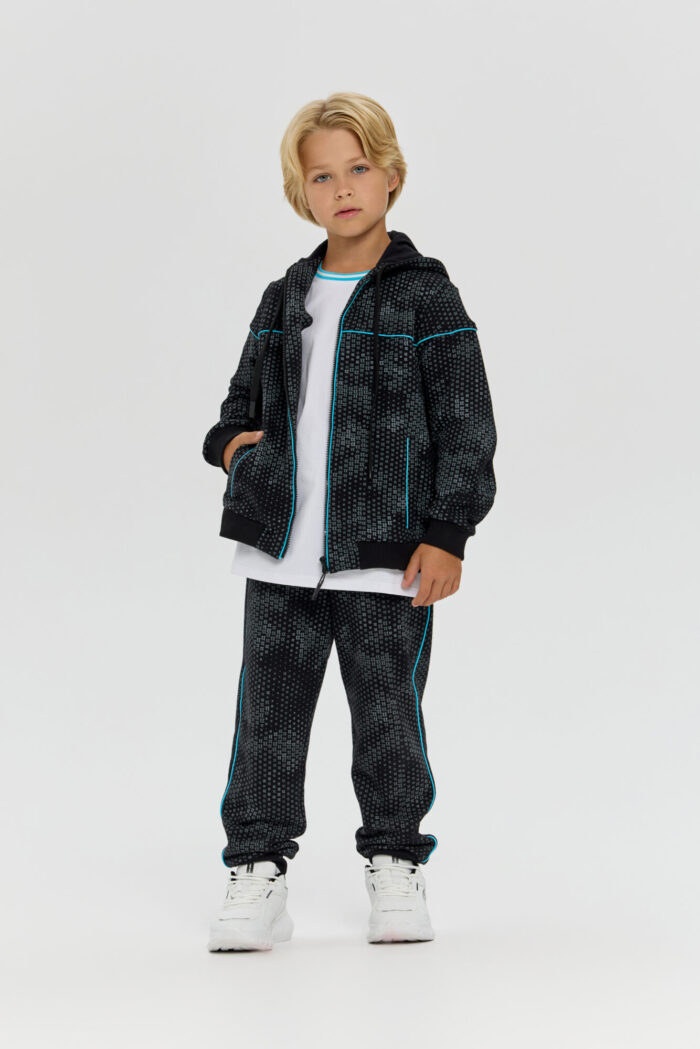Knitted pants aloons are an essential item in a boy’s sports wardrobe. This loose-fitting model features an original print and accent inserts on the sides. The design has been carefully thought out: an elasticated waistband with adjustment ensures a comfortable fit. Two side pockets are designed for storing essential small items. Elasticated cuffs at the bottom of the pants keep them securely in place during running and exercise.